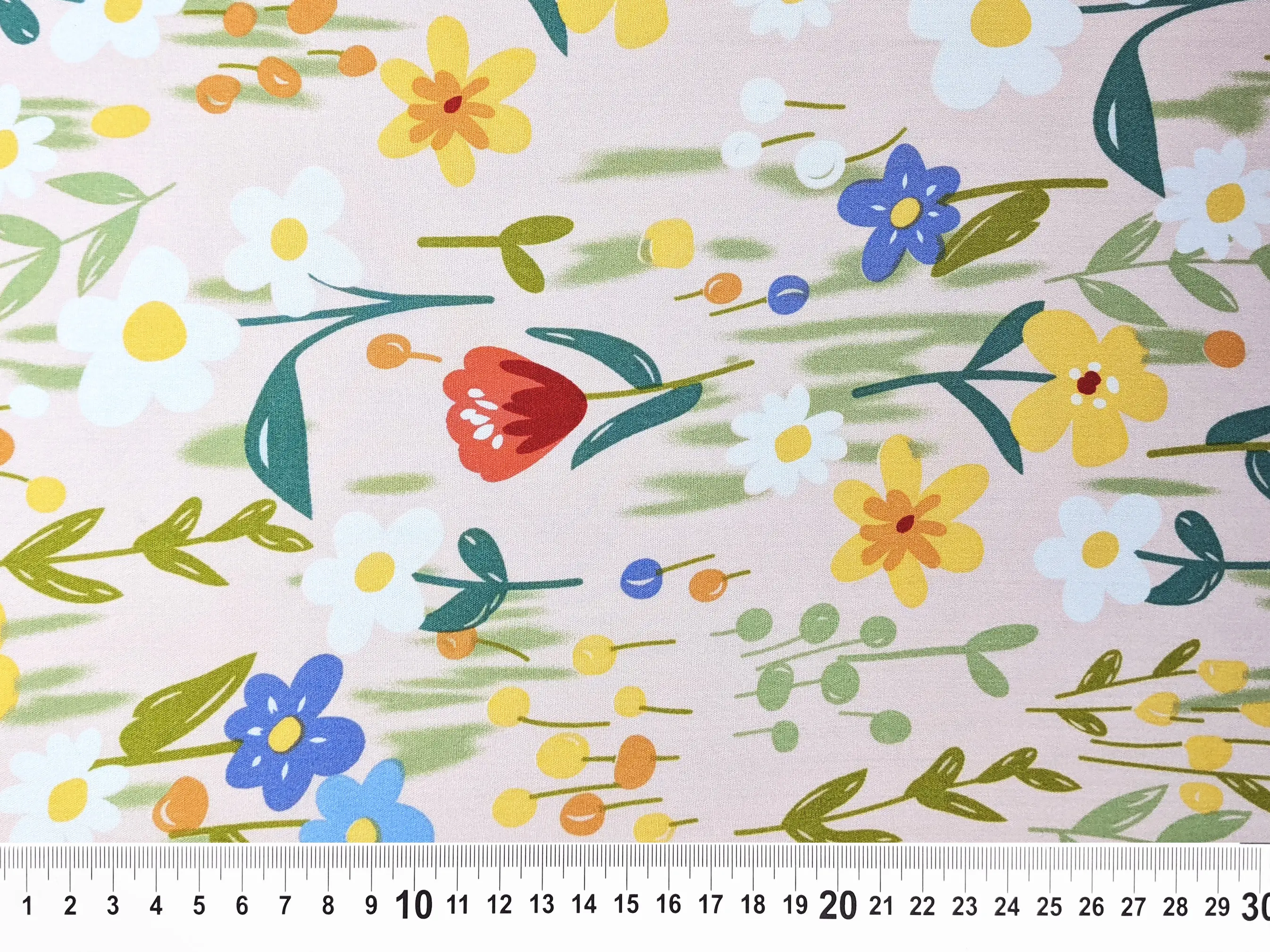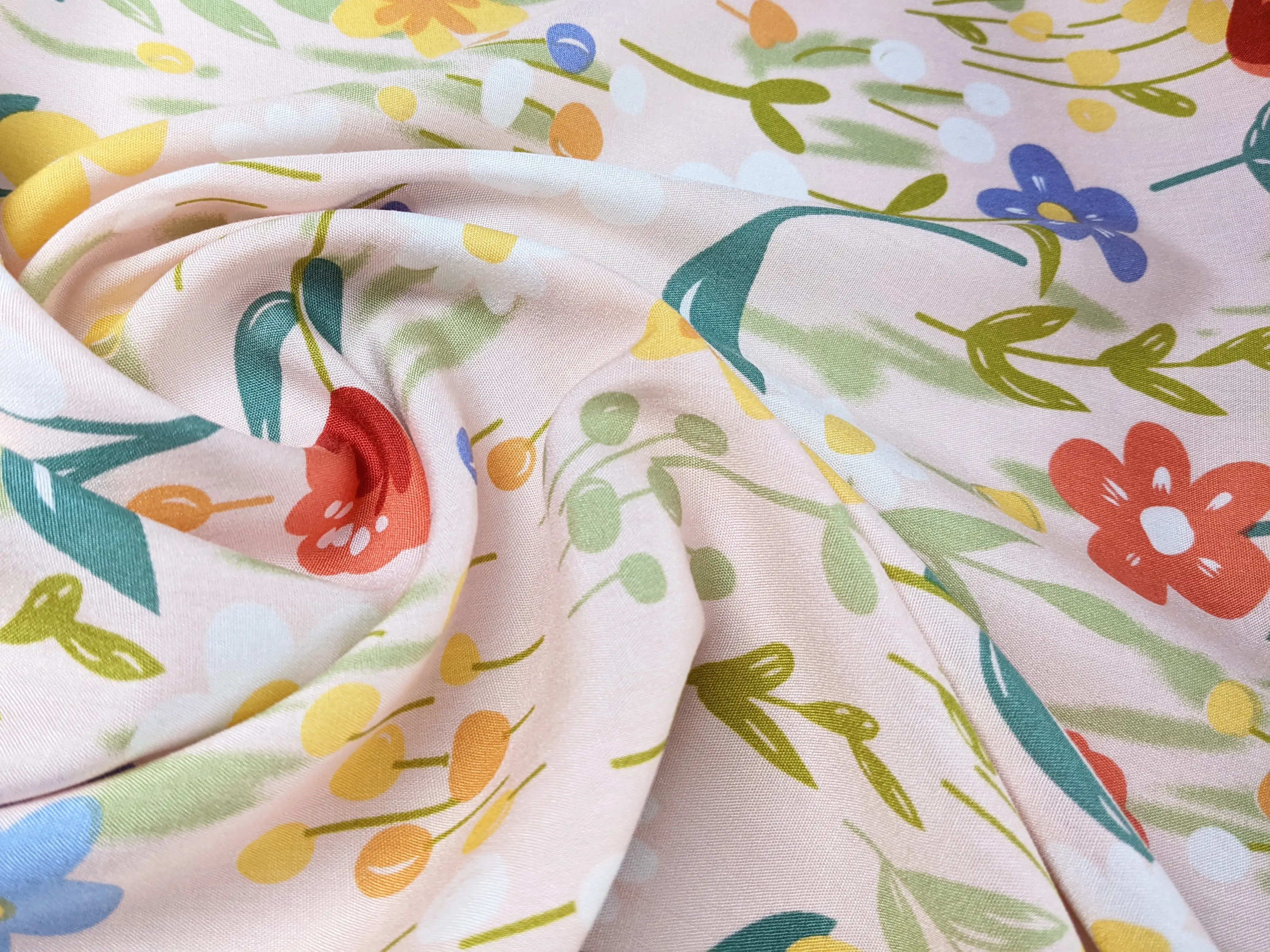 Штапель цветочная поляна, нежная пудра (отрез 1,9 м)