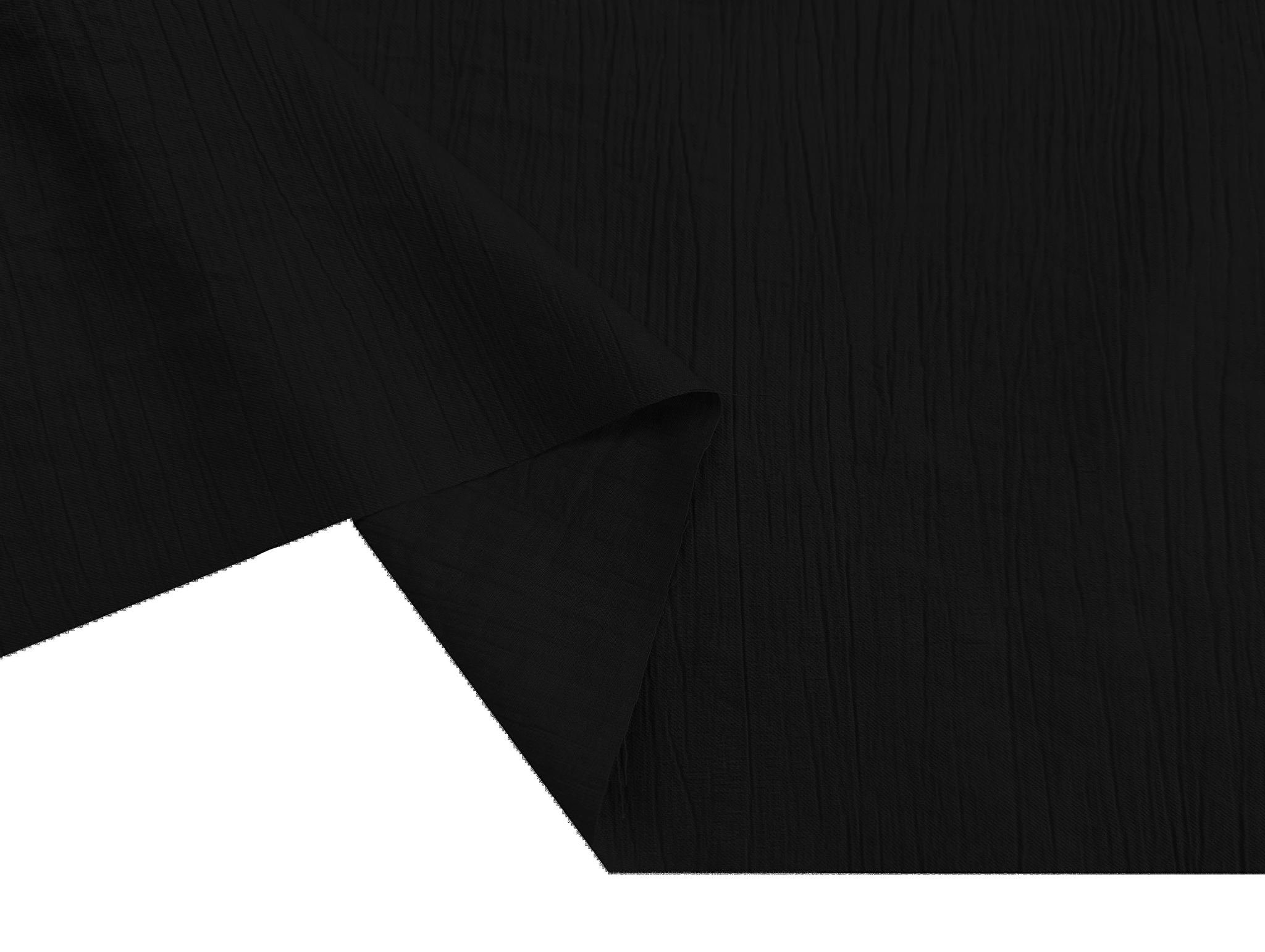 Штапель твил с нейлоном - легкий, приятный на ощупь материал с твиловым переплетением нитей и слабо выраженной диагональю на лицевой стороне. Полотно имеет особую поверхность с жатым эффеком, сформированные узкие, хаотичные складки расположены в продольном направлнении. Штапель имеет силуэтный просвет, при драпировке ложится в мягкие складки, за счет содержания натуральных волокон - сминается, присутствует легкая эластичность вдоль полотна. Ткань гигроскопична и гипоаллергенна.