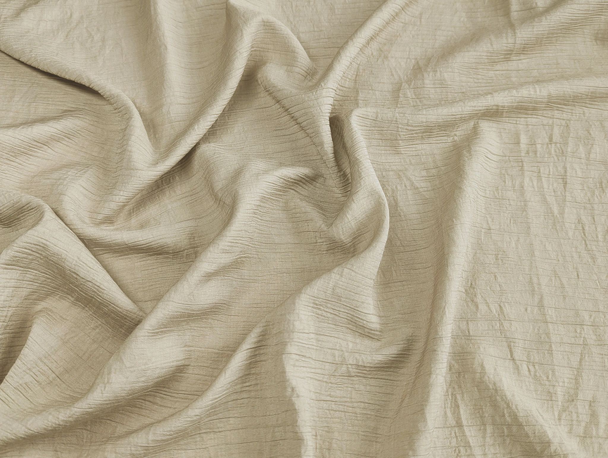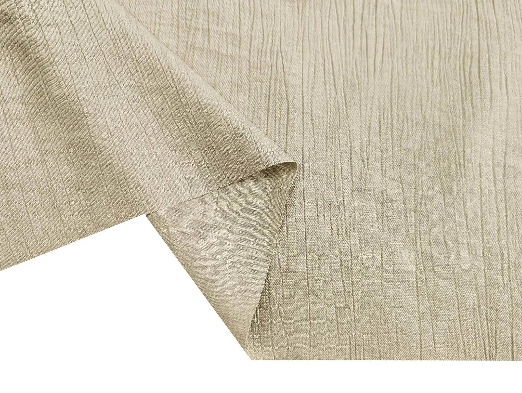 Штапель твил с нейлоном - легкий, приятный на ощупь материал с твиловым переплетением нитей и слабо выраженной диагональю на лицевой стороне. Полотно имеет особую поверхность с жатым эффеком, сформированные узкие, хаотичные складки расположены в продольном направлнении. Штапель имеет силуэтный просвет, при драпировке ложится в мягкие складки, за счет содержания натуральных волокон - сминается, присутствует легкая эластичность вдоль полотна. Ткань гигроскопична и гипоаллергенна.