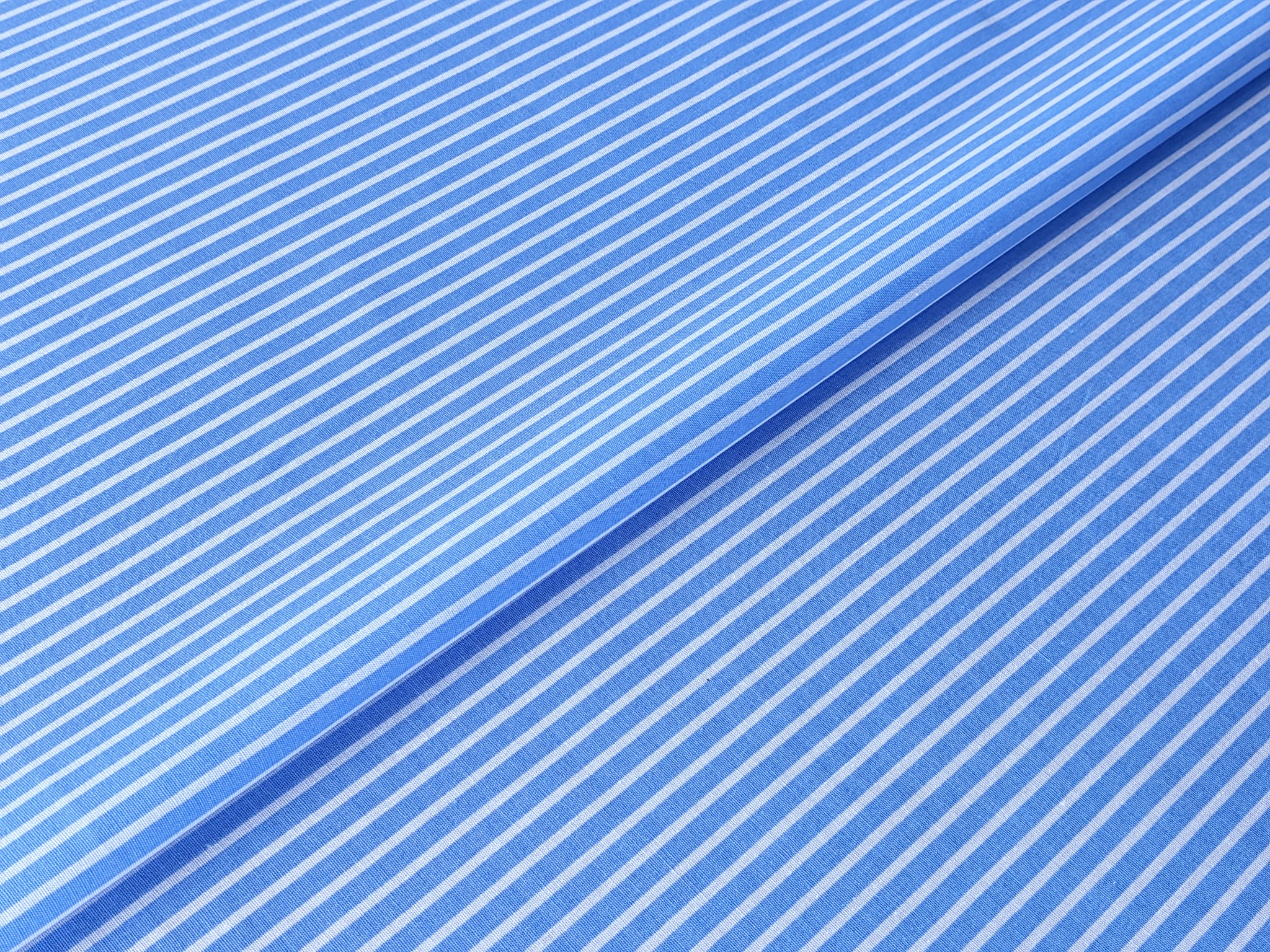 Стрейч поплин принт полоска 2 мм, белая на голубом (отрез 2,1 м)