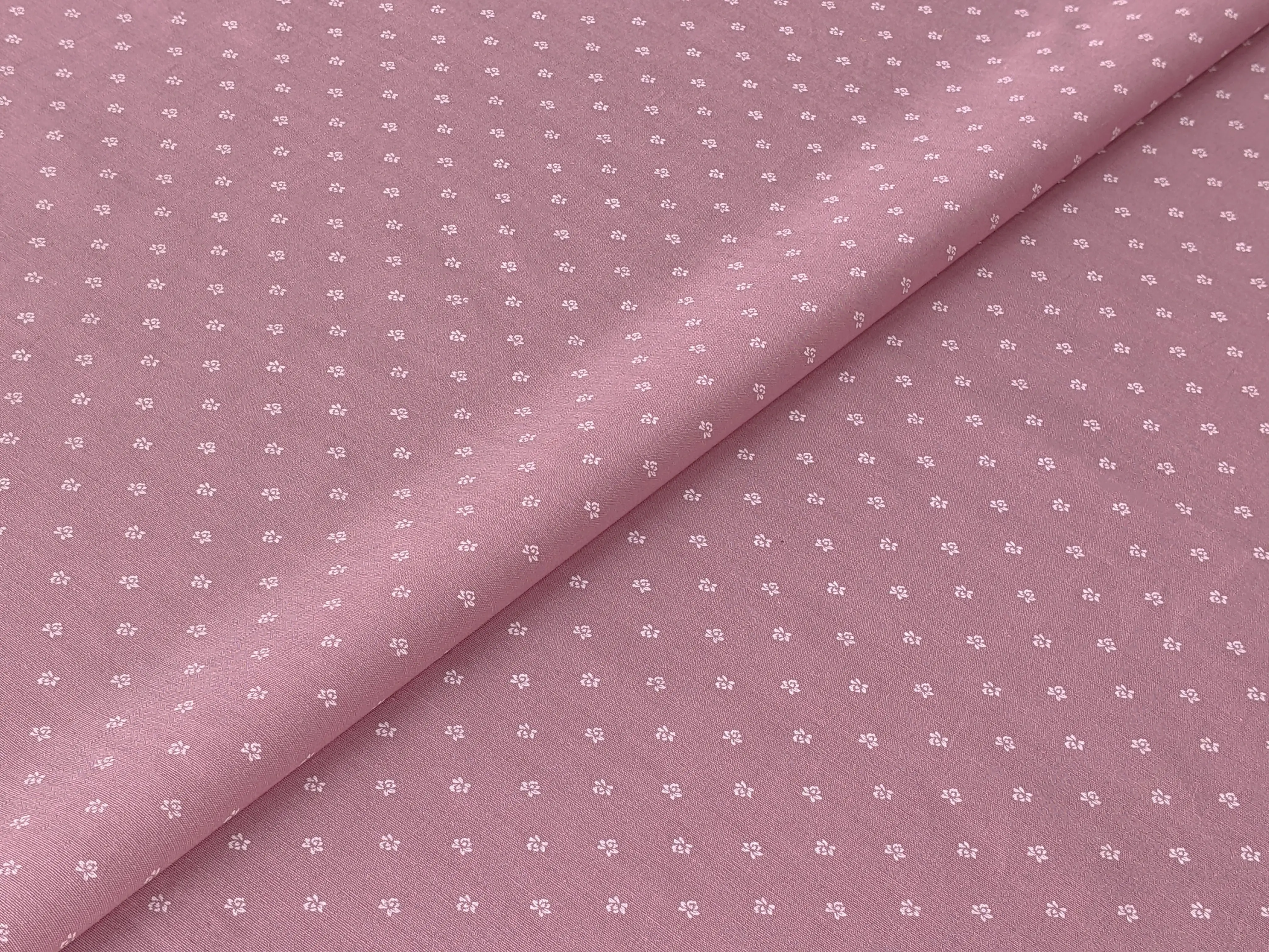 Стрейч поплин принт цветочек 3 мм, розовый (отрез 1,8 м)