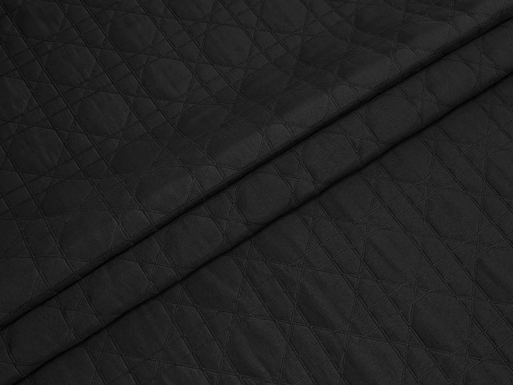 Строченная плащевка Луи - тонкая, легкая, прочная, текстурная ткань с матовой поверхностью. Состоит из двух тонких тканевых основ, скрепленных между собой стежкой, которая образует рельефный рисунок на поверхности в виде ромбов. Утеплителя между основ нет, ткань без водооткалкивающей пропитки. Материал неэластичный, несминаемый, красиво ложится в складки.