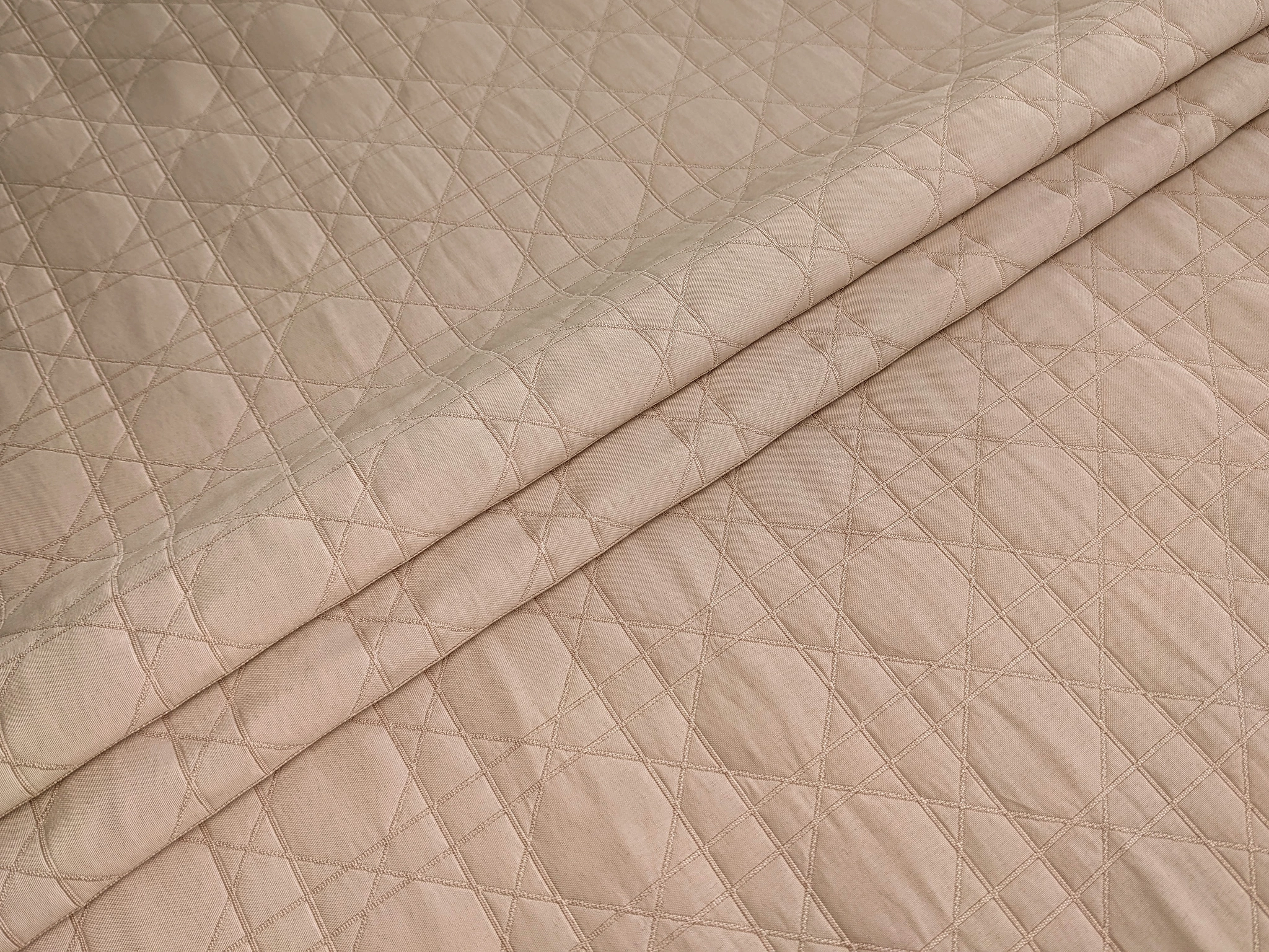 Строченная плащевка Луи - тонкая, легкая, прочная, текстурная ткань с матовой поверхностью. Состоит из двух тонких тканевых основ, скрепленных между собой стежкой, которая образует рельефный рисунок на поверхности в виде ромбов. Утеплителя между основ нет, ткань без водооткалкивающей пропитки. Материал неэластичный, несминаемый, красиво ложится в складки.