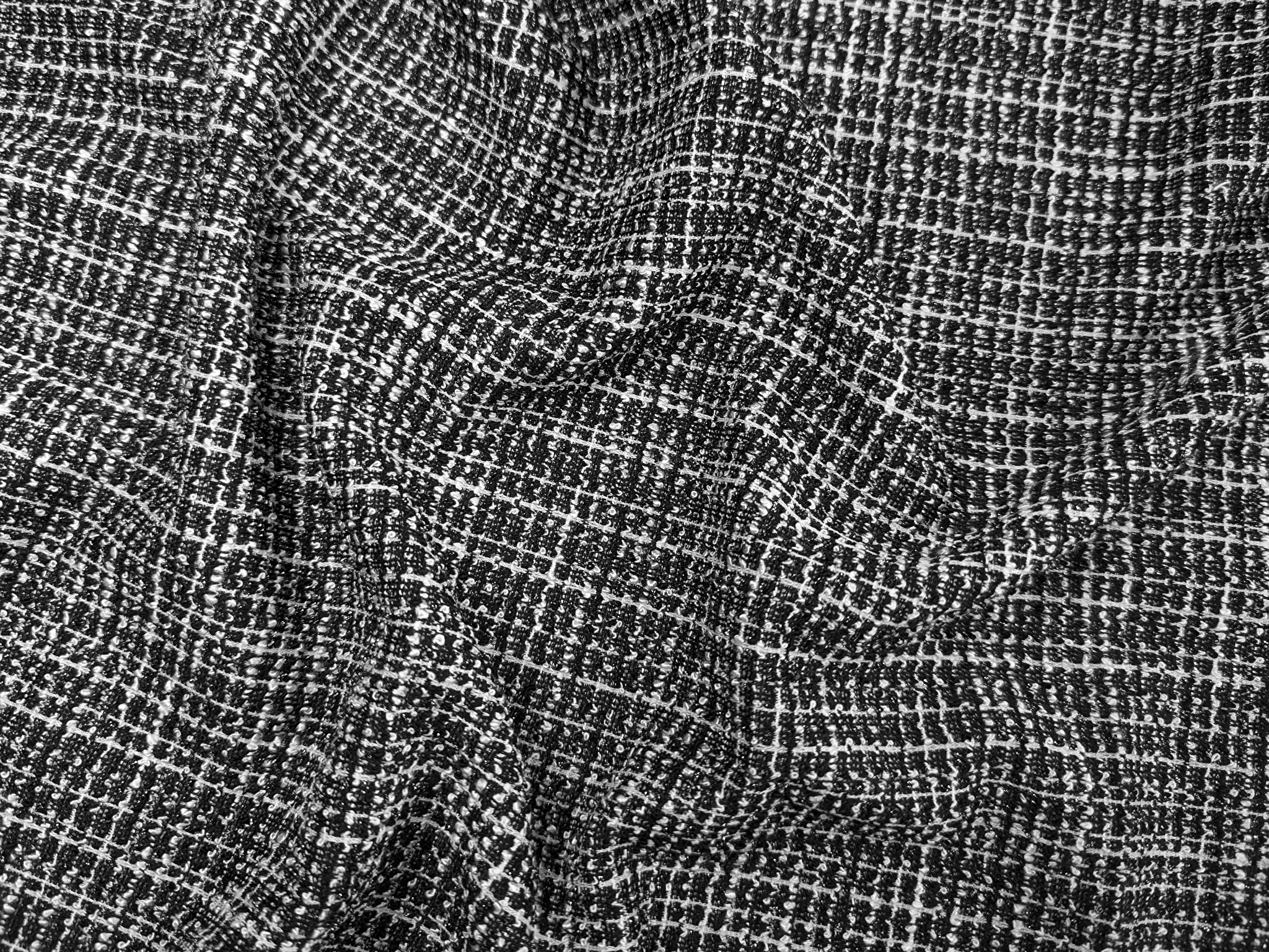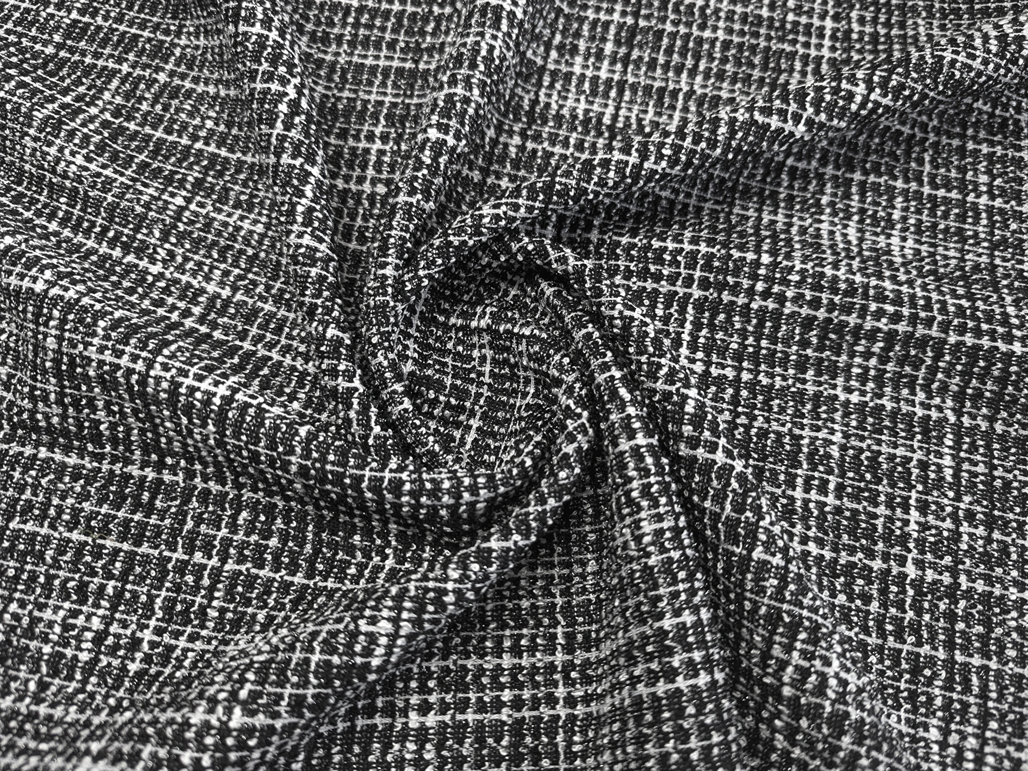 Трикотаж букле с люрексом мелкая клетка, черный с белым
