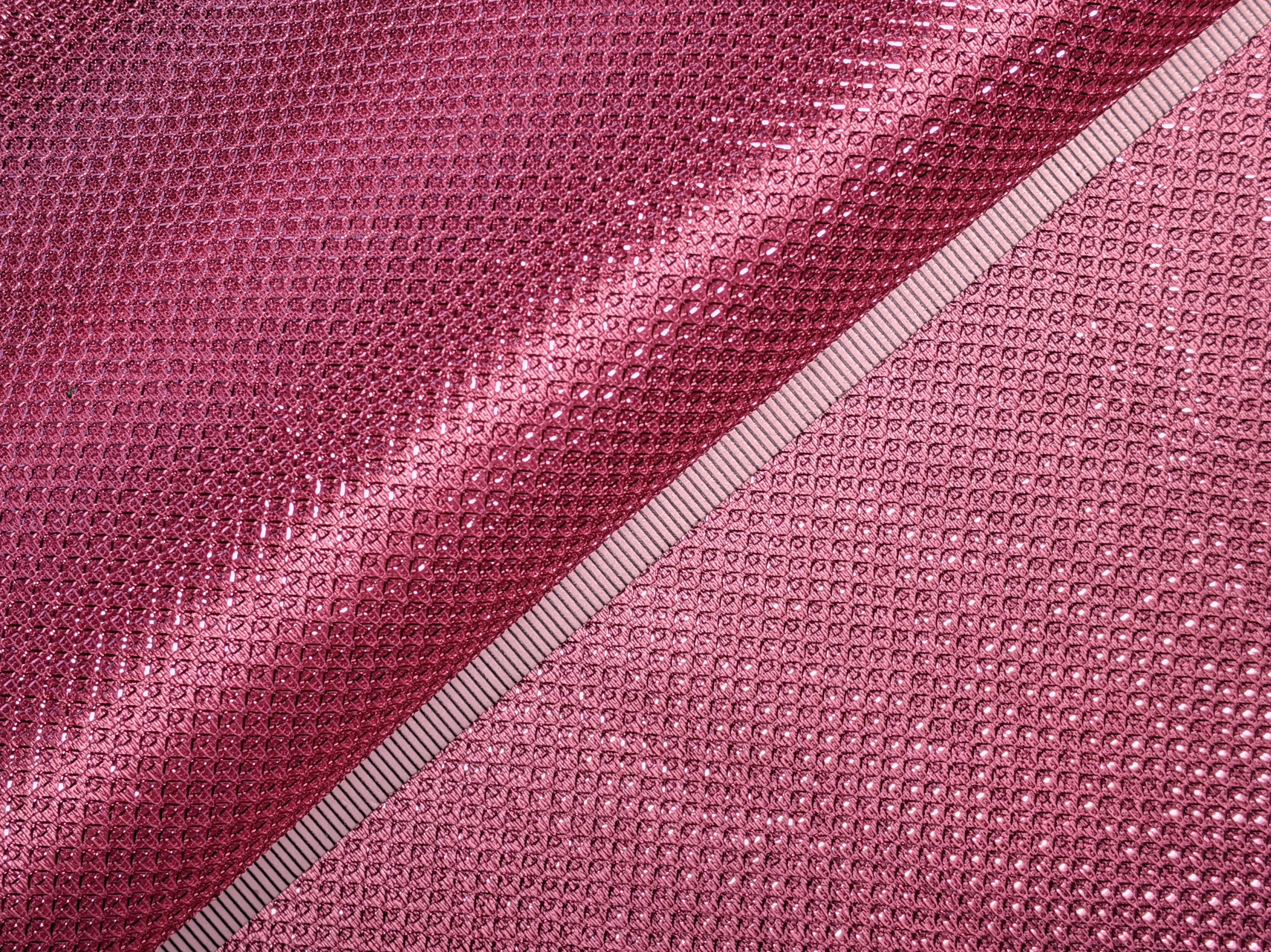 Ткань диско имеет структуру чешуи с красивым блеском, играющим под разным углом. Изнанка ткани - приятный на ощупь, гладкий трикотаж с атласным эффектом.