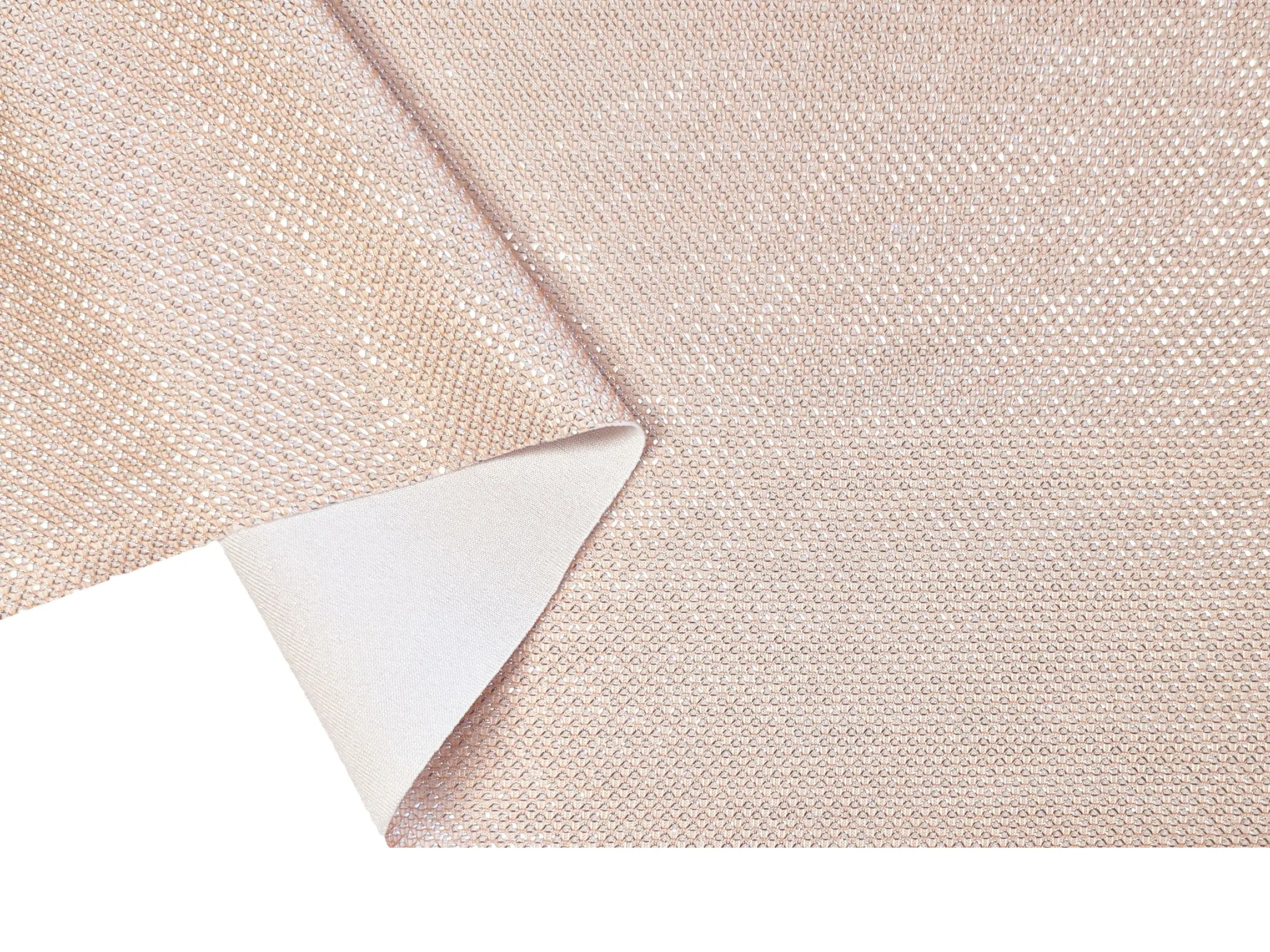 Лицевая сторона полотна имеет форму чешуек, сотканных из люрексовых нитей. Ткань имеет благородный блеск, который в изделии красиво переливается и играет на свету.