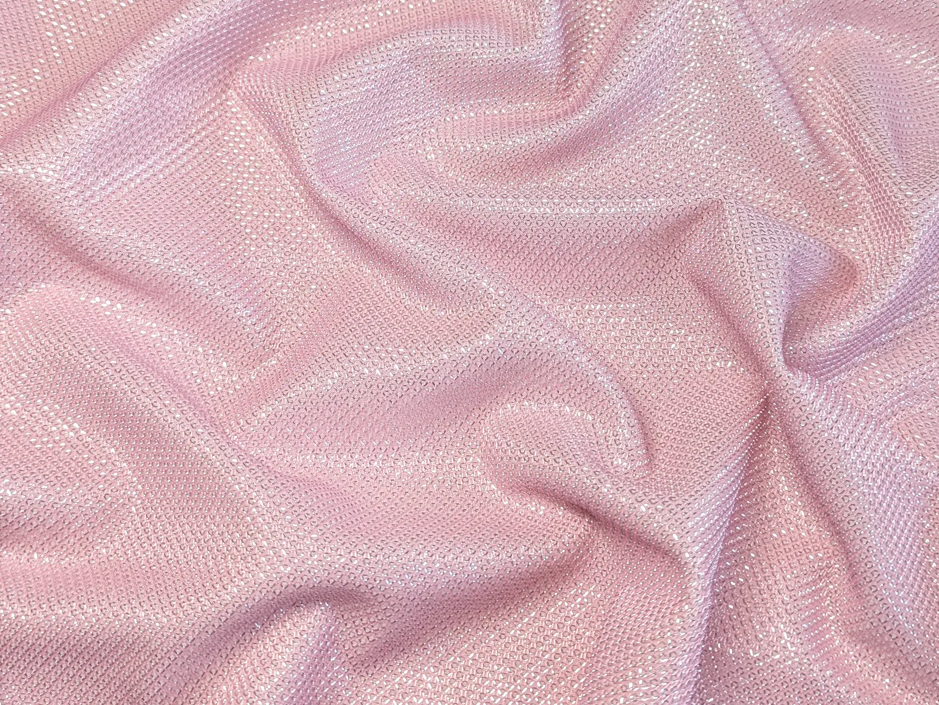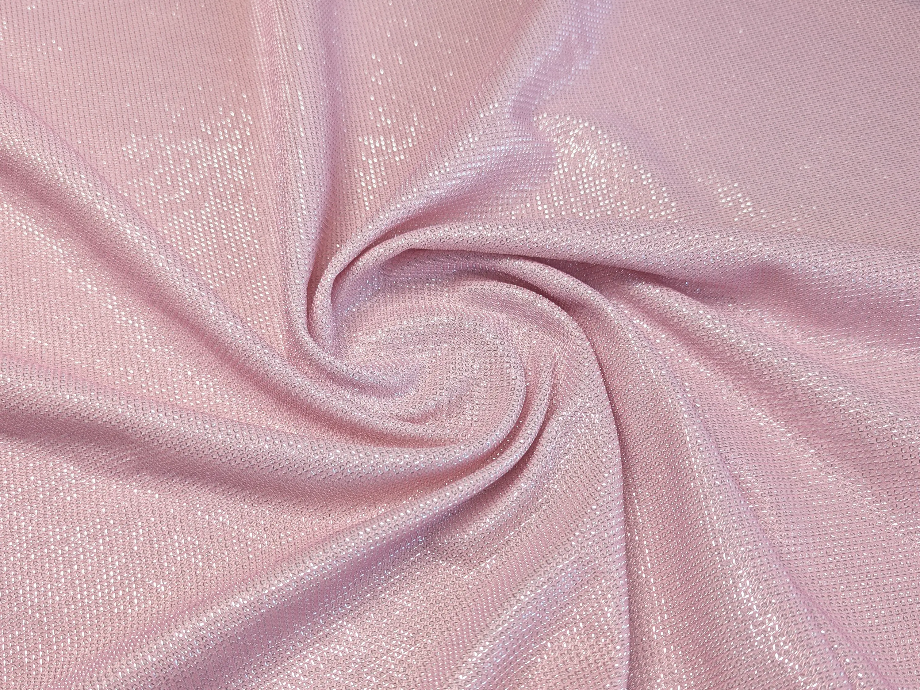 Трикотаж диско плотный мерцание, розовая пудра с серебром