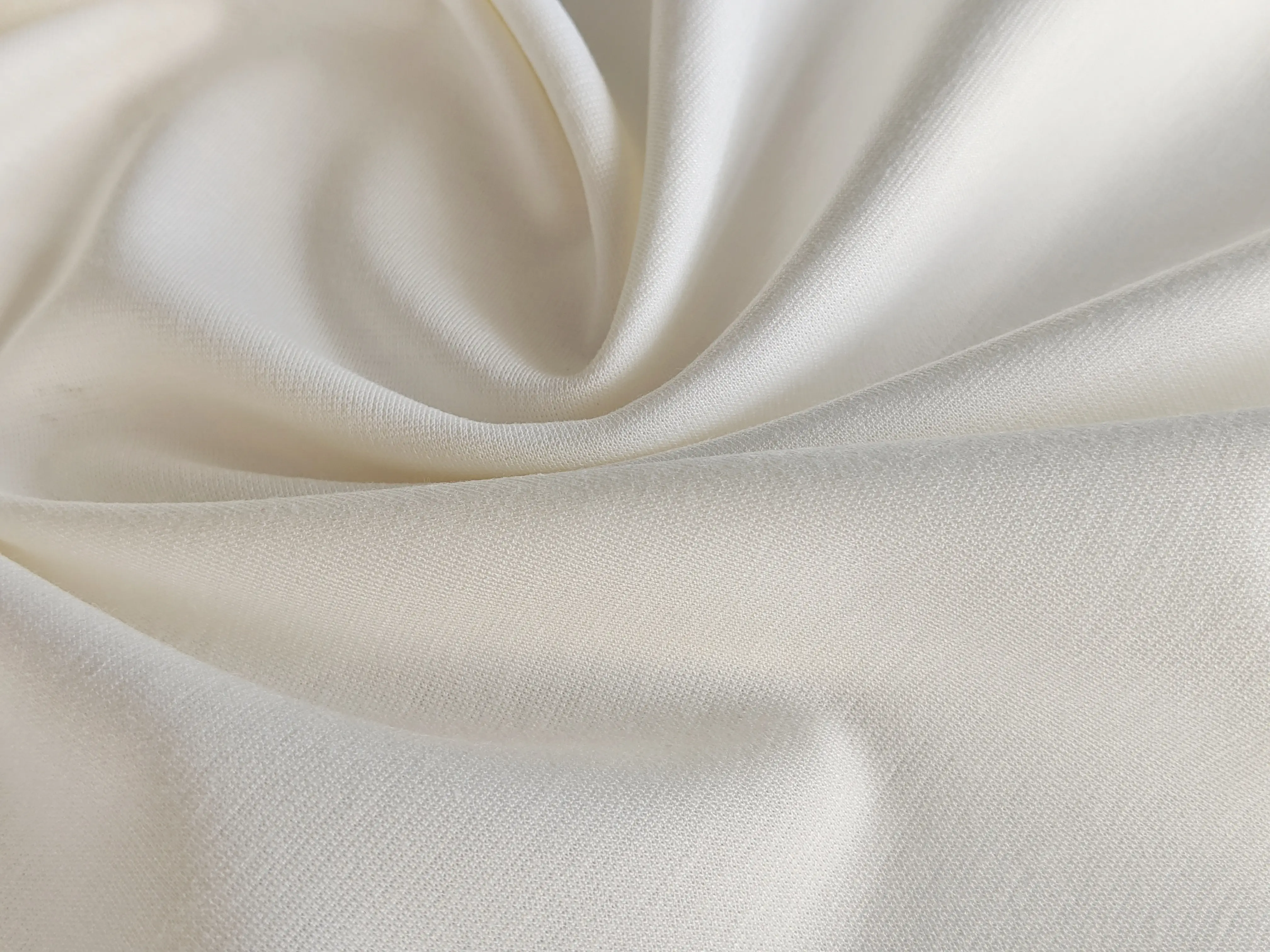 Эластичный, плотный и гладкий трикотаж. На ощупь мягкий, не просвечивается, держит форму. В составе имеет натуральные нити вискозы, благодаря чему ткань дарит приятные тактильные ощущения и позволяет коже дышать. Спандекс придает эластичности, делает изделия удобными и практичными в носке. Полотно используют для пошива демисезонной одежды: костюмы, жакеты, кардиганы,платья и юбки.