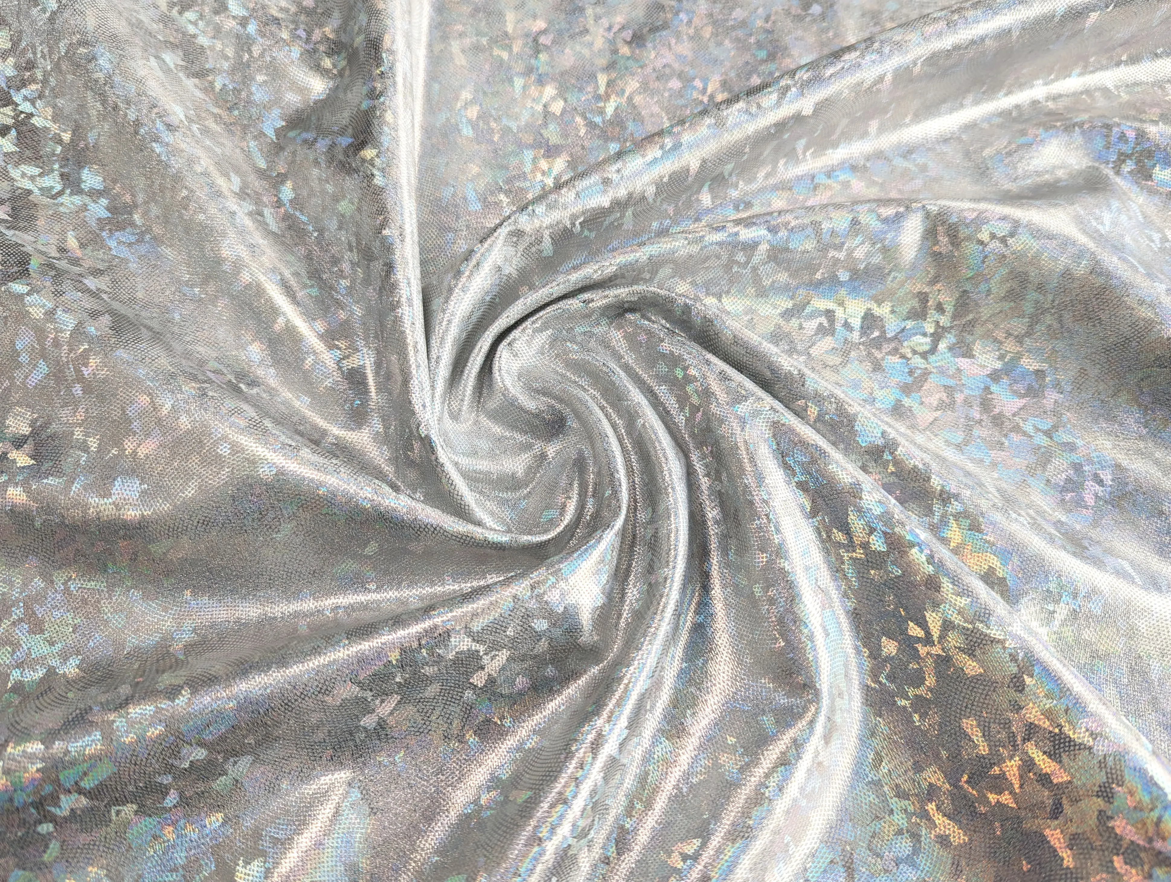 Трикотаж масло диско радуга крупная голограмма, серебро