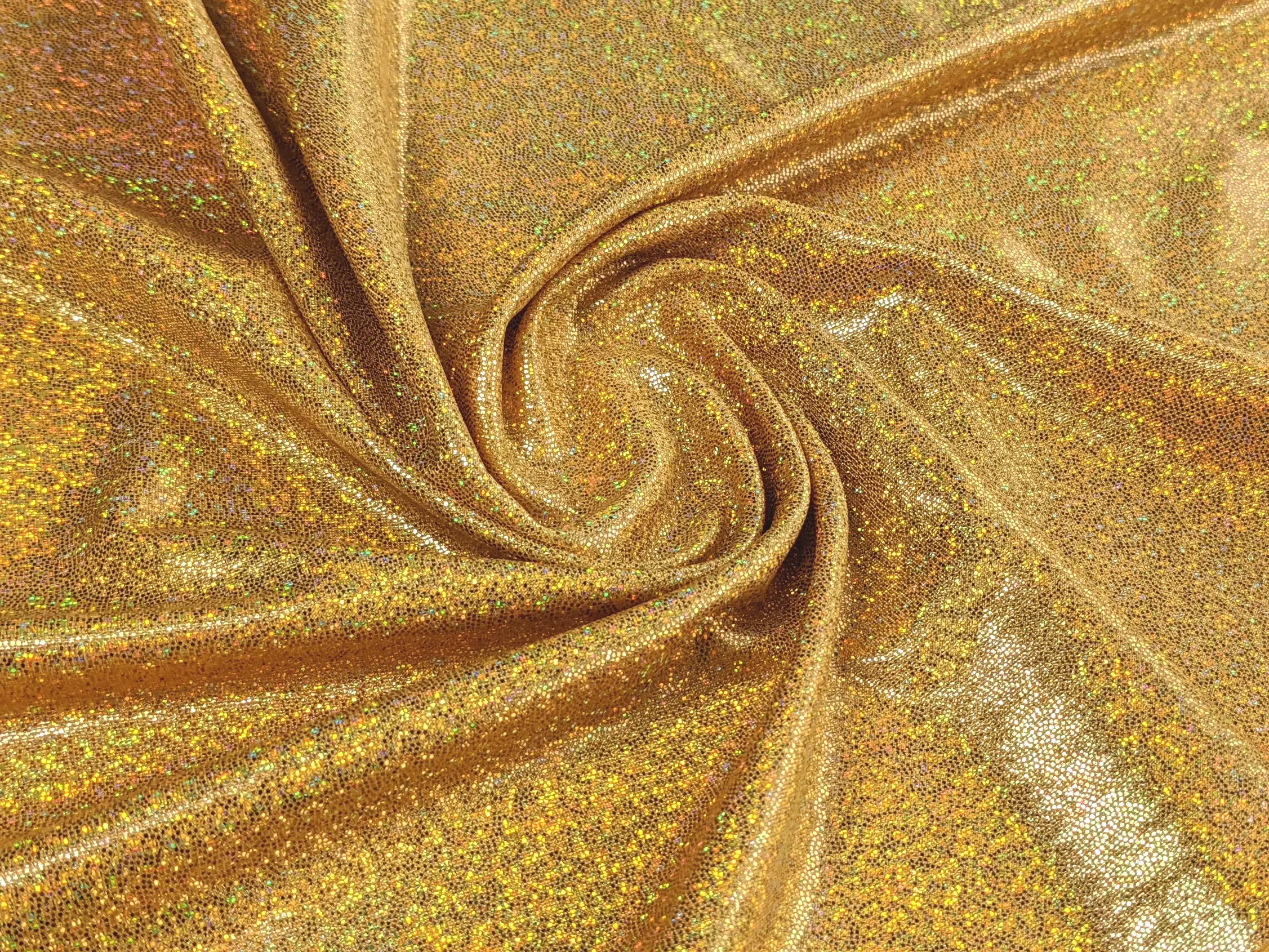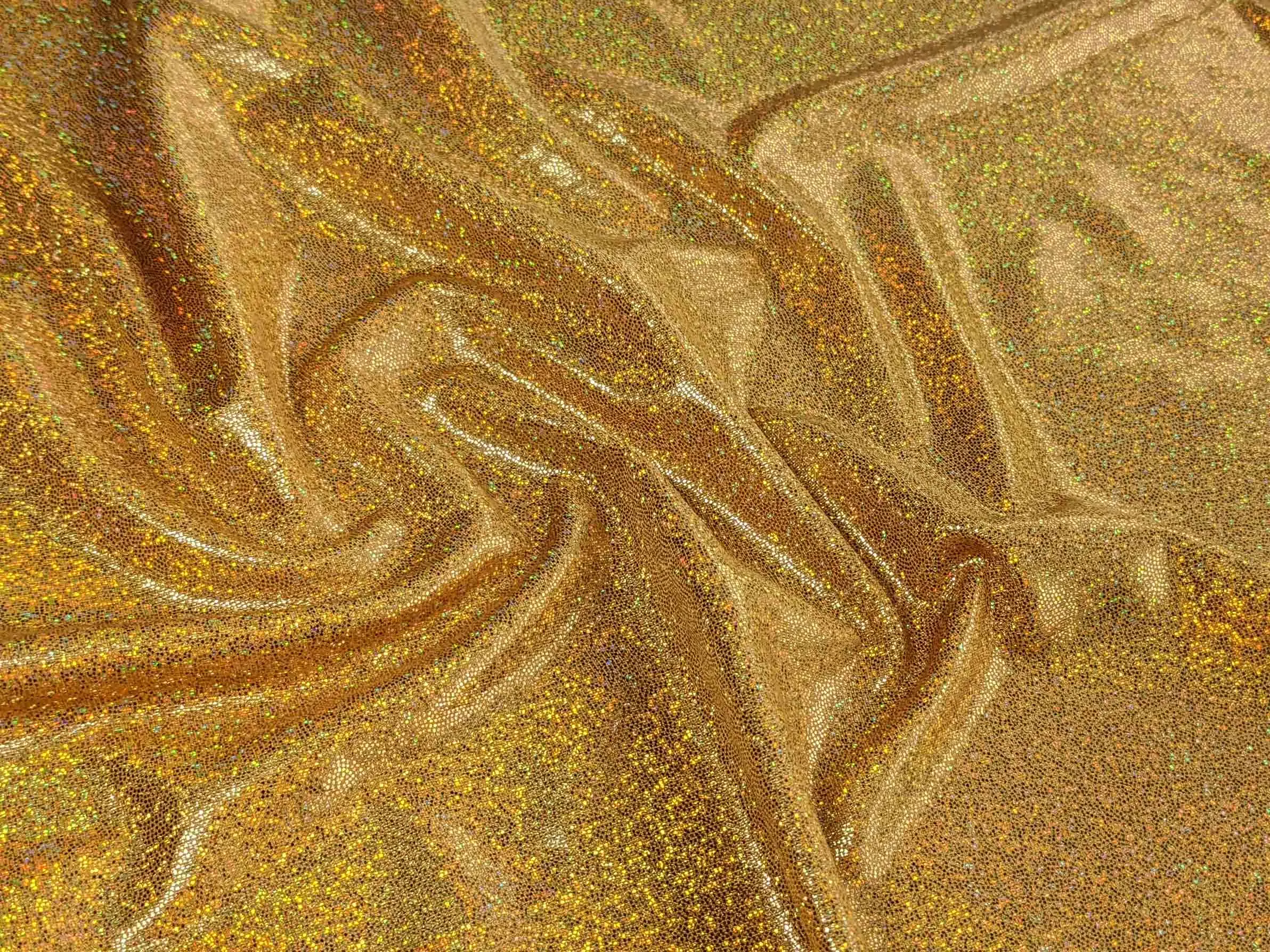 Трикотаж масло голограмма точка радужная, золото (отрез 1,2 м) (м47, 2025MG, д2 цв12)