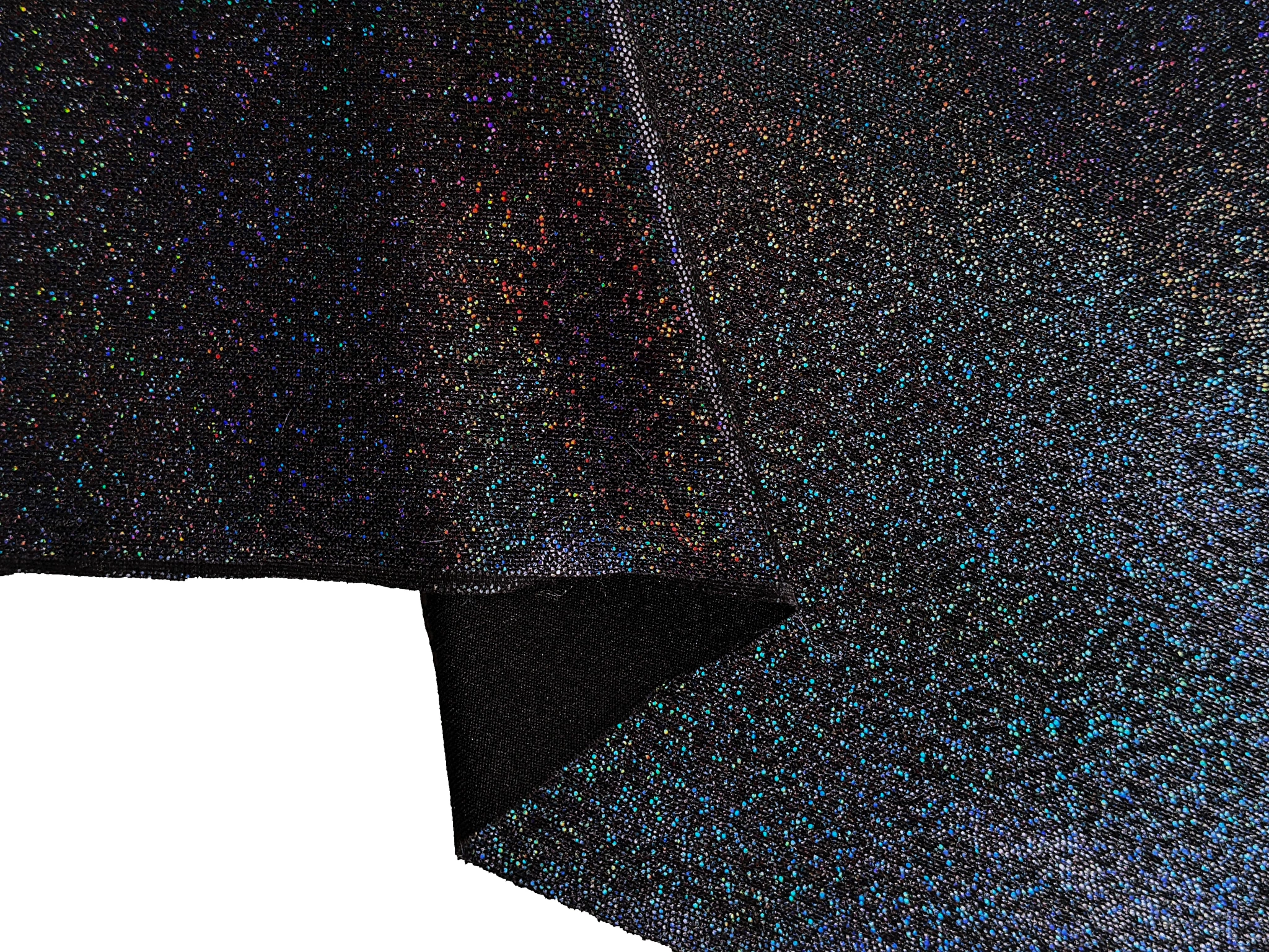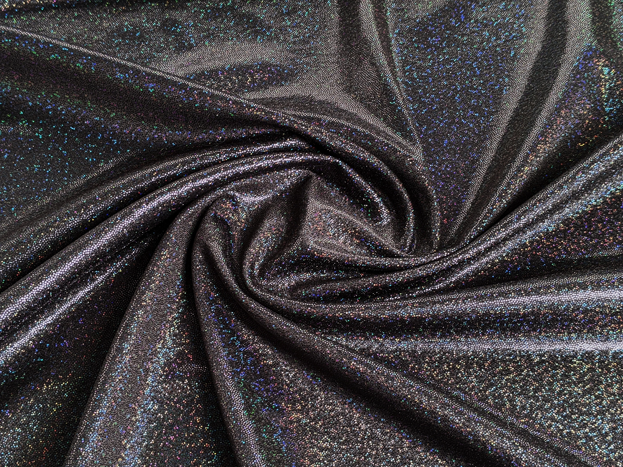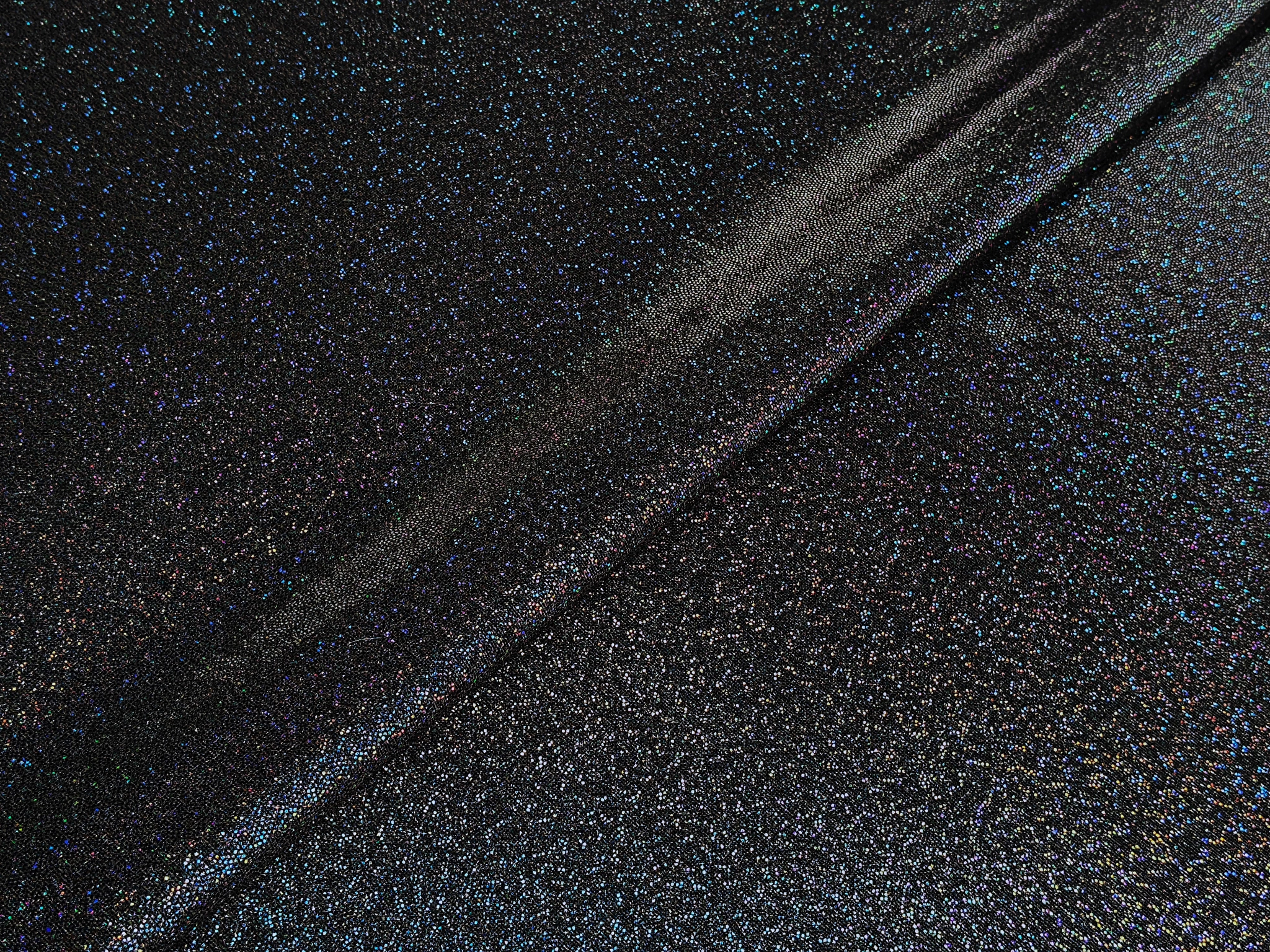 Трикотаж масло нарядное мелкая голограмма радужная, черный блеск (м40, 1905041A, д3 цв5)