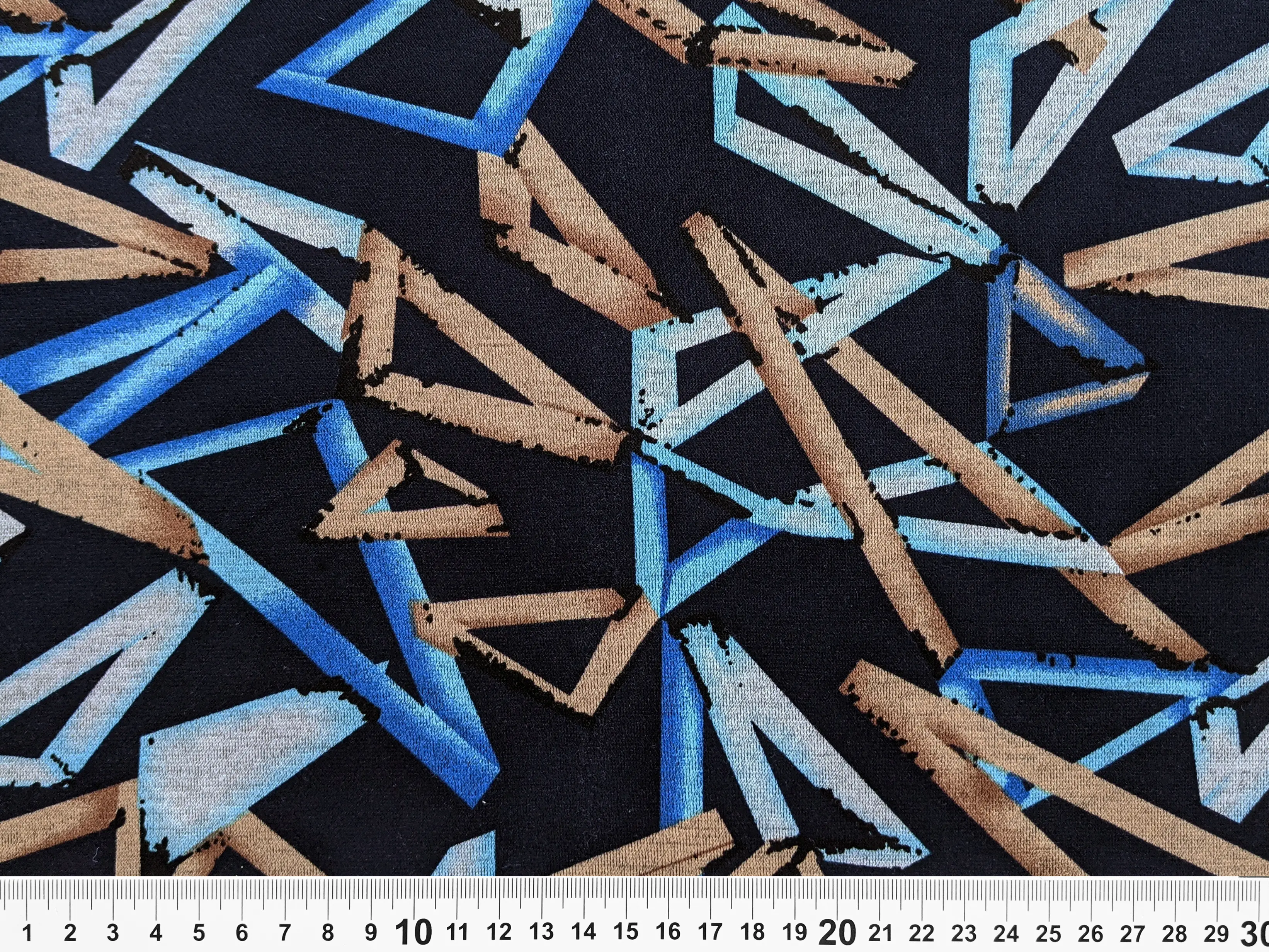 Трикотаж Модал геометрический, голубой на темно-синем (отрез 2,7 м)