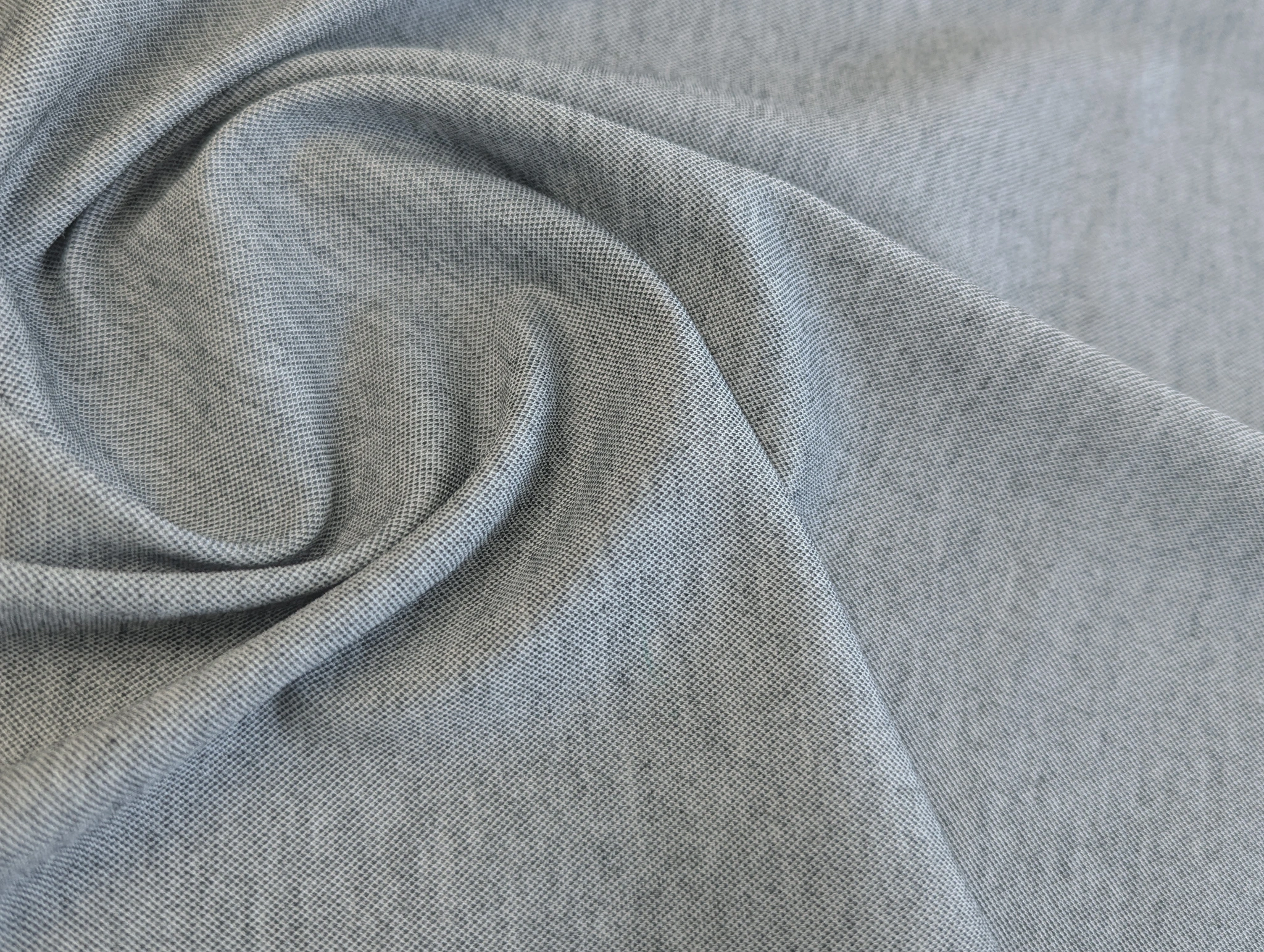 Трикотаж Поло - материал с комбинированным составом, содержанием волокон вискозы, нейлона и эластана. Лицевая сторона имеет узор в виде микросот, что делает ее структурно схожей с трикотажем Поло в его первоначальном виде. Ткань упругая, очень мягкая, приятная на ощупь, не просвечивает, слегка сминается, хорошо тянется в обе стороны. При драпировке формирует мягкие складки.