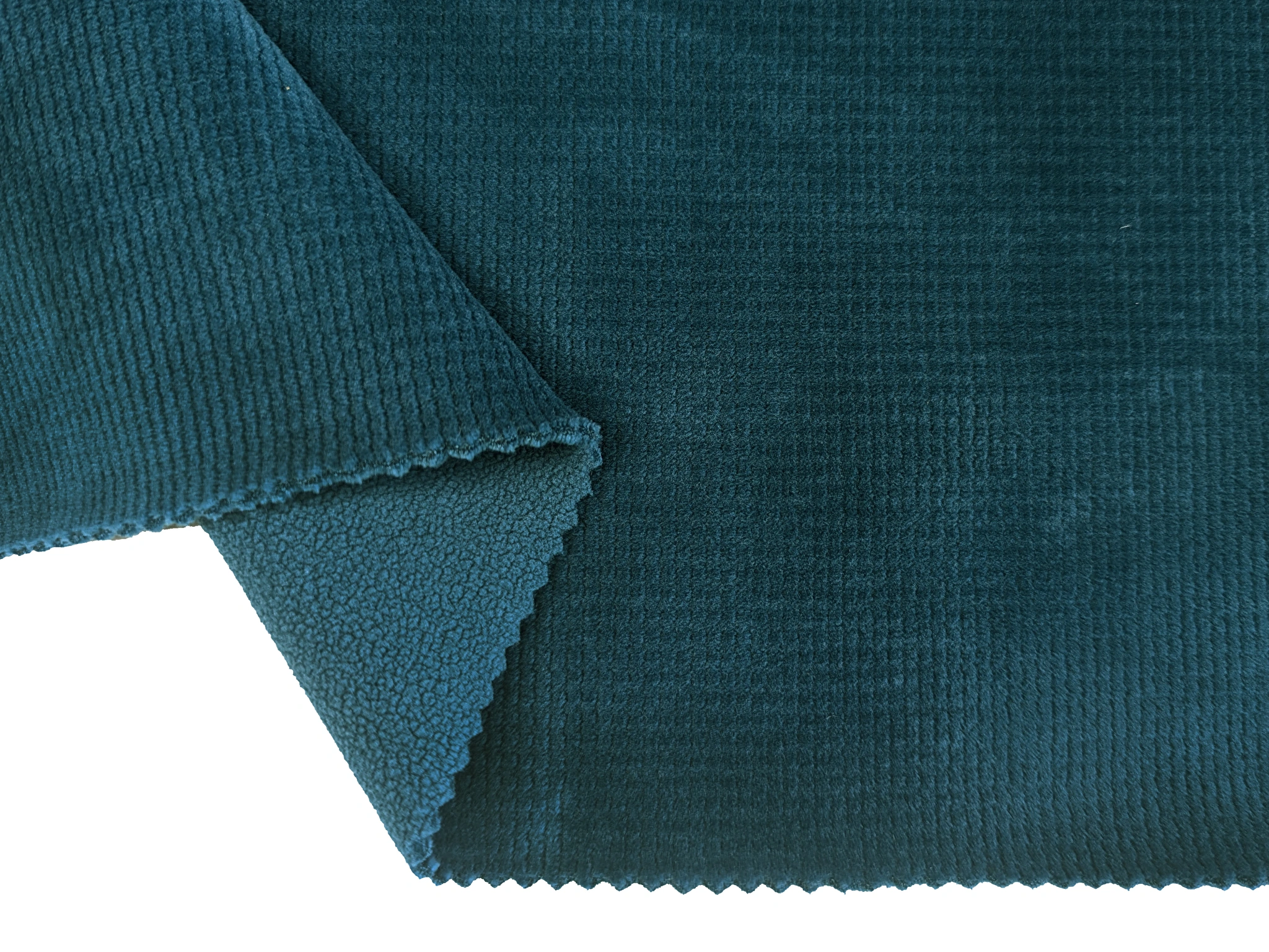 Трикотаж вельвет на флисе - это мягкий, комфортный, двухслойный трикотажный материал. Основа ткани с лицевой стороны имеет рисунок в виде "сот", имитирующий вельвет, изнанка - теплый флис. Ткань пластичная, имеет хорошую растяжимость в обе стороны, упругая, хорошо сохраняет форму, не сминается. Материал плотный, обладает теплосберегающими свойствами.