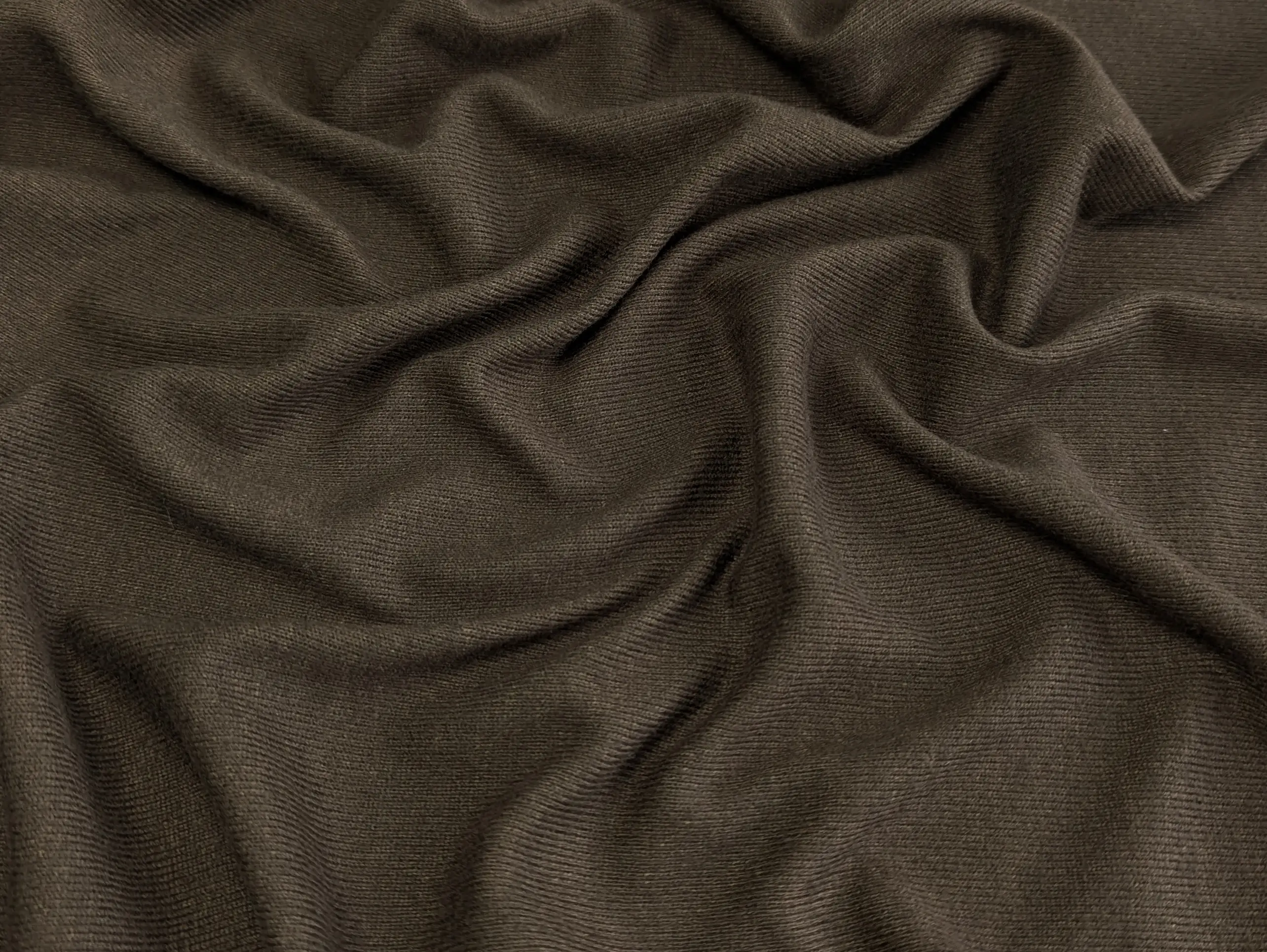 Код: д45, 2505033A, к5Трикотаж вискоза рубчик - мягкое, эластичное полотно с тонкой фактурой, которое тянется в двух направлениях и обеспечивает удобную посадку. Рубчик около 1 мм идёт вдоль кромки, создавая аккуратный рельеф. Структура ткани - вязаный трикотаж по типу трикотажа ангоры, но значительно мельче и тоньше. Лицевая сторона мягкая и слегка ворсистая. Благодаря вискозе ткань приятная на теле, хорошо впитывает влагу, немного мнётся и даёт лёгкий охлаждающий эффект. Полотно красиво драпируется и не просвечивает, оставаясь универсальным для повседневной и облегающей одежды.