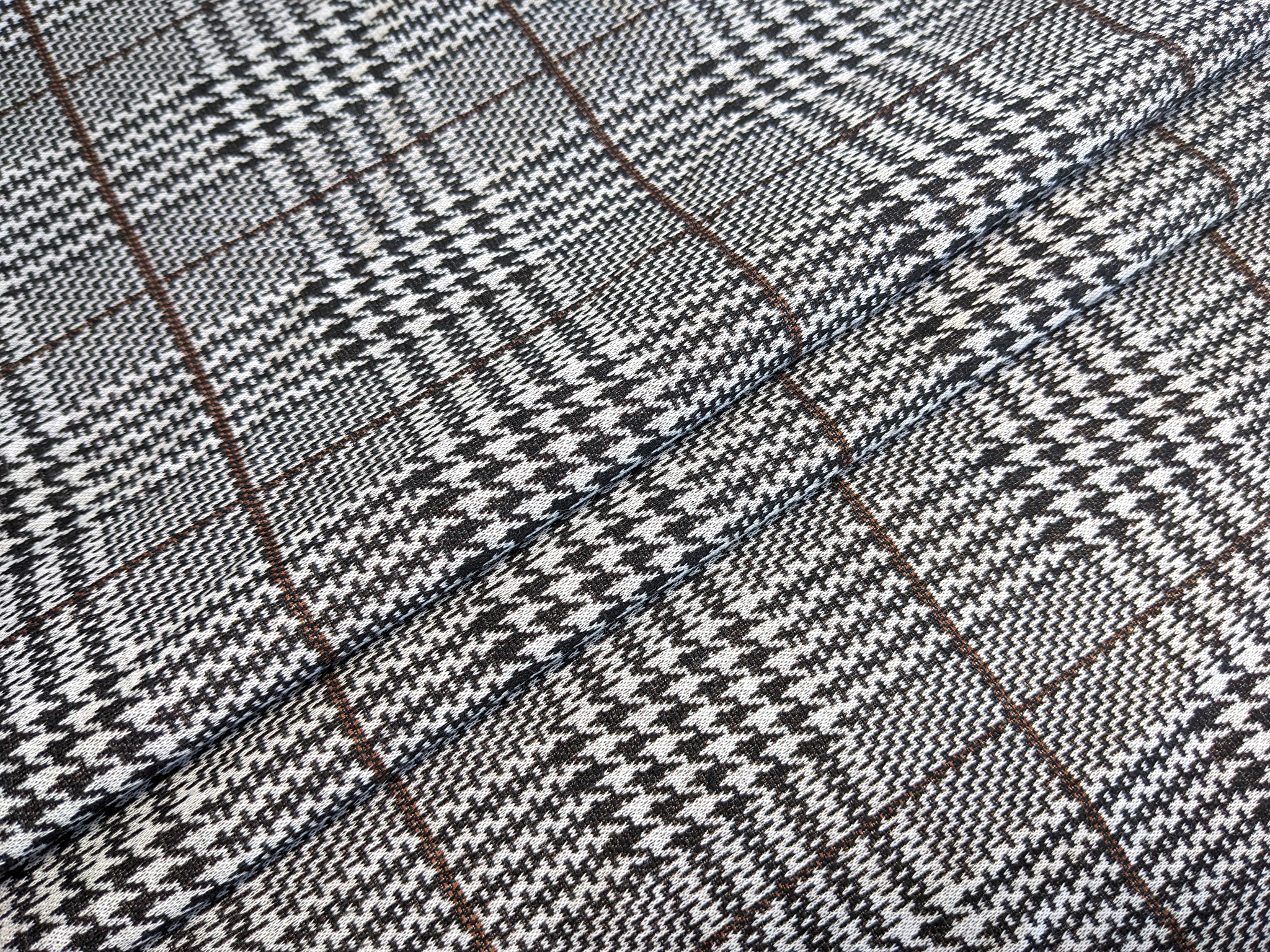 Трикотаж вискозный клетка 90 мм, темно-серый с коричневым