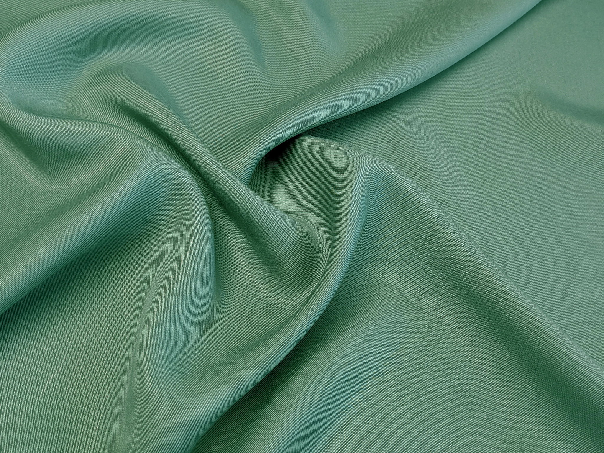 Твил тенсел - тонкий, легкий, шелковистый материал с твиловым плетением, образующим тонкую диагональ на поверхности. Ткань имеет шелковистый блеск с благородным переливом, тактильно приятная, легко и красиво драпируется мягкими складками. Полотно крепкое и прочное, без эластана, сминаемость присутсвует за счет натурального состава, хорошо пропускает воздух.