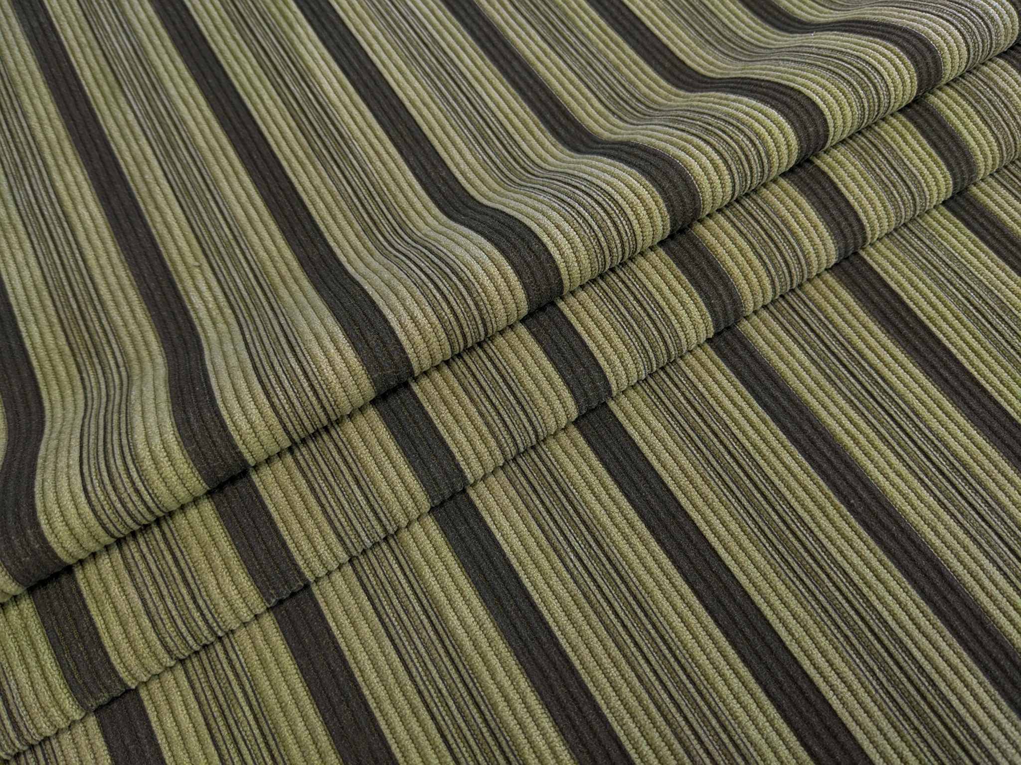 Вельвет стрейч полоска, светлый хаки с коричневым