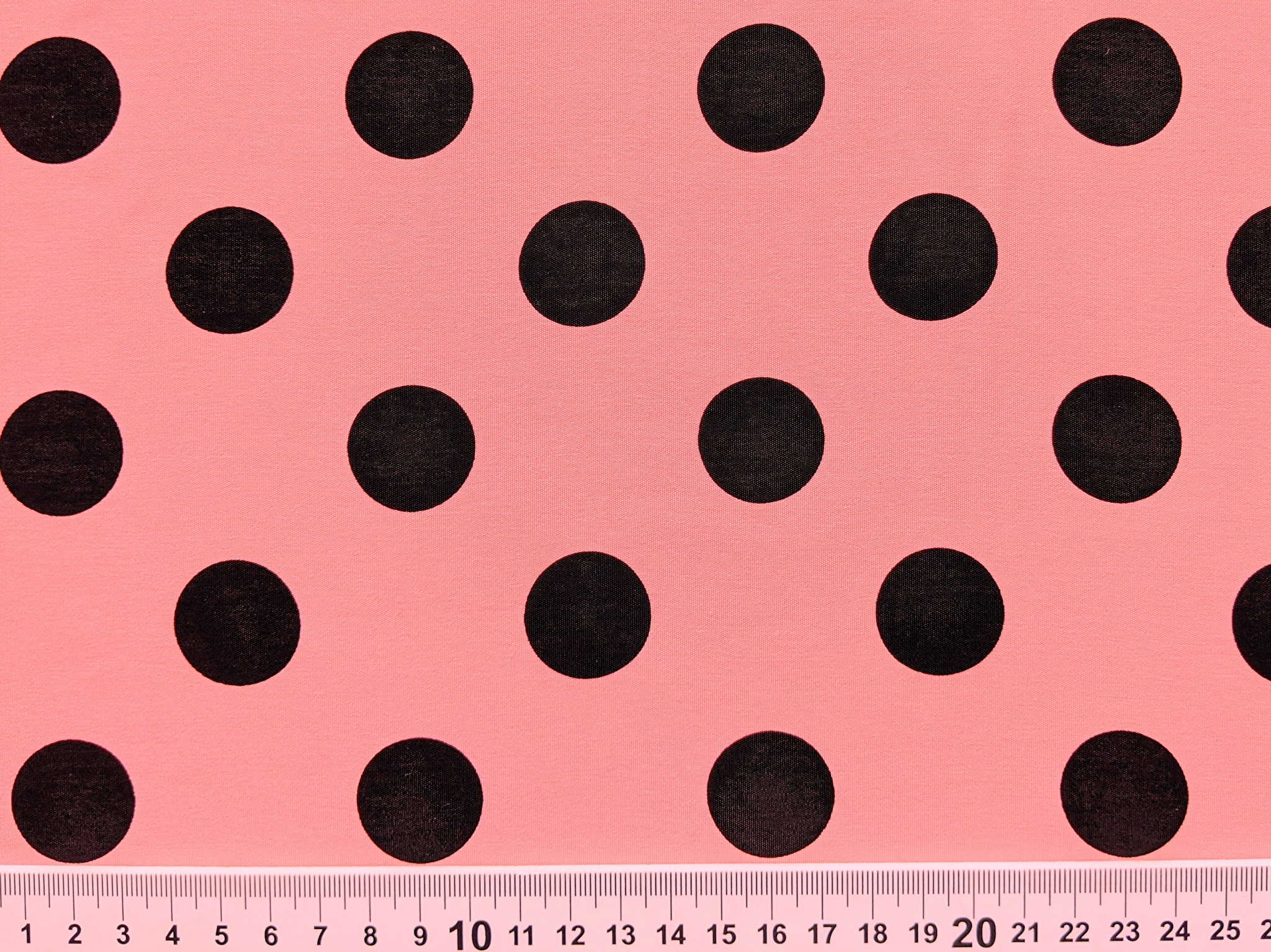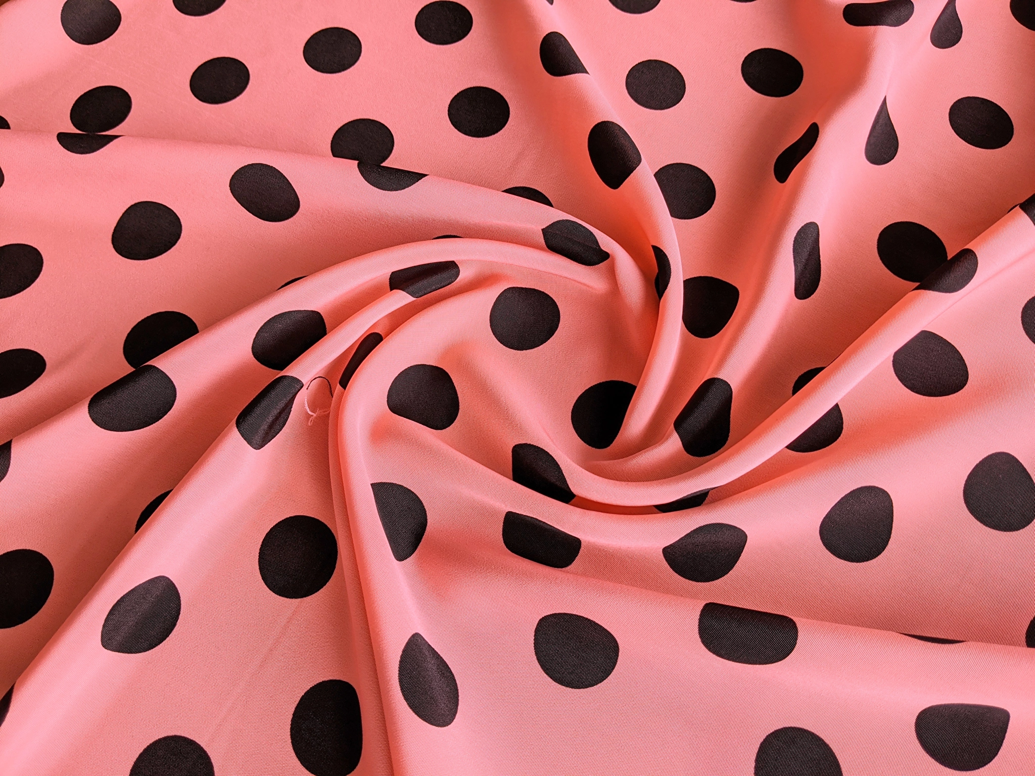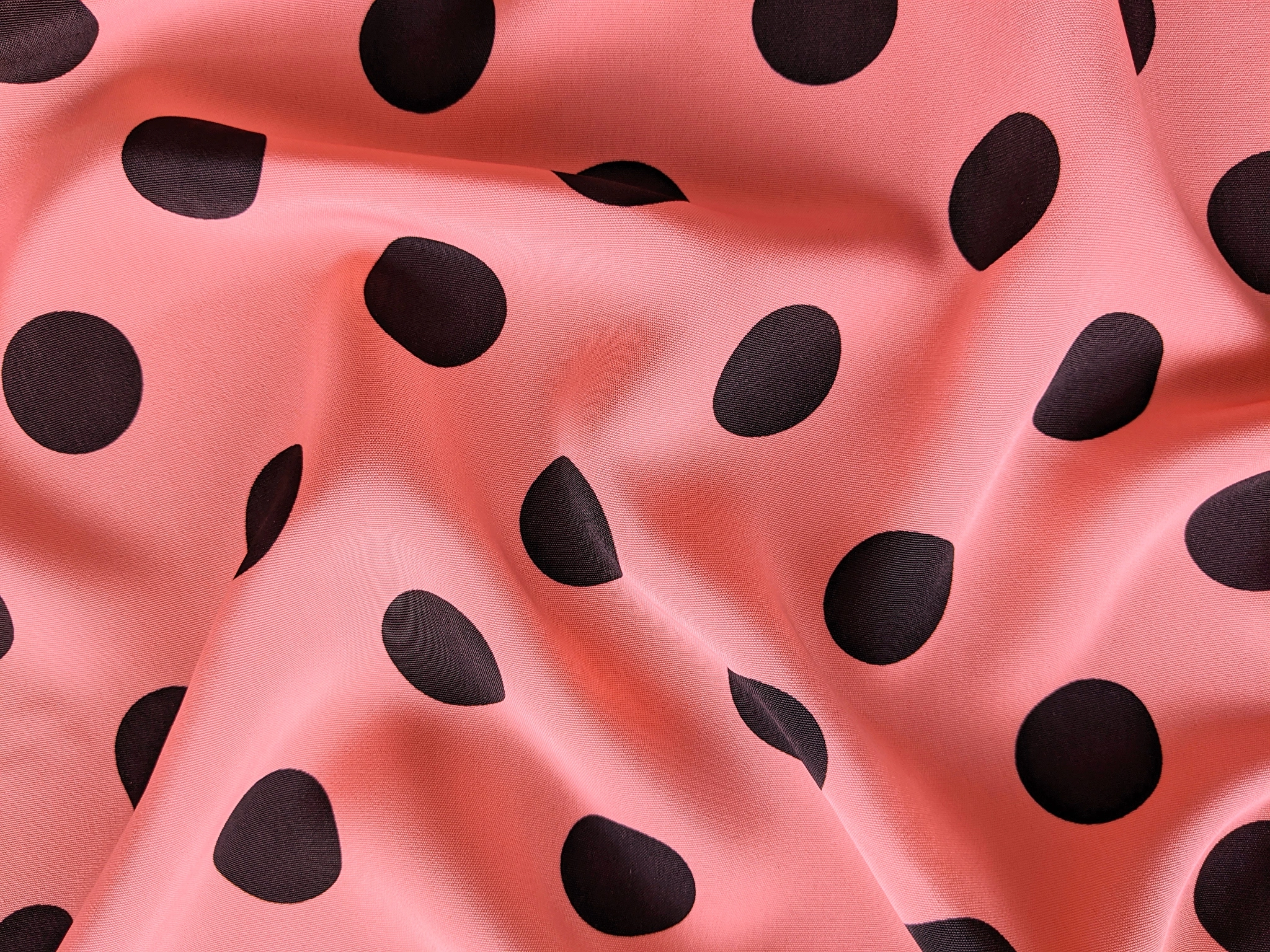 Вискоза Индонезия горох на персиковом, черный на персиковом (отрез 1,8 м)