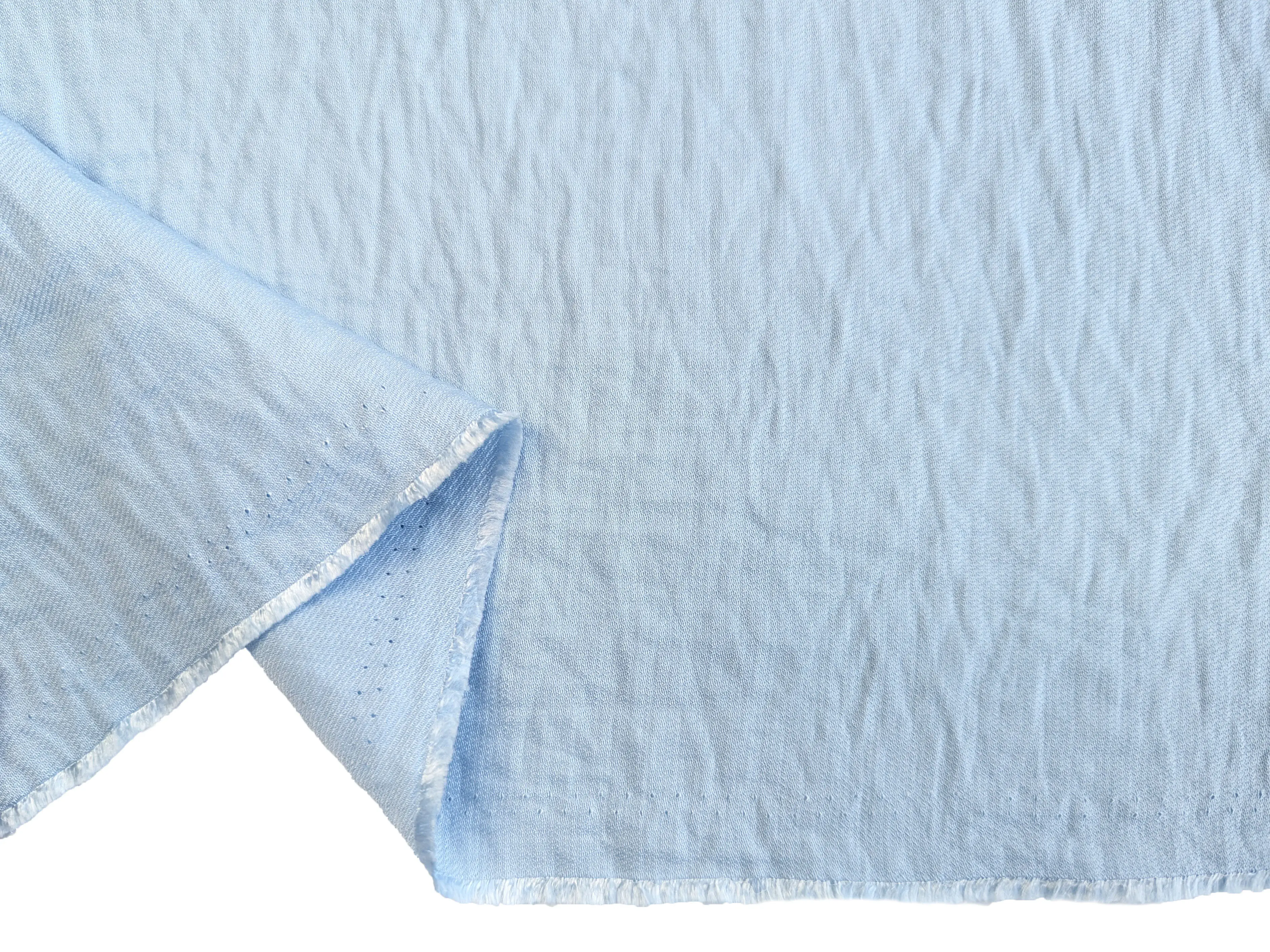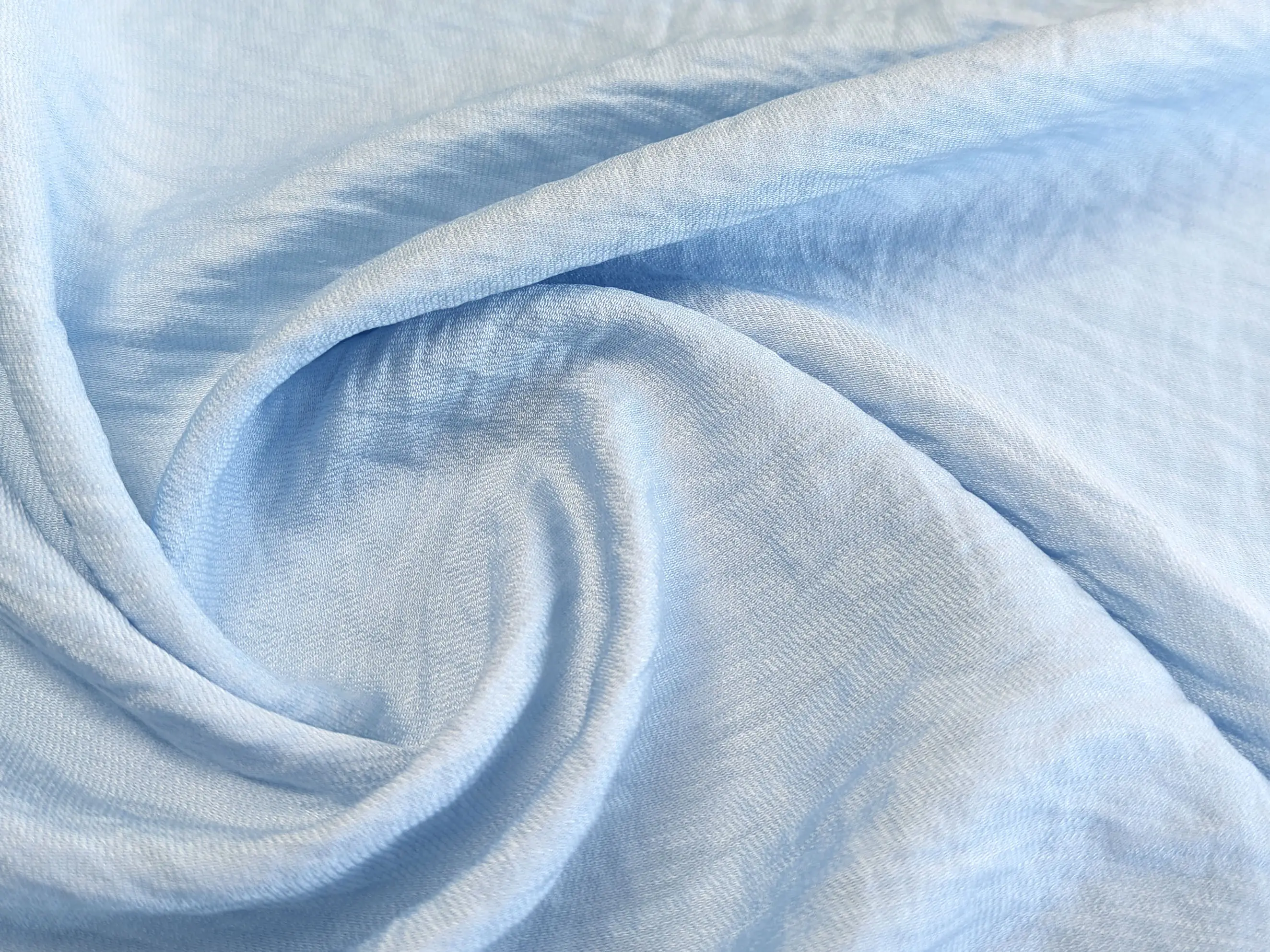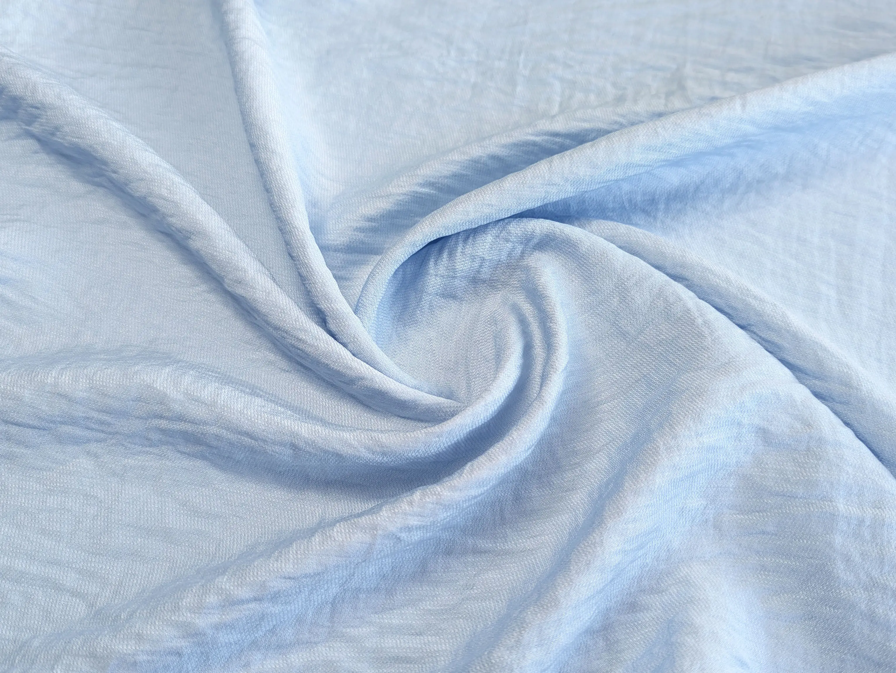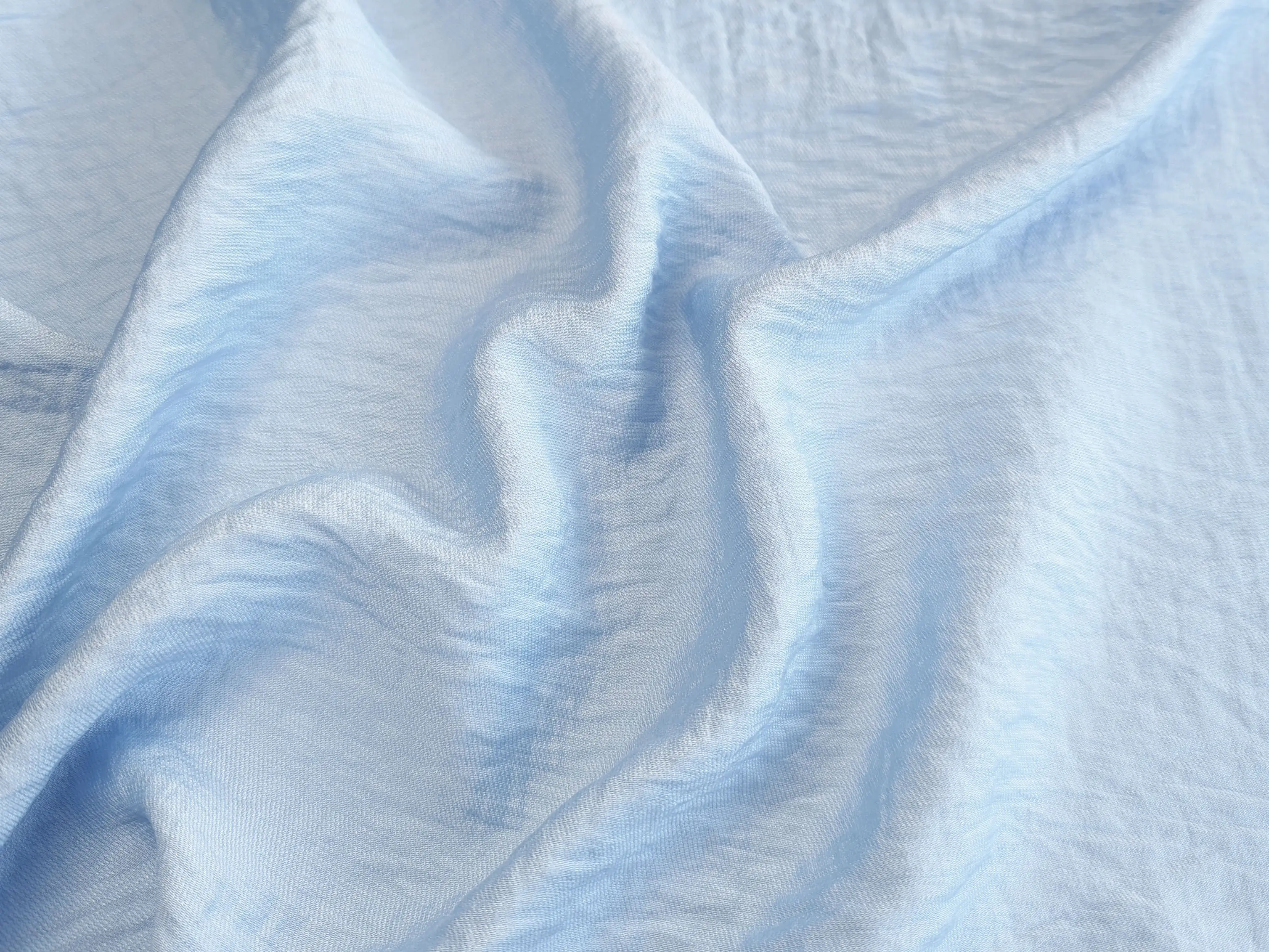 Вискоза с нейлоном - это мягкая и лёгкая жатая ткань с гладкой поверхностью и деликатным полированным блеском. Материал отлично драпируется, образуя плавные, мягкие складки, при этом практически не держит жёсткую форму.