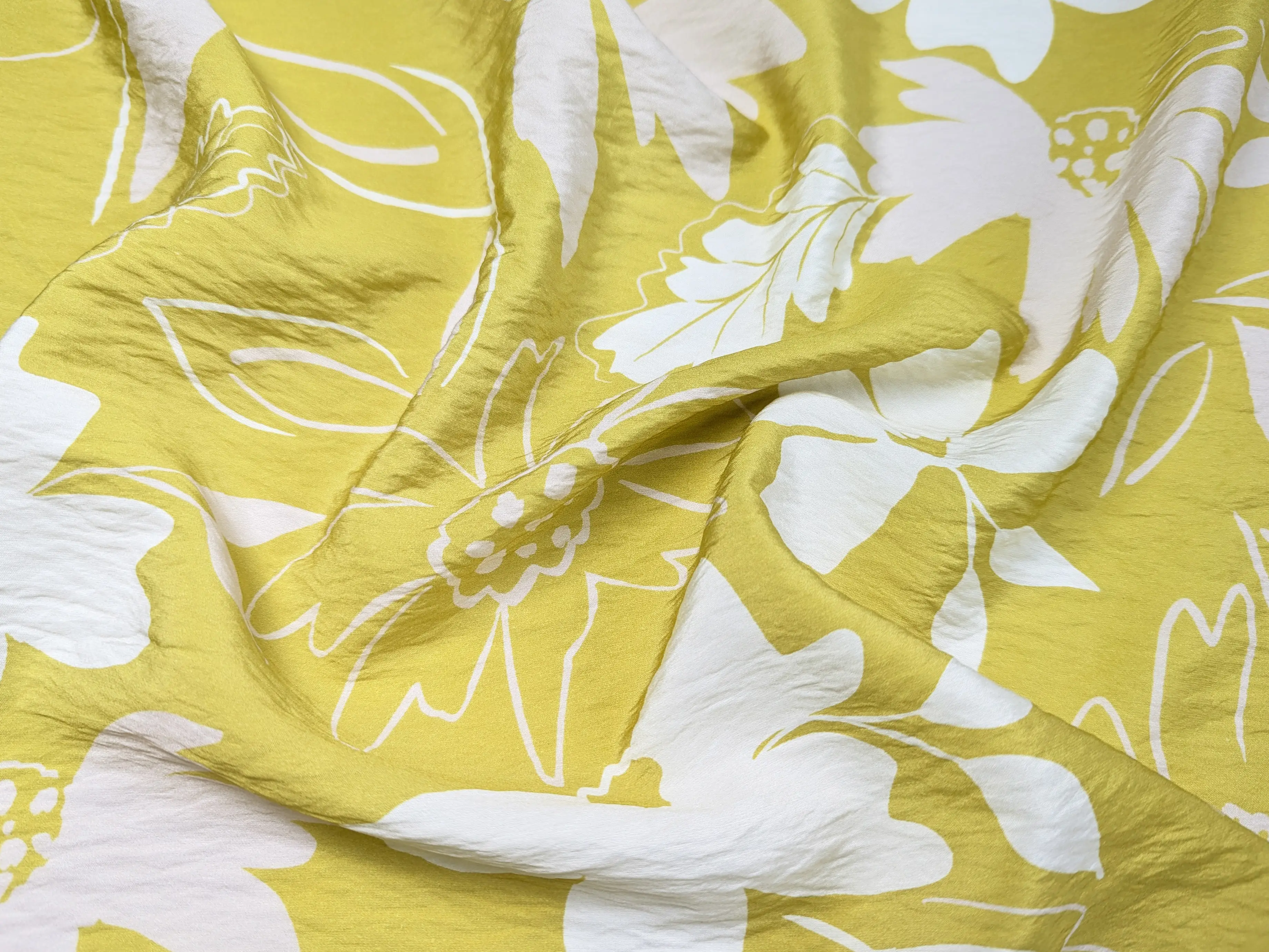 Вискоза шелк Бохо крупные цветы, горчично-зеленый