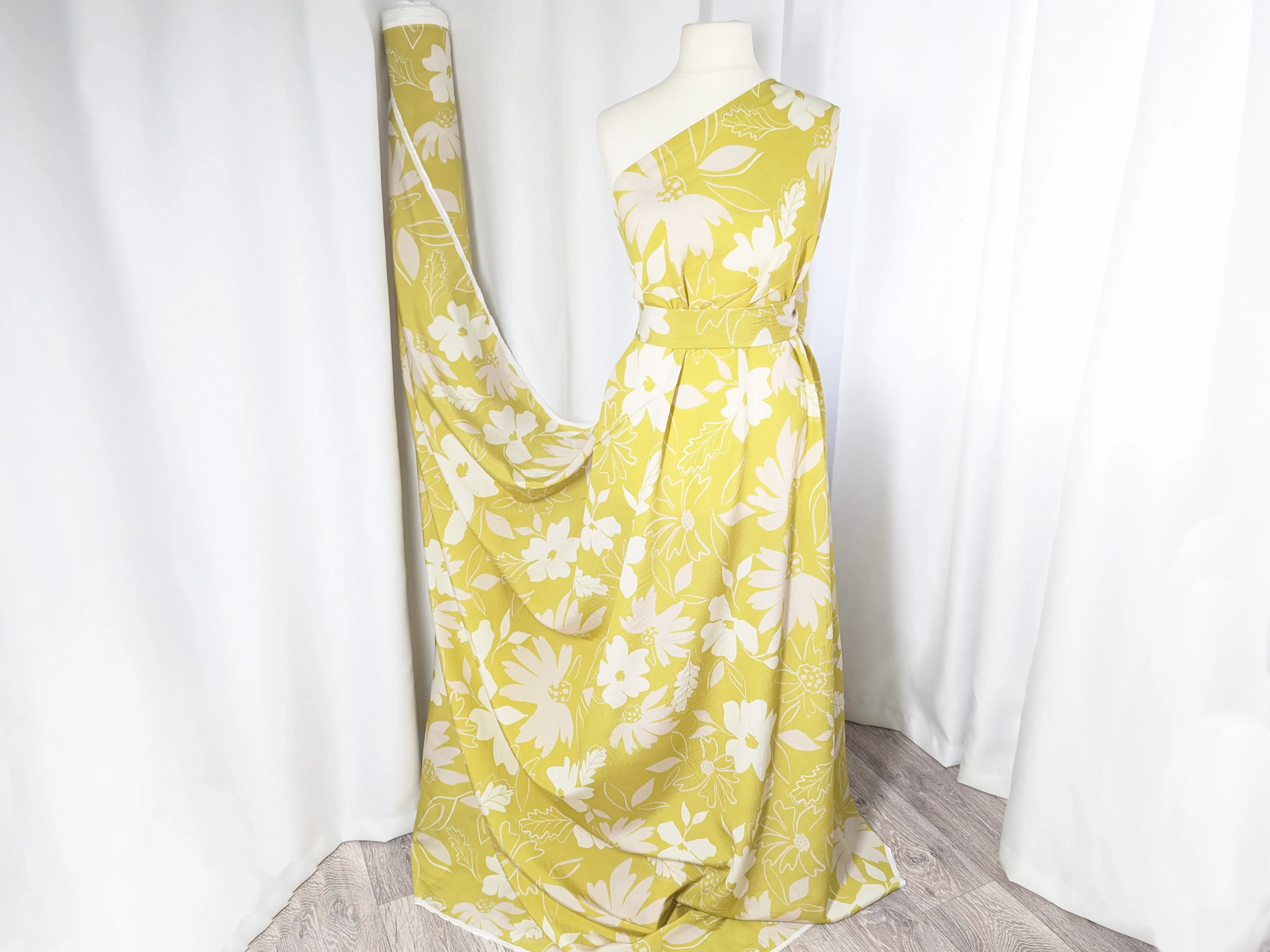 Вискоза шелк Бохо - тонкий, невесомый материал с едва заметной жатой текстурой. Ткань тактильно приятная, легкая и воздушная, сочетает в себе нежность шелковистой структуры и изысканность штапеля. При драпировке ложится в мягкие, воздушные воланы и складки. Имеет легкий силуэтный просвет, не тянется, за счет нанурального состава присутствует сминаемость, пропускает воздух, не парит, дает ощущение прохлады в жаркую погоду.