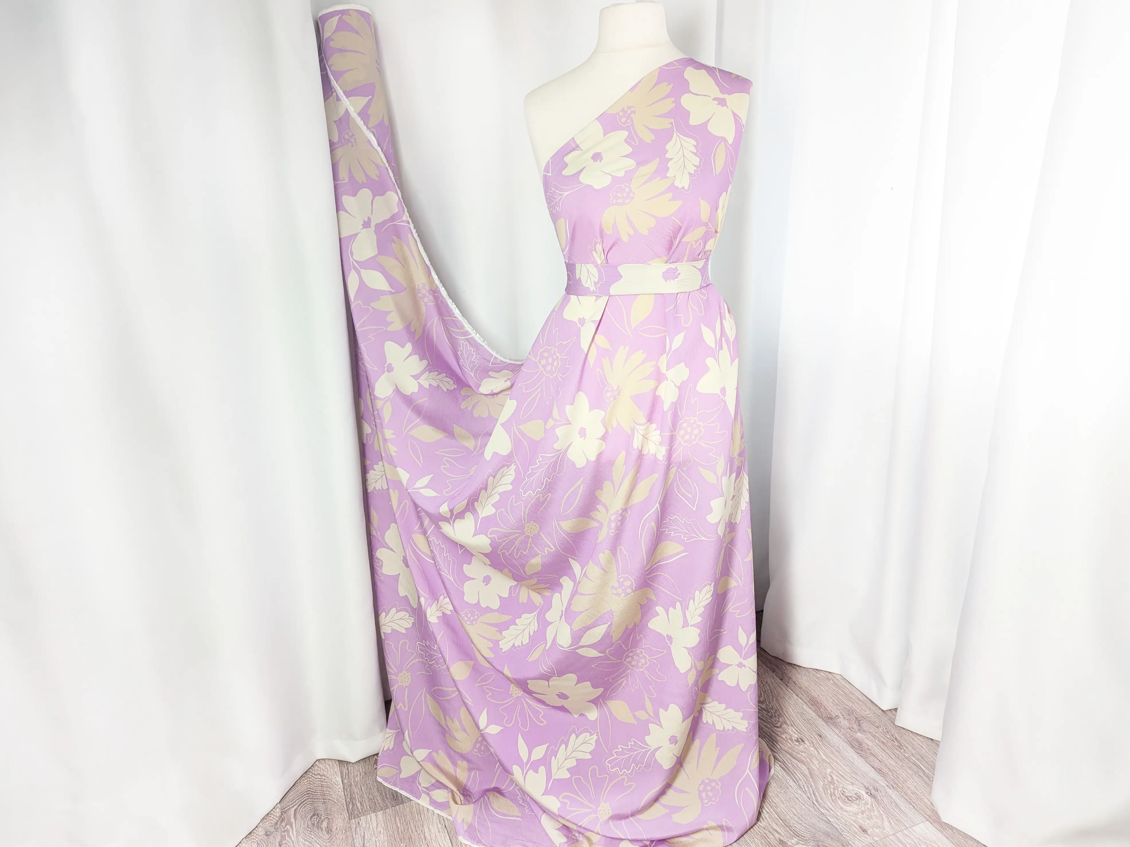 Вискоза шелк Бохо крупные цветы, светлая лаванда