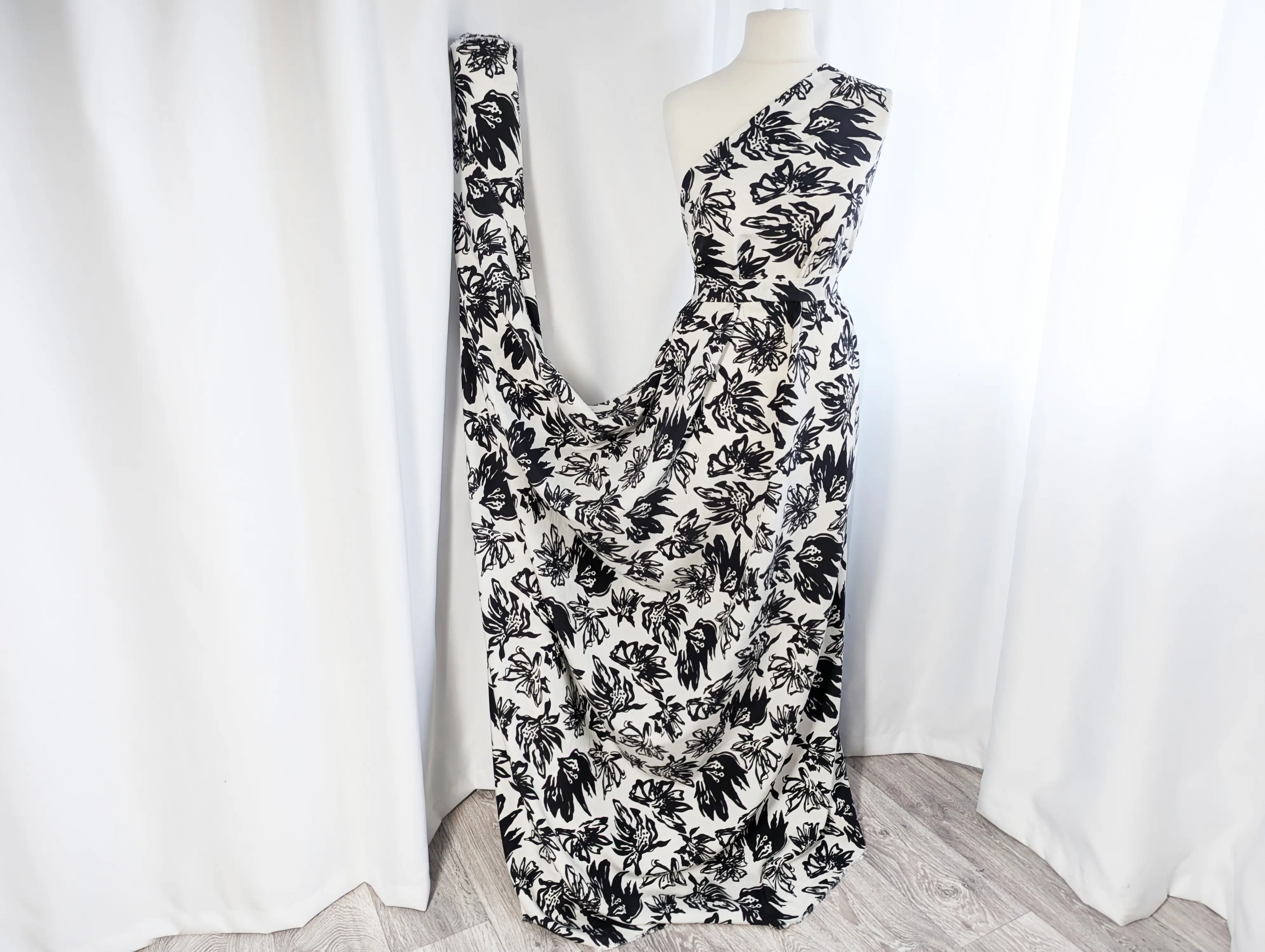 Вискоза шелк Бохо - тонкий, невесомый материал с едва заметной жатой текстурой. Ткань тактильно приятная, легкая и воздушная, сочетает в себе нежность шелковистой структуры и изысканность штапеля. При драпировке ложится в мягкие, воздушные воланы и складки. Имеет легкий силуэтный просвет, не тянется, за счет нанурального состава присутствует сминаемость, пропускает воздух, не парит, дает ощущение прохлады в жаркую погоду.