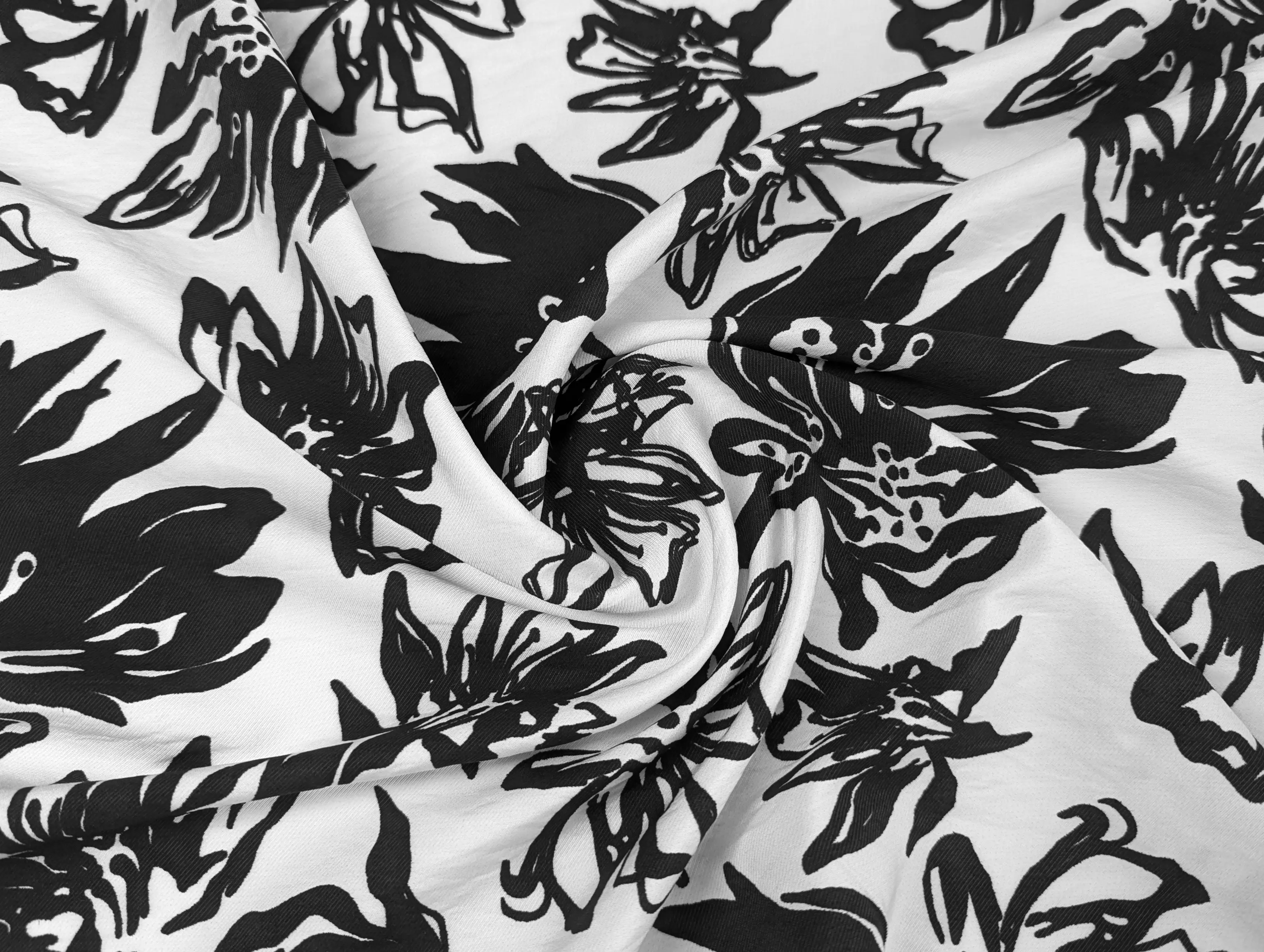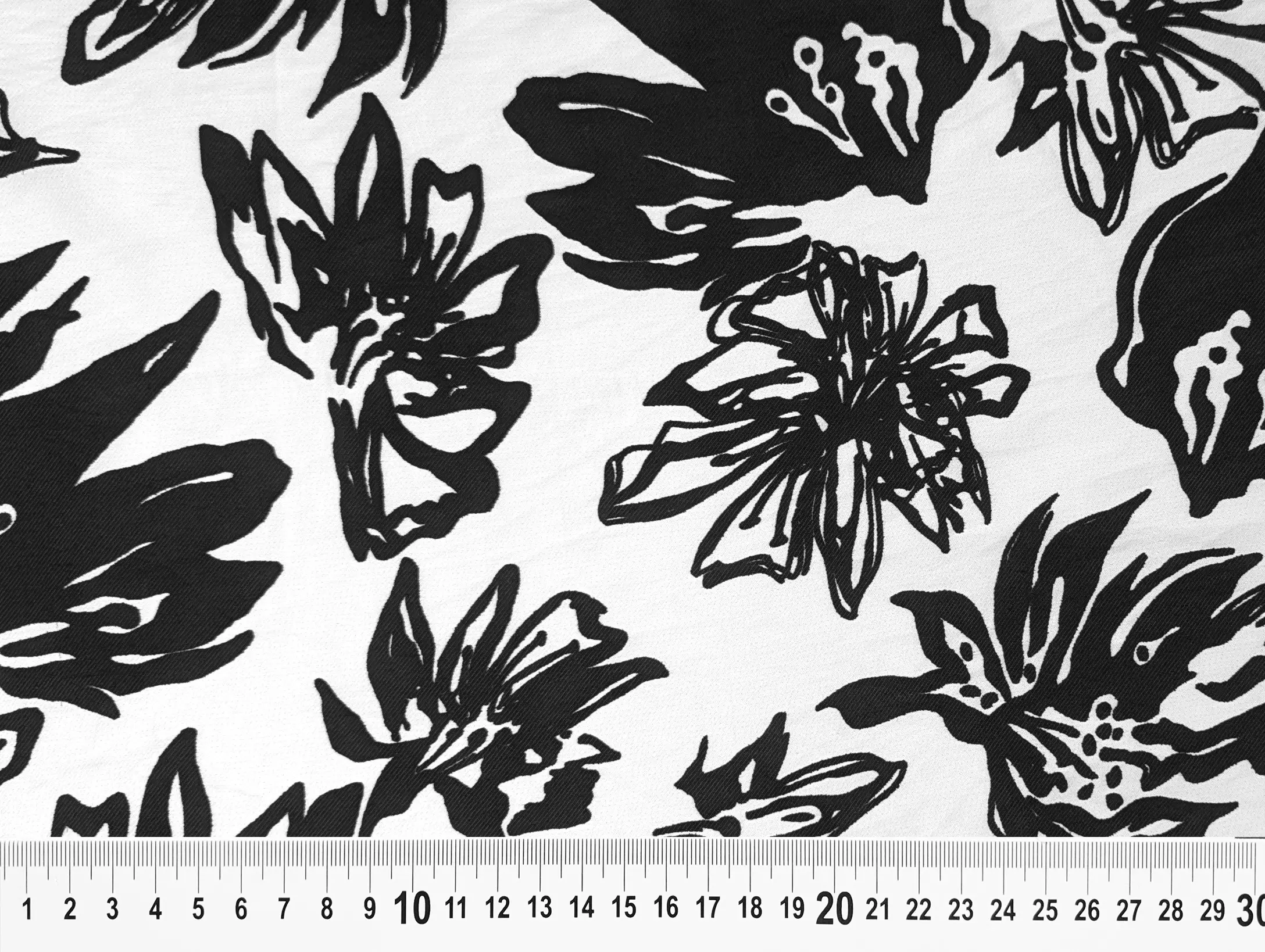 Вискоза шелк Бохо лилии, черный на молочном