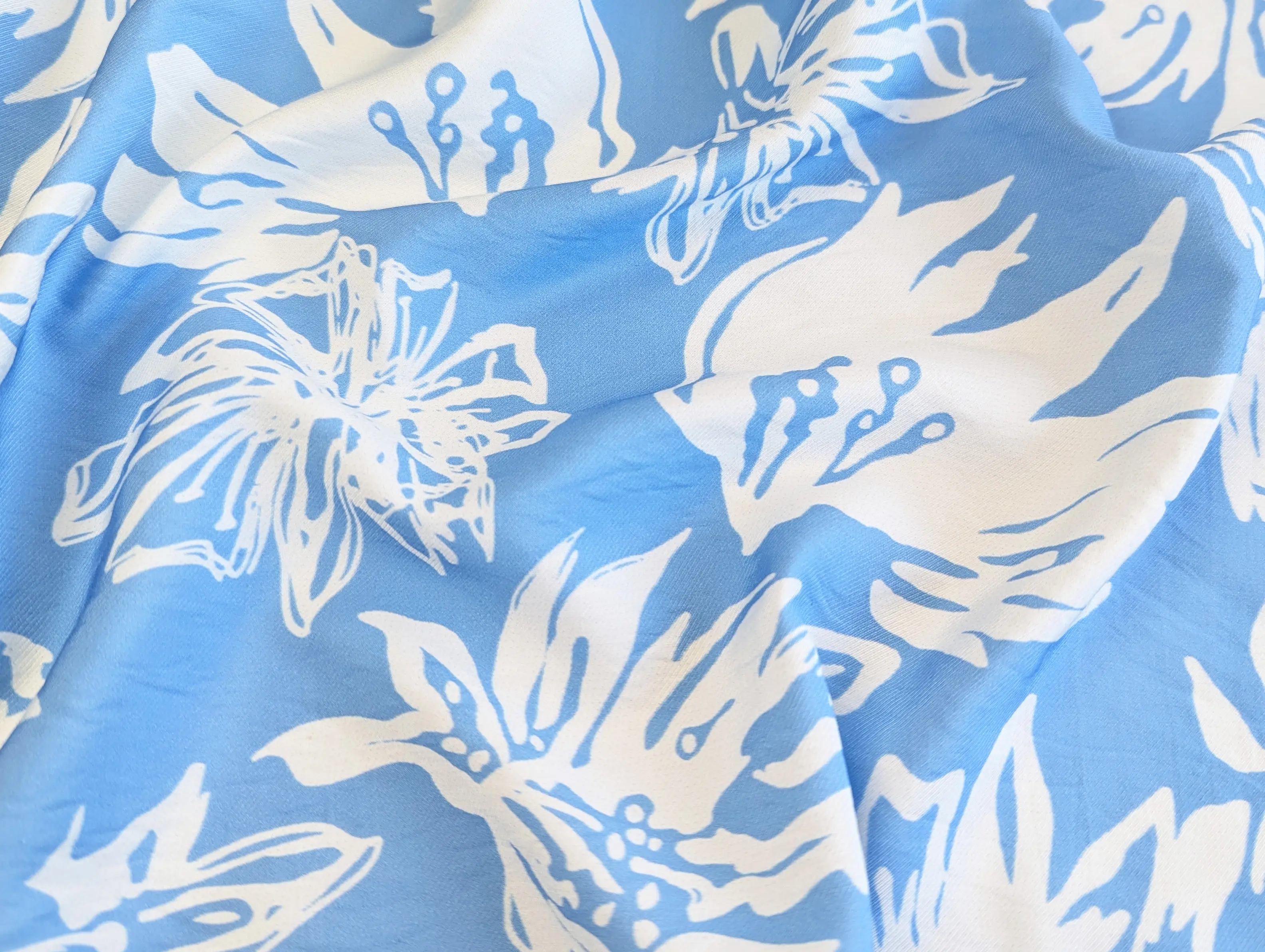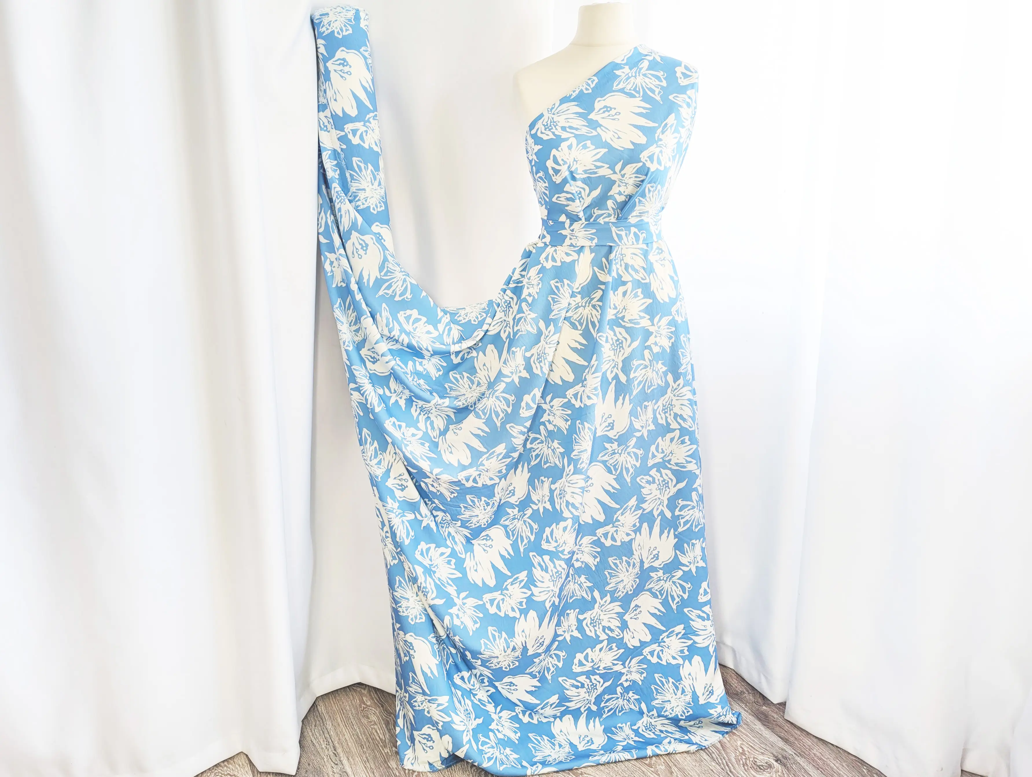 Вискоза шелк Бохо - тонкий, невесомый материал с едва заметной жатой текстурой. Ткань тактильно приятная, легкая и воздушная, сочетает в себе нежность шелковистой структуры и изысканность штапеля. При драпировке ложится в мягкие, воздушные воланы и складки. Имеет легкий силуэтный просвет, не тянется, за счет нанурального состава присутствует сминаемость, пропускает воздух, не парит, дает ощущение прохлады в жаркую погоду.