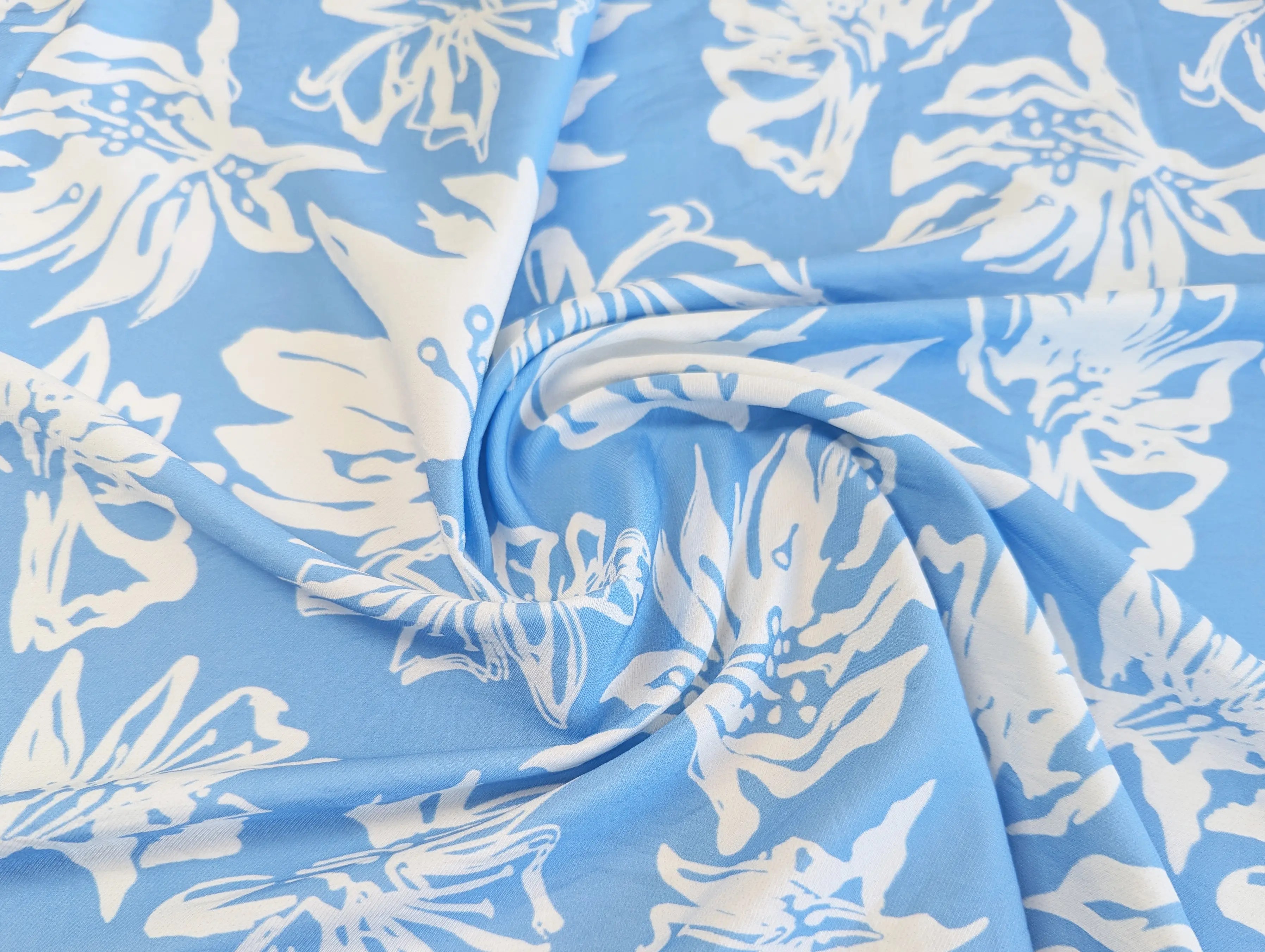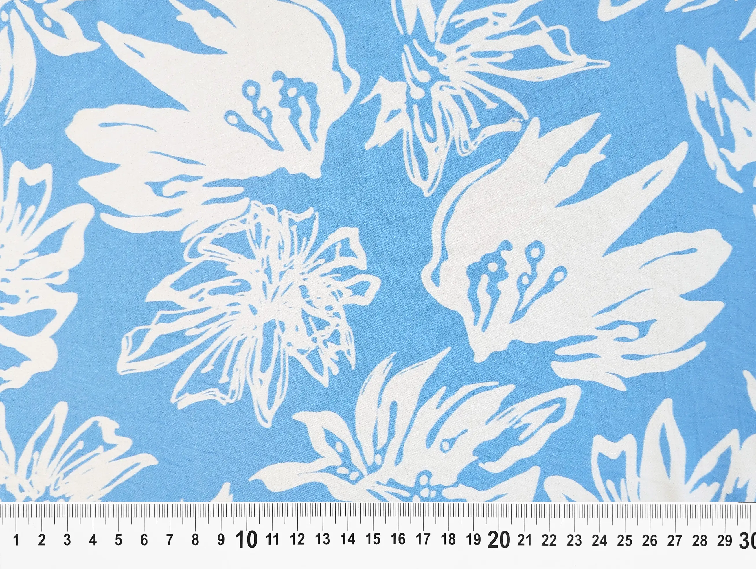 Вискоза шелк Бохо лилии, молочный на голубом