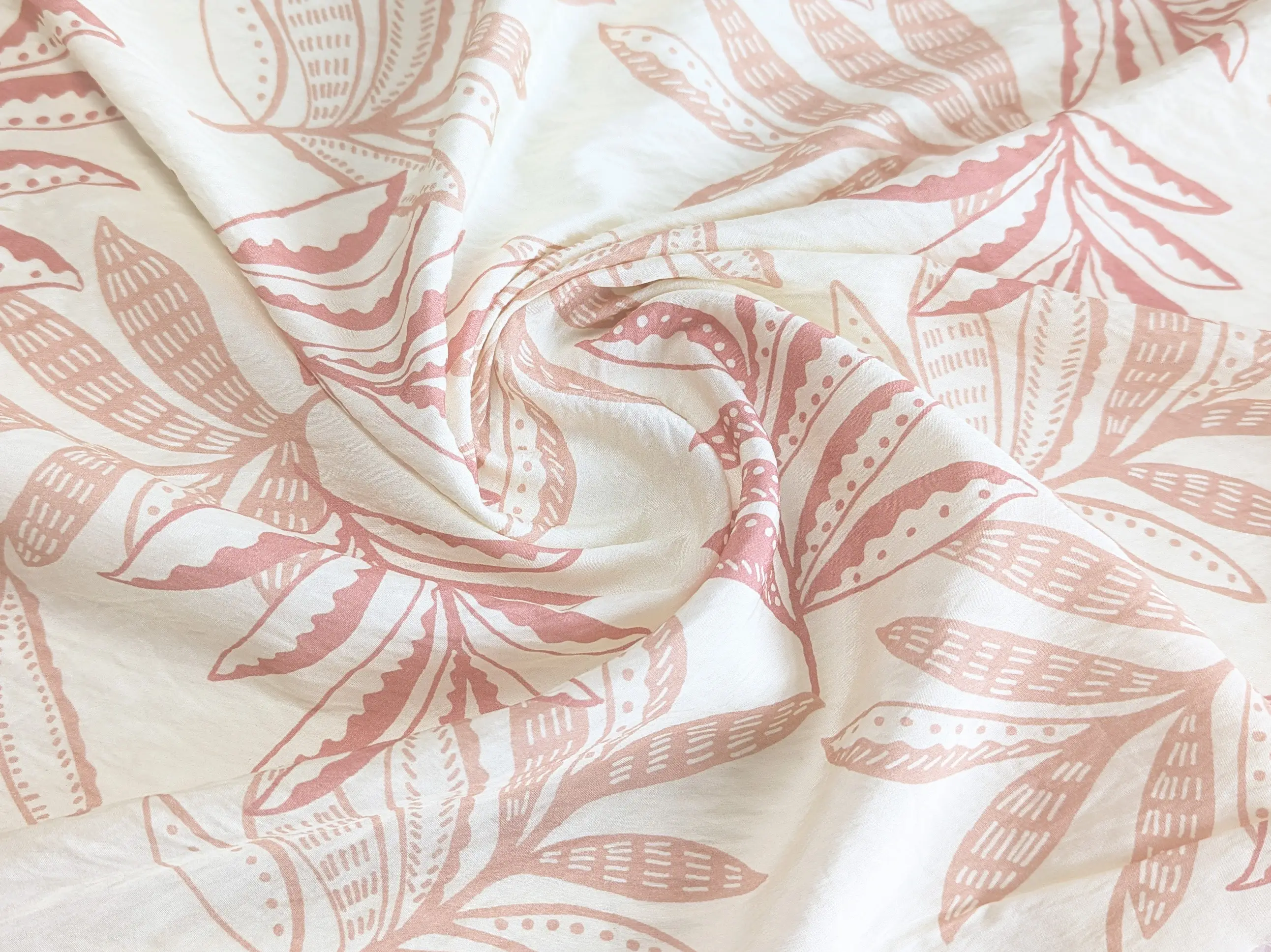 Вискоза шелк Бохо лиственная сказка, кремовый с амарантовым
