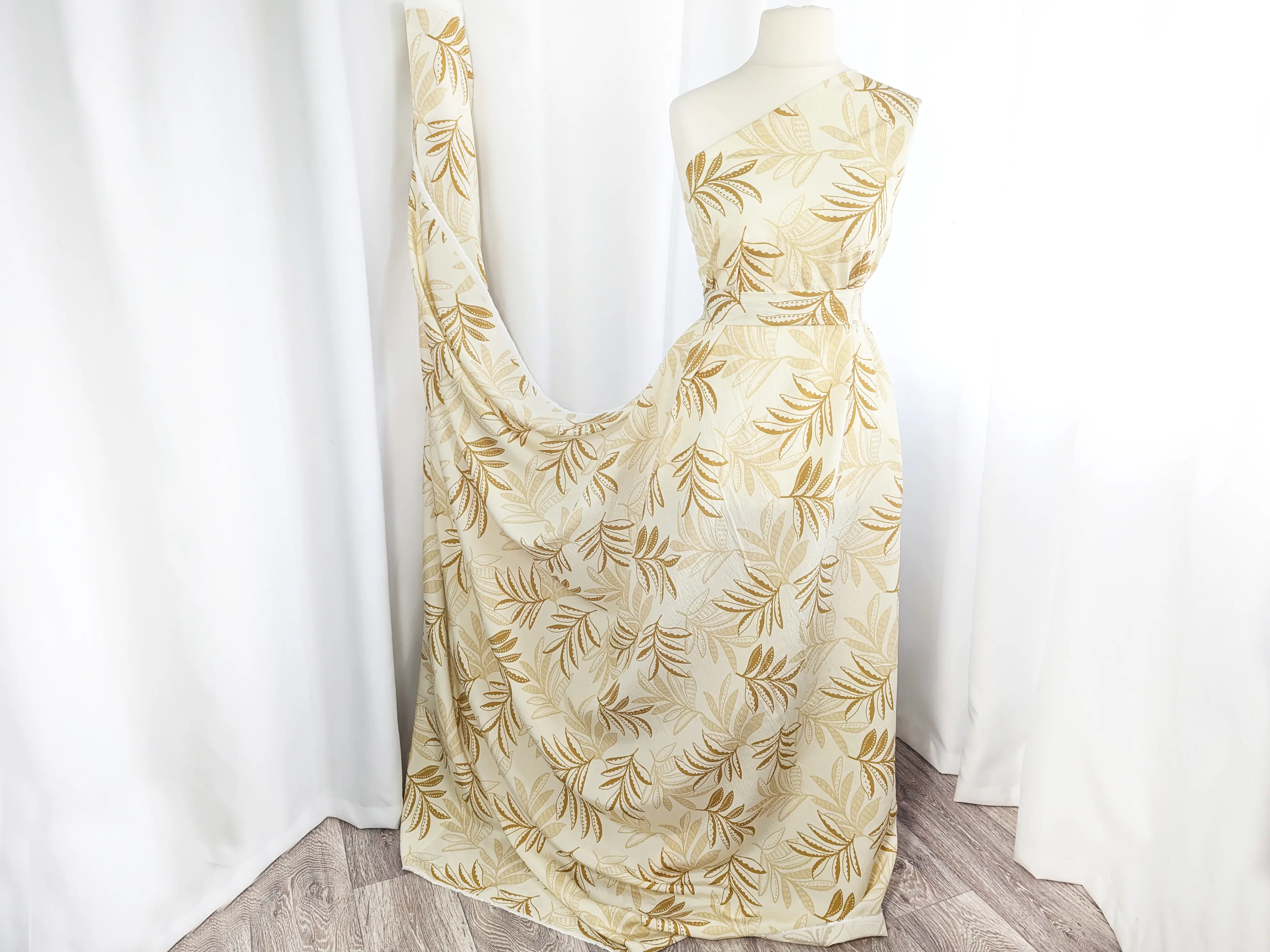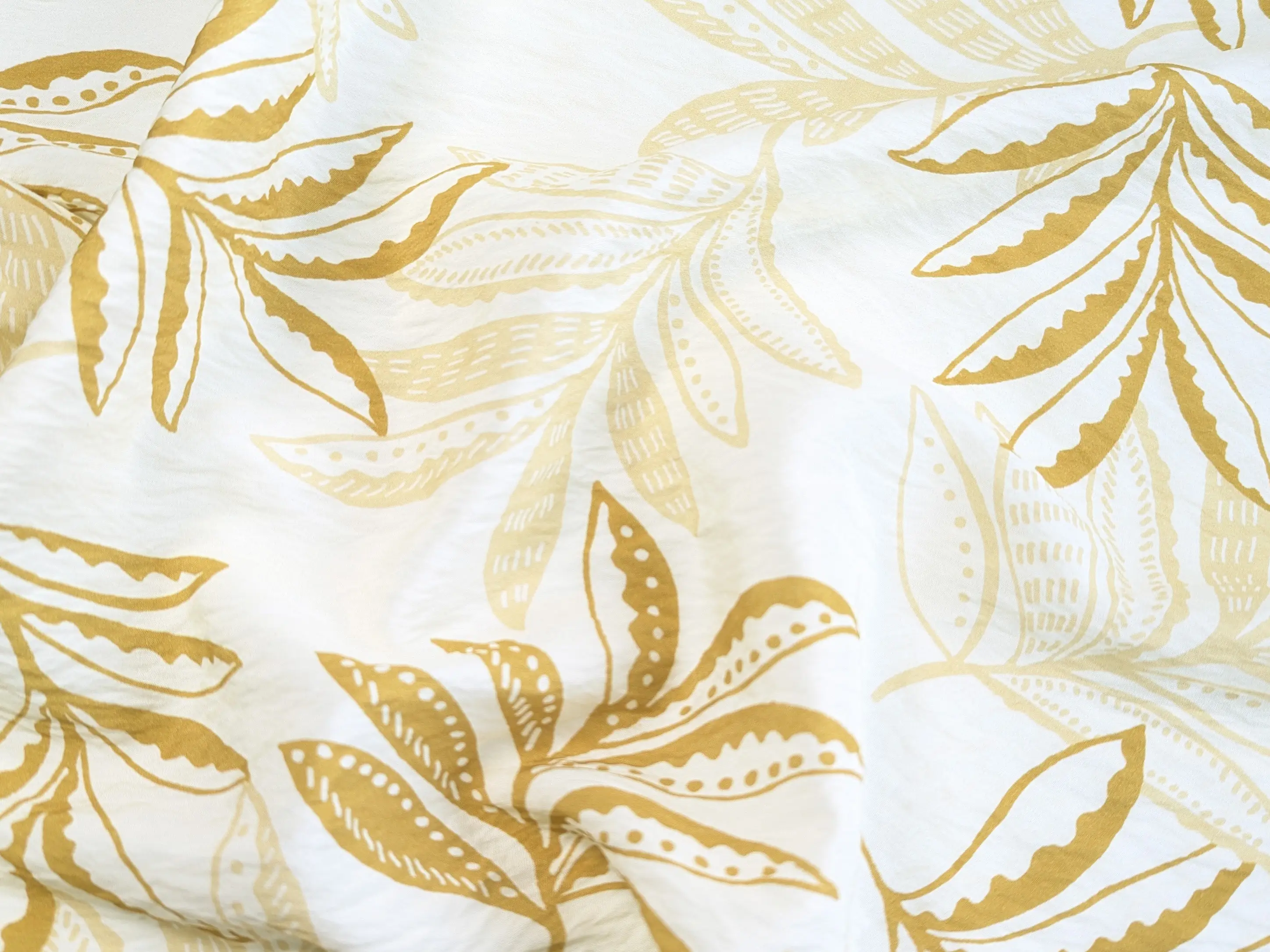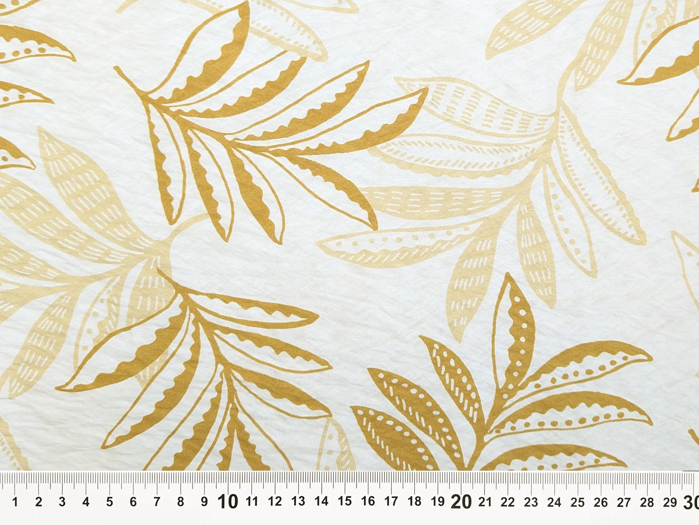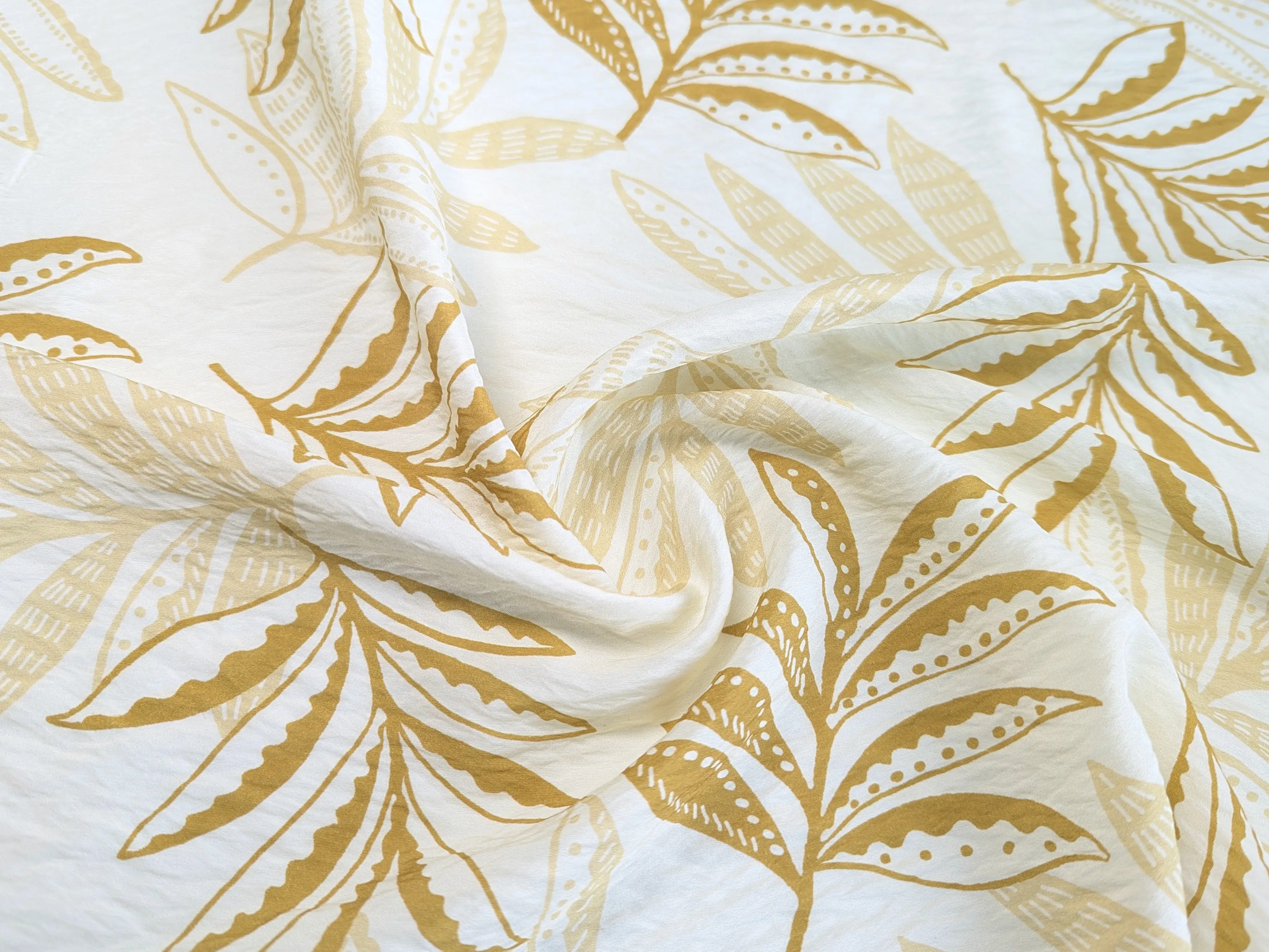 Вискоза шелк Бохо лиственная сказка, кремовый с горчичным