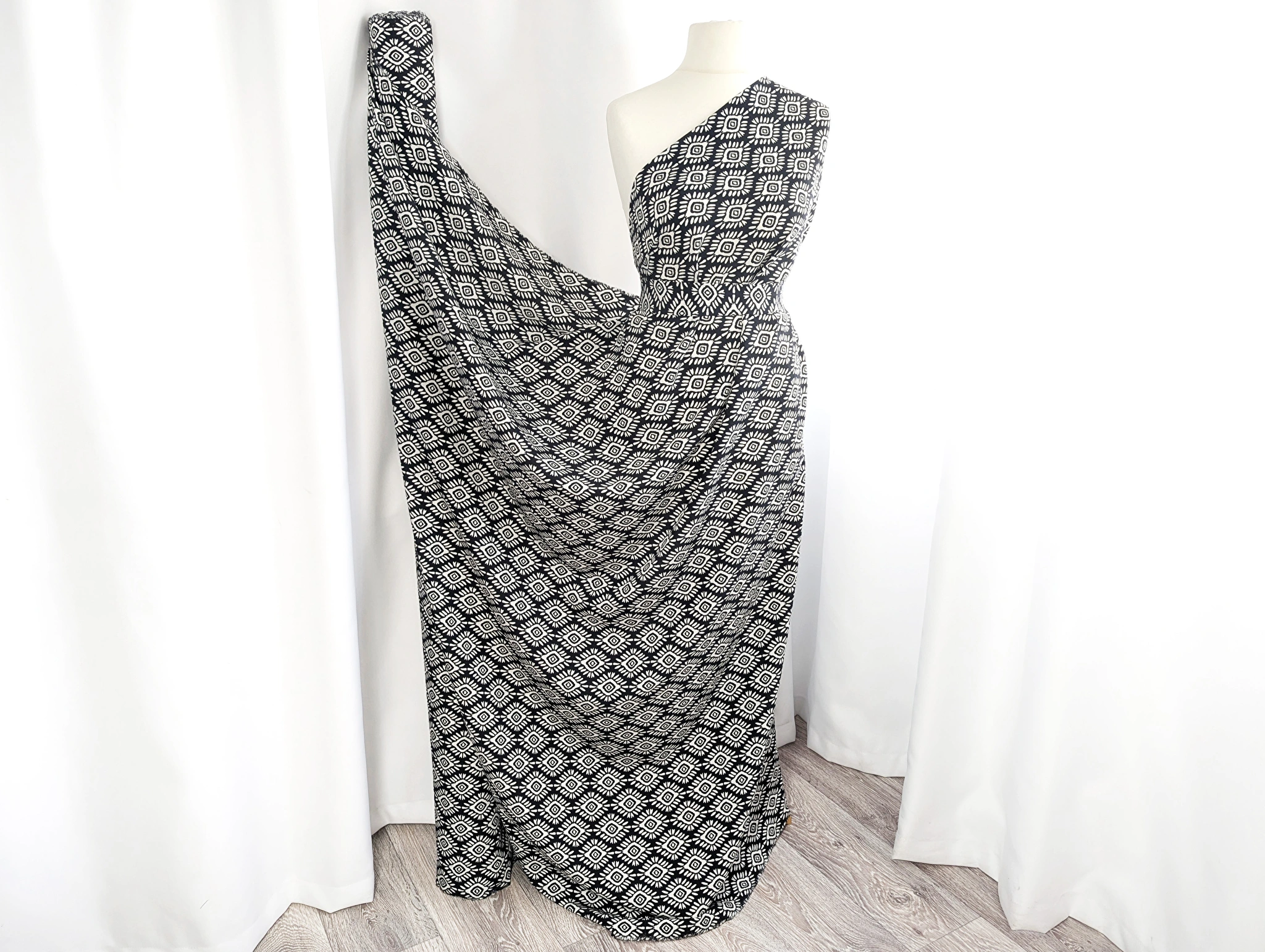 Вискоза шелк Бохо орнамент, черный на молочном
