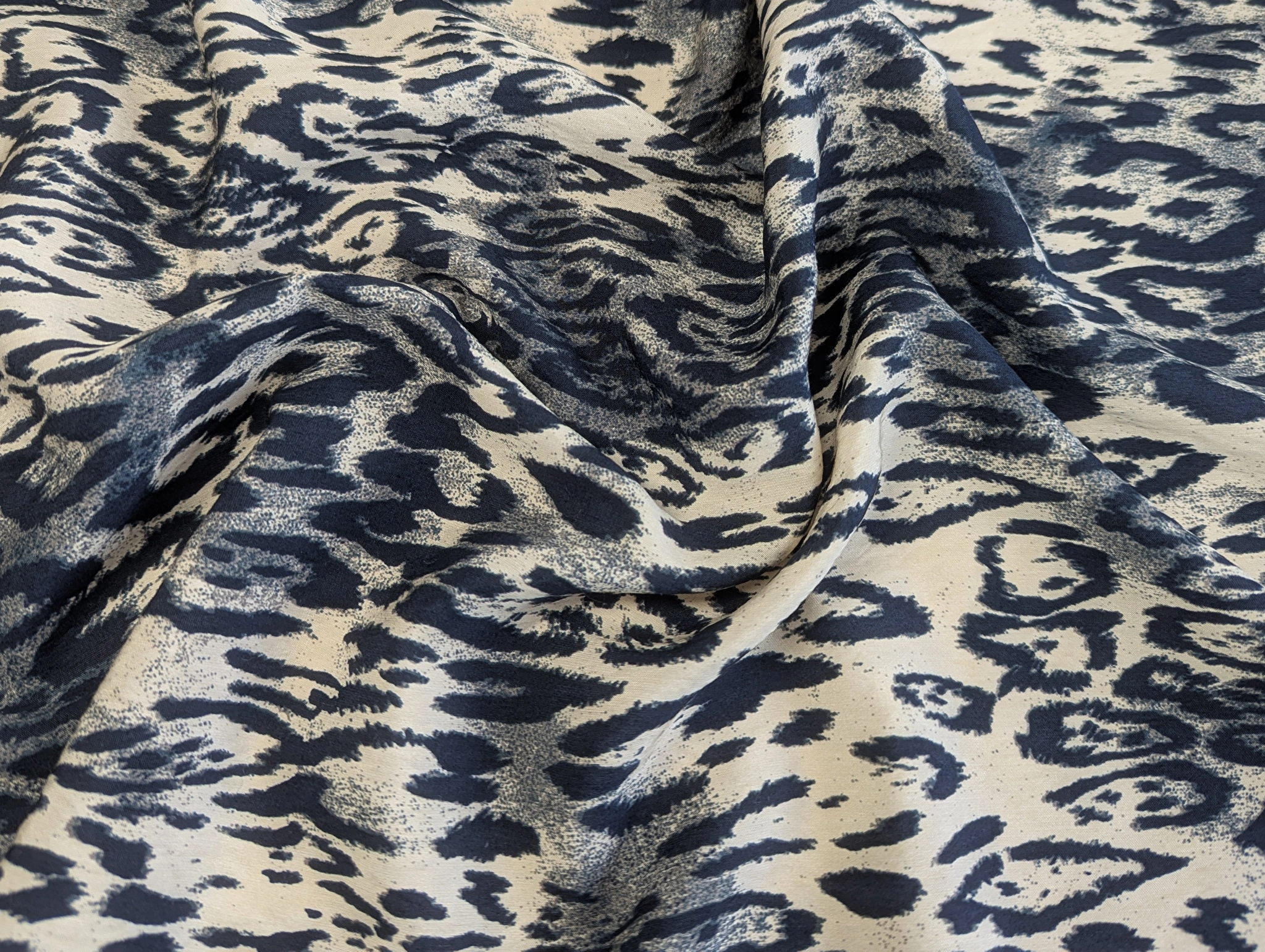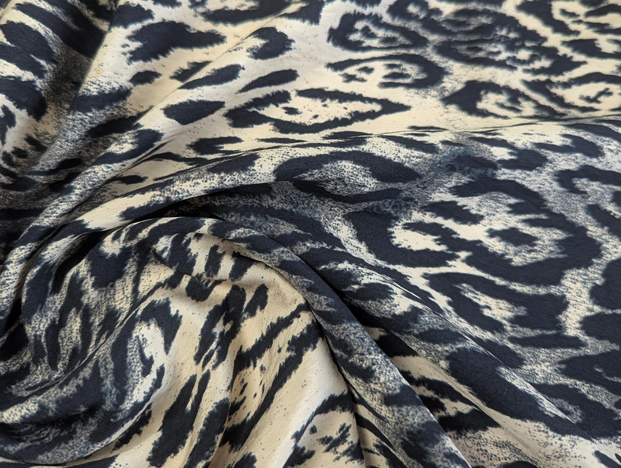Вискоза шелк Бохо снежный барс, бежевый с темно-синим