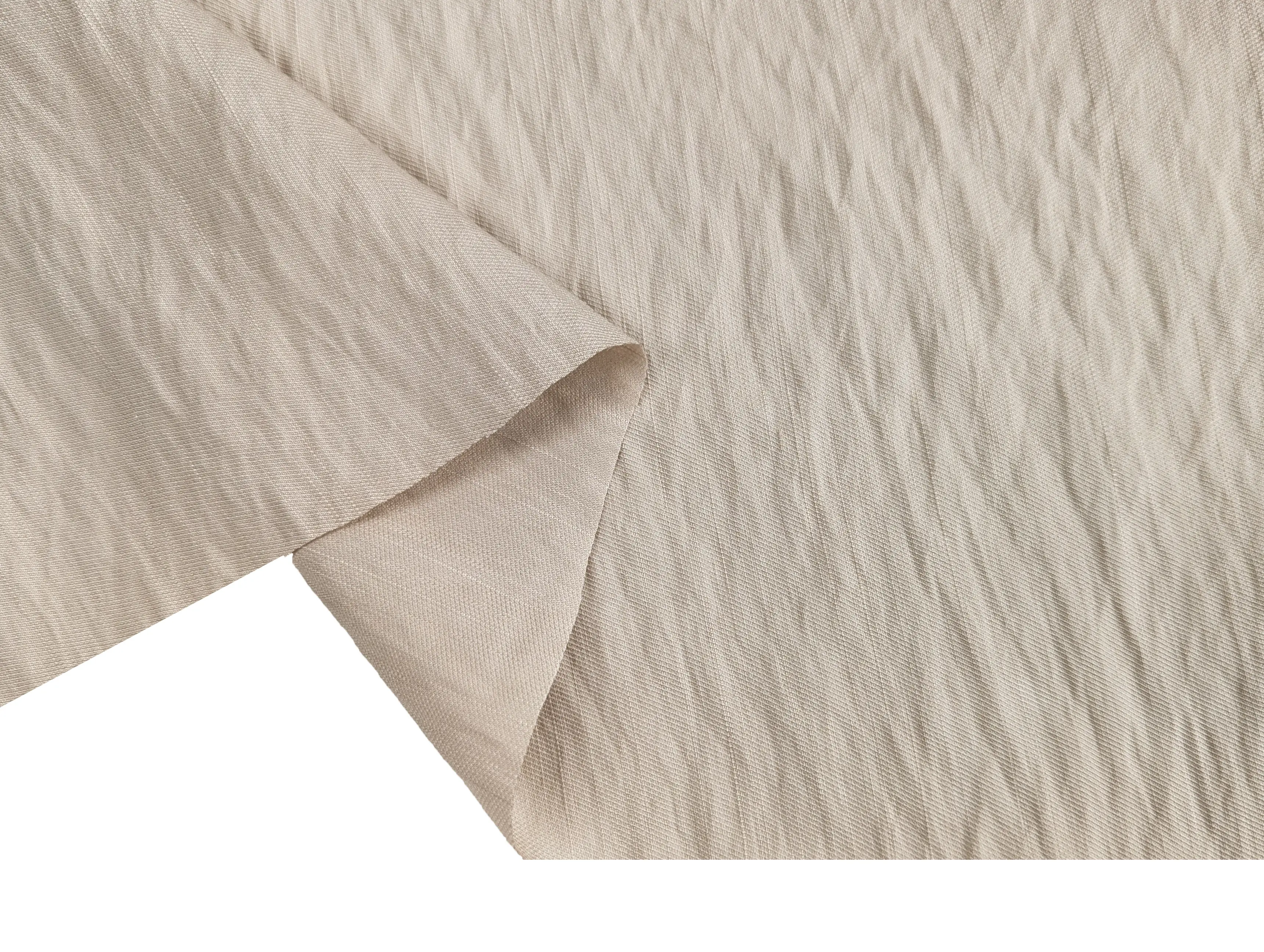 Вискоза твил - легкий, приятный на ощупь материал с твиловым переплетением нитей и текстурированным эффектом жатки. В составе полотна вискоза и нейлон, что обеспечивает ткани шелковистость, мягость, воздухопроницаемость и прочность. Ткань имеет легкий силуэтный просвет, при драпировке ложится в мягкие складки, за счет содержания натуральных волокон - сминается, не тянется. Поверхность ткани имеет незначительные естественные уплотнения в виде штрихов.