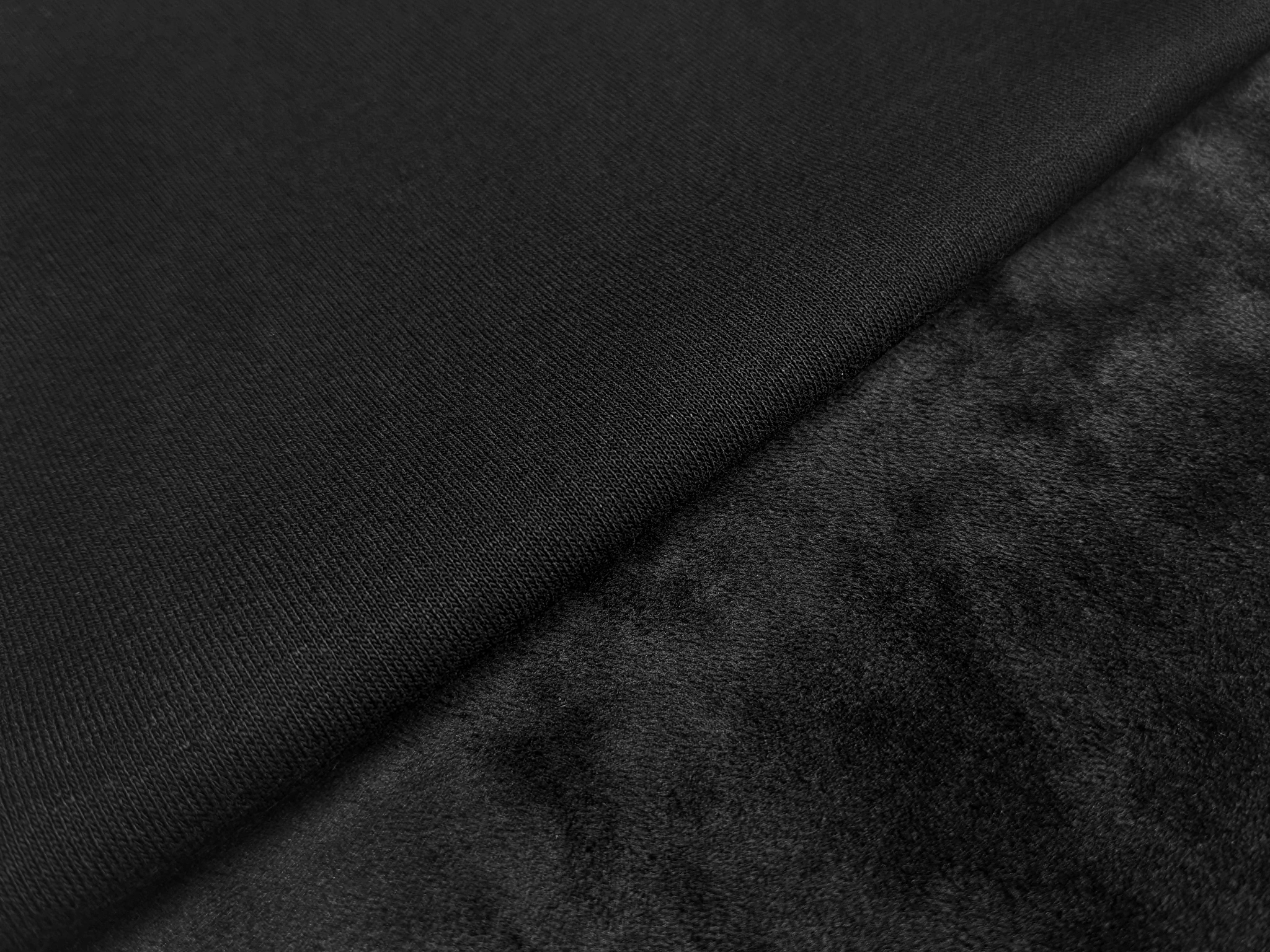 Вискозный трикотаж на вельбо - мягкий, эластичный, плотный материал. Ткань двухслойная, состоит из основы и меха. Лицевая сторона - вискозный трикотаж, изнанка - коротковорсовый мех. Полотно эластичное в обе стороны, упругое, хорошо восстанавливается при растяжении. Трикотаж приятный на ощупь, имеет теплосберегающие свойства, прочный и износостойкий, практичный.