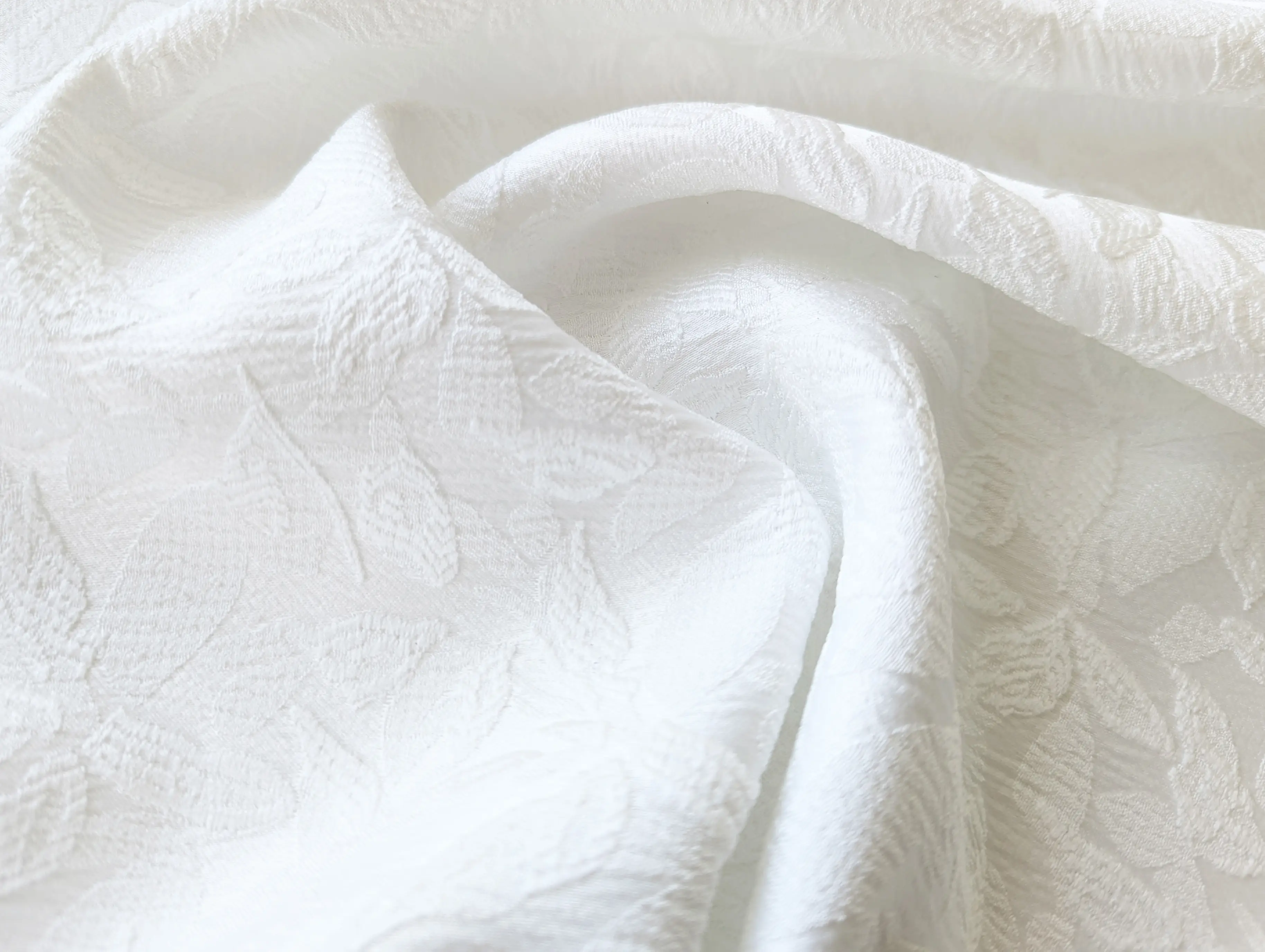 Жаккард крэш лиственная сказка, молочный (отрез 2,5 м)