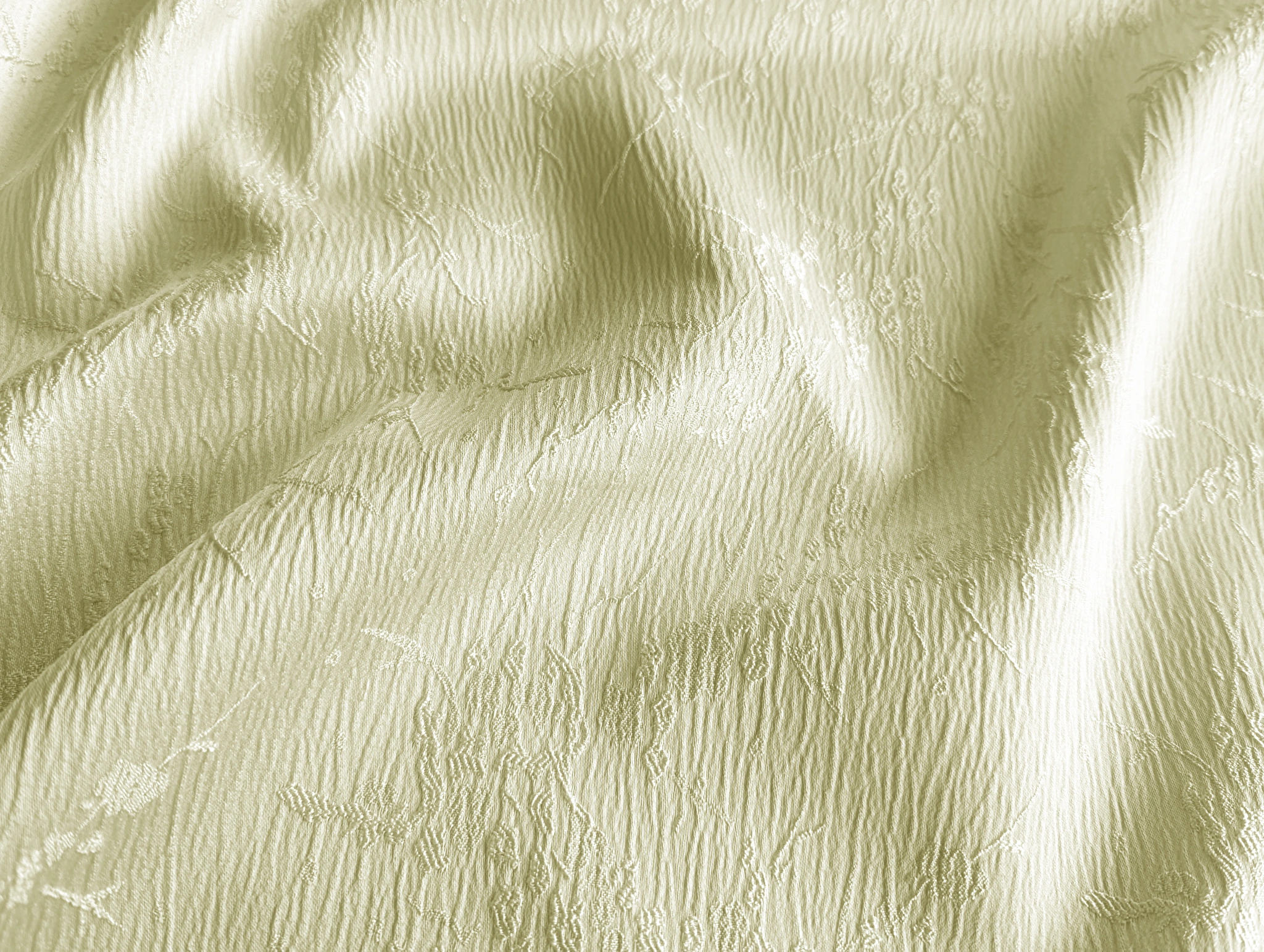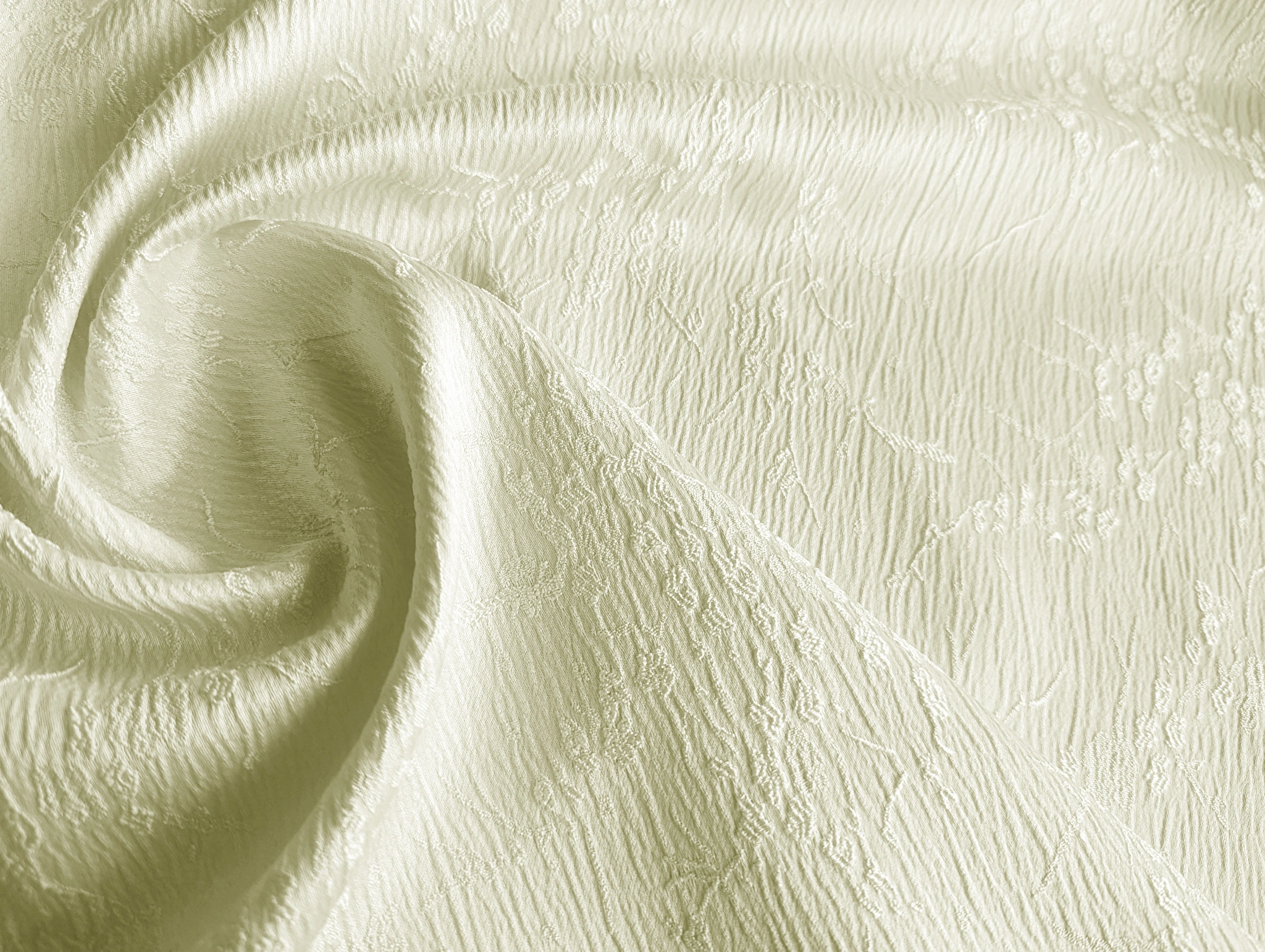 Код: ж27, 2410073, д7, к2Жаккард креш – это ткань с атласным блеском, слегка поджатой структурой и жаккардовым плетением нитей формирующими фактурный рисунок на лицевой стороне. Поджатая структура сформирована легкими заломами на лицевой стороне вдоль кромки, что нужно учесть при раскрое изделия и стачивании деталей.