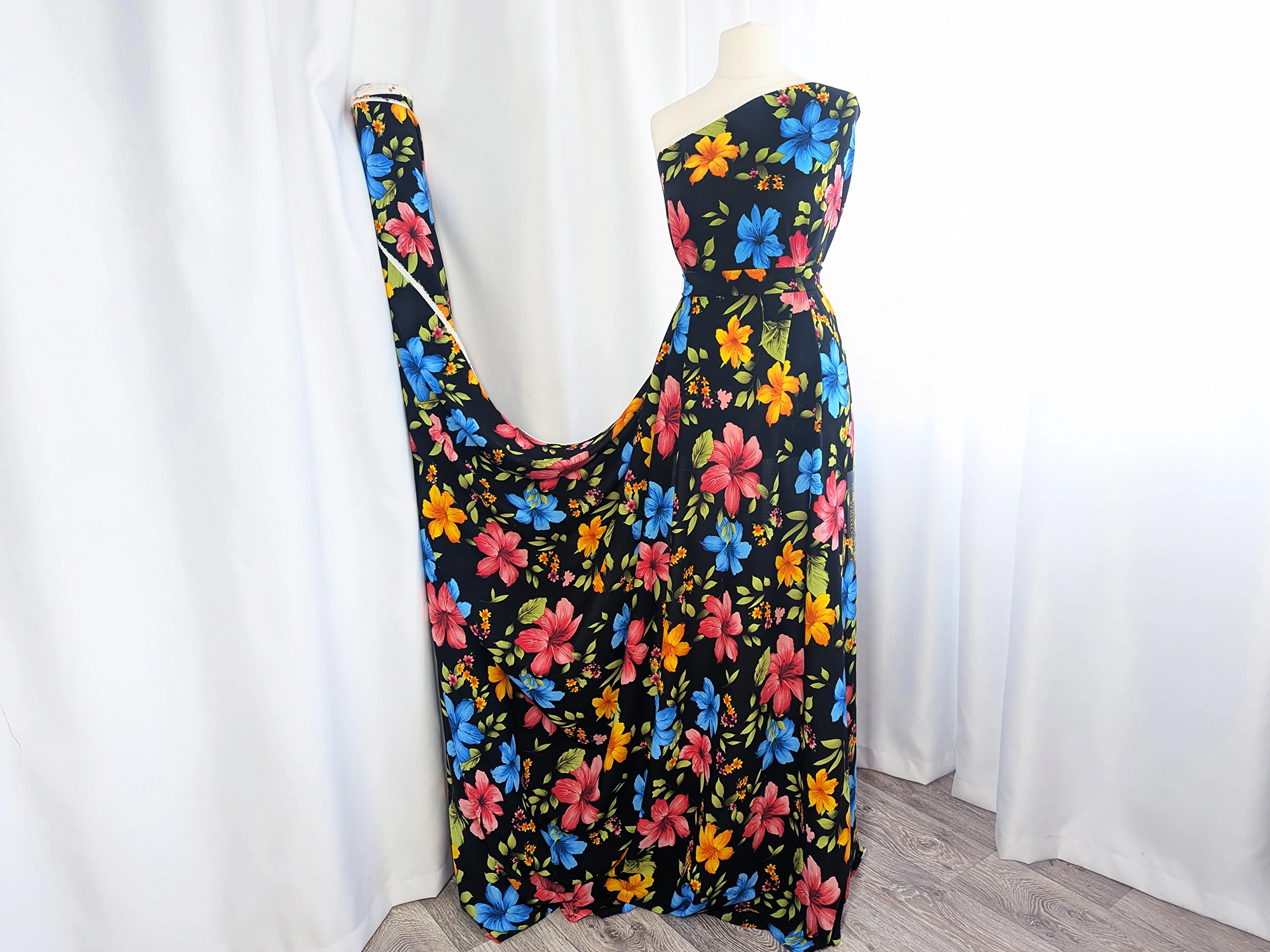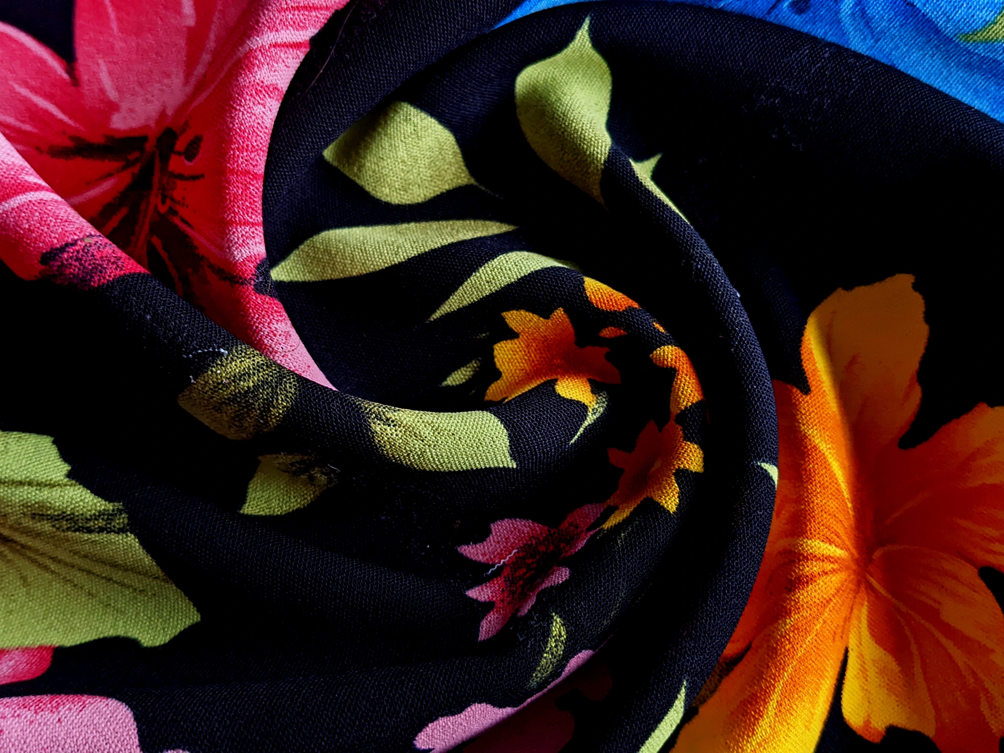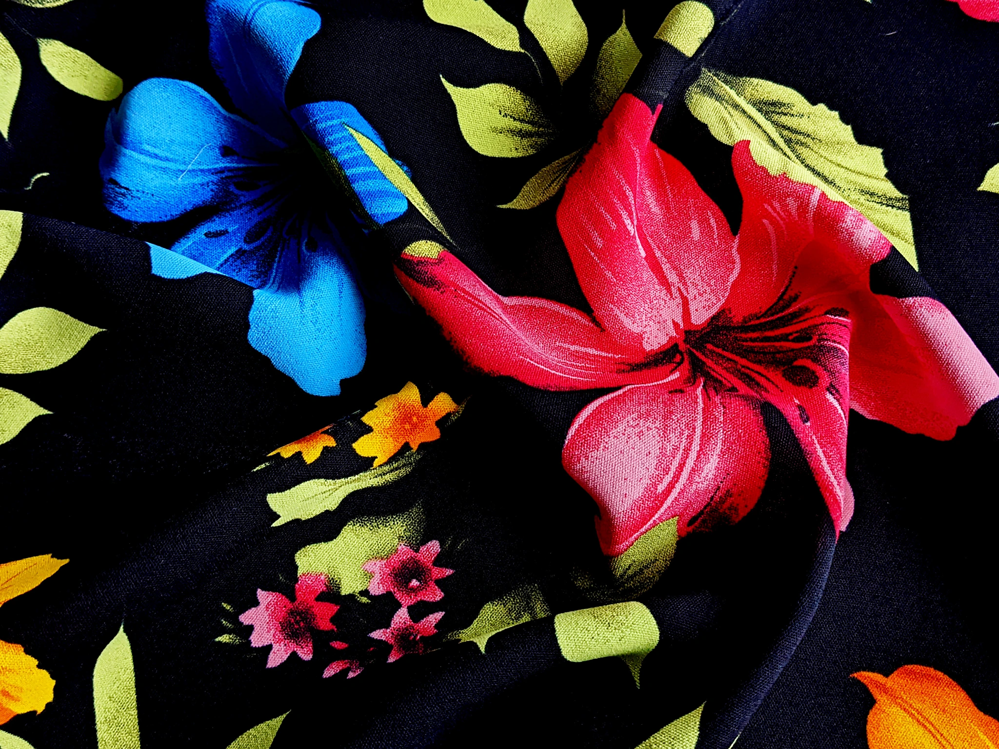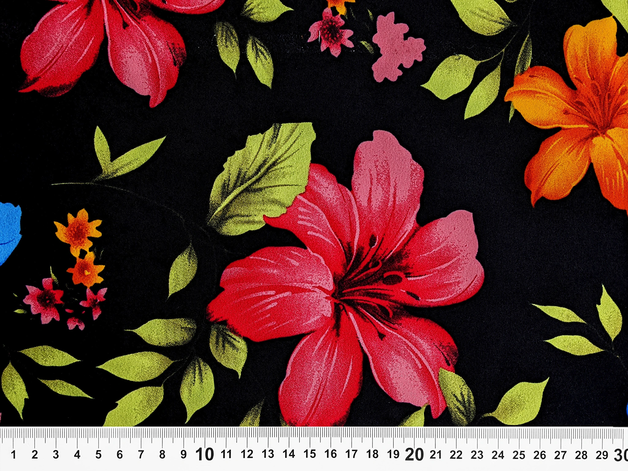 Американський креп малюнок лілії, багатокольоровий на чорному