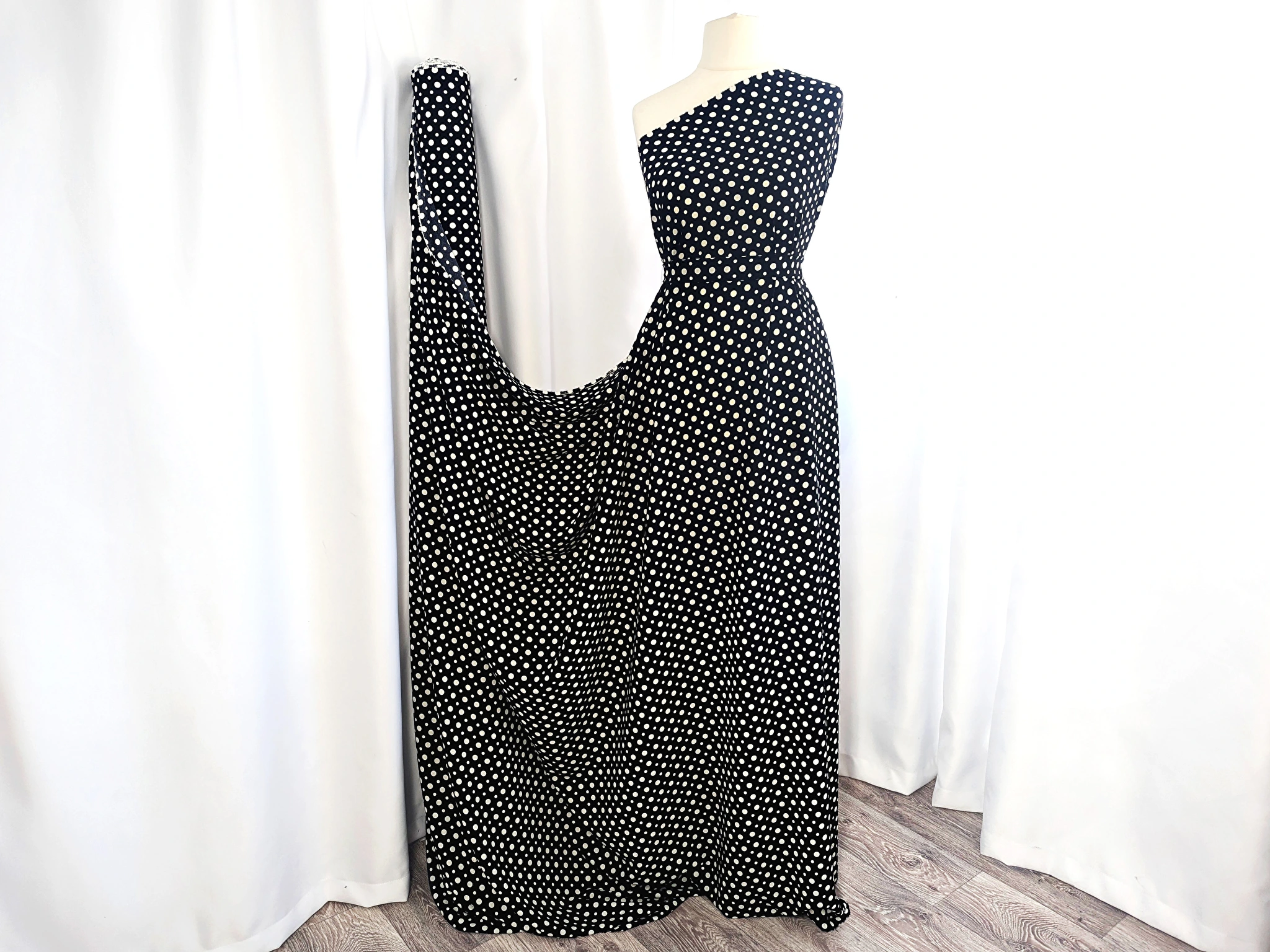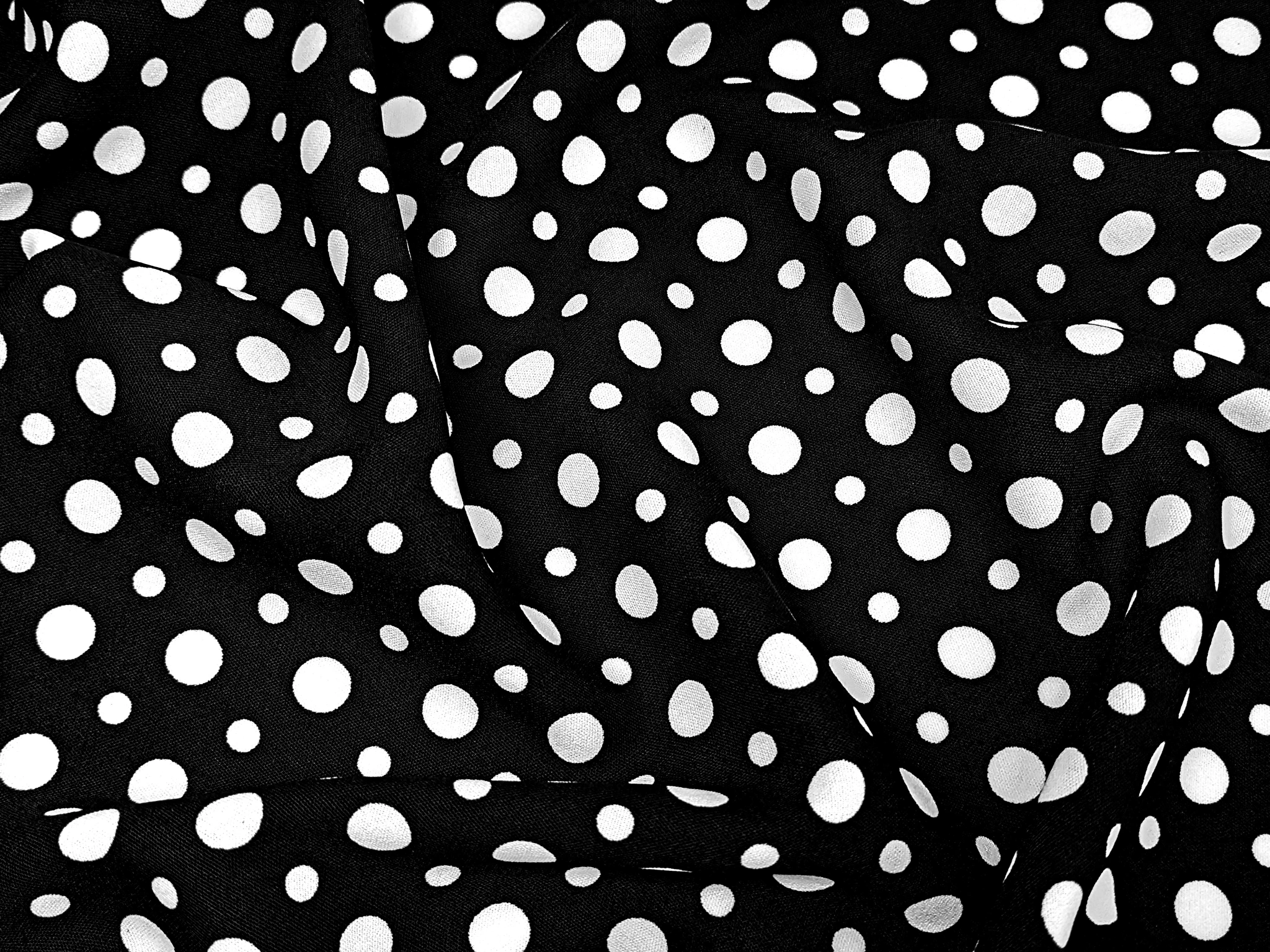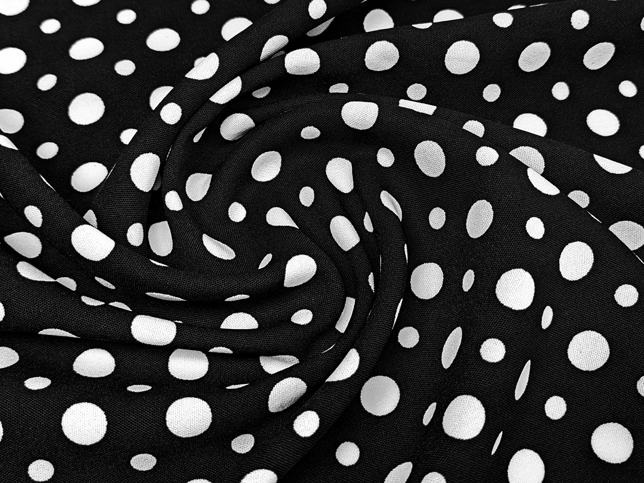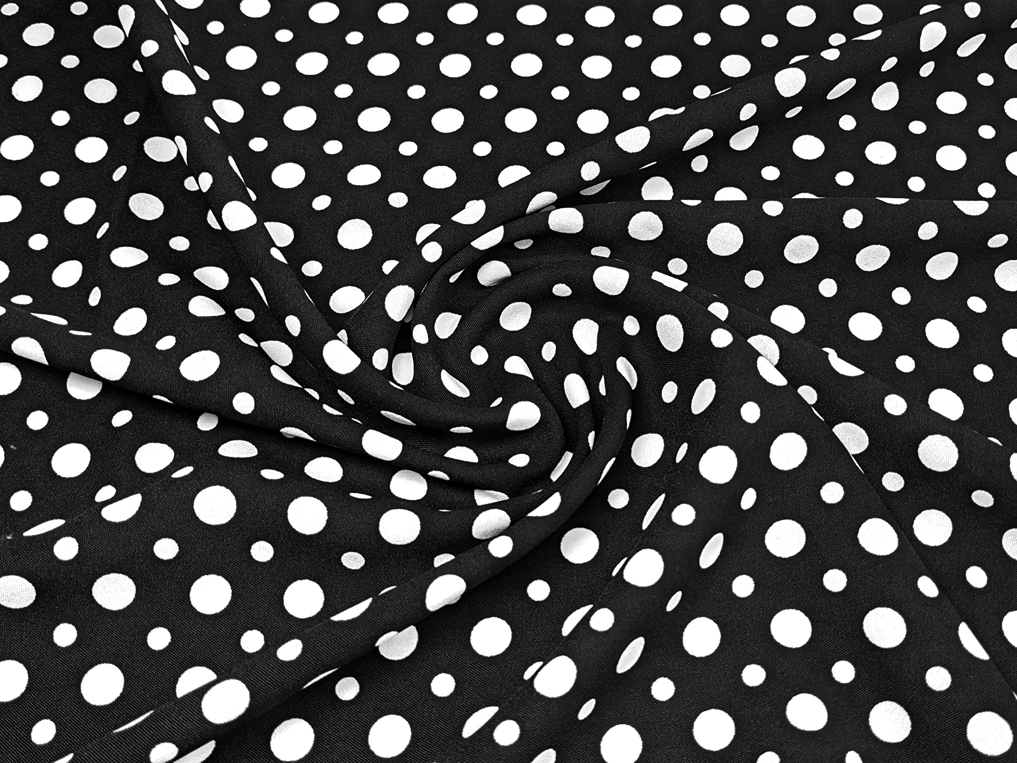 Американський креп малюнок мікс горошків, молочний на чорному