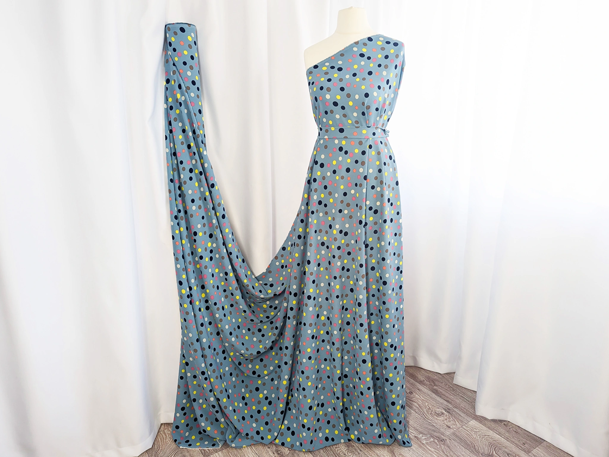 Американський креп малюнок різнокольорові горошки, полин
