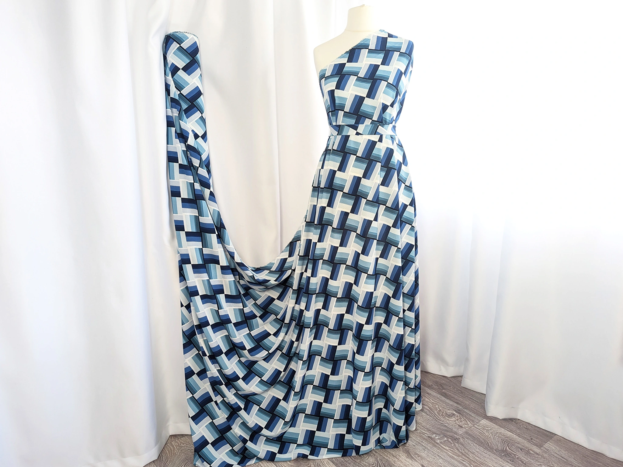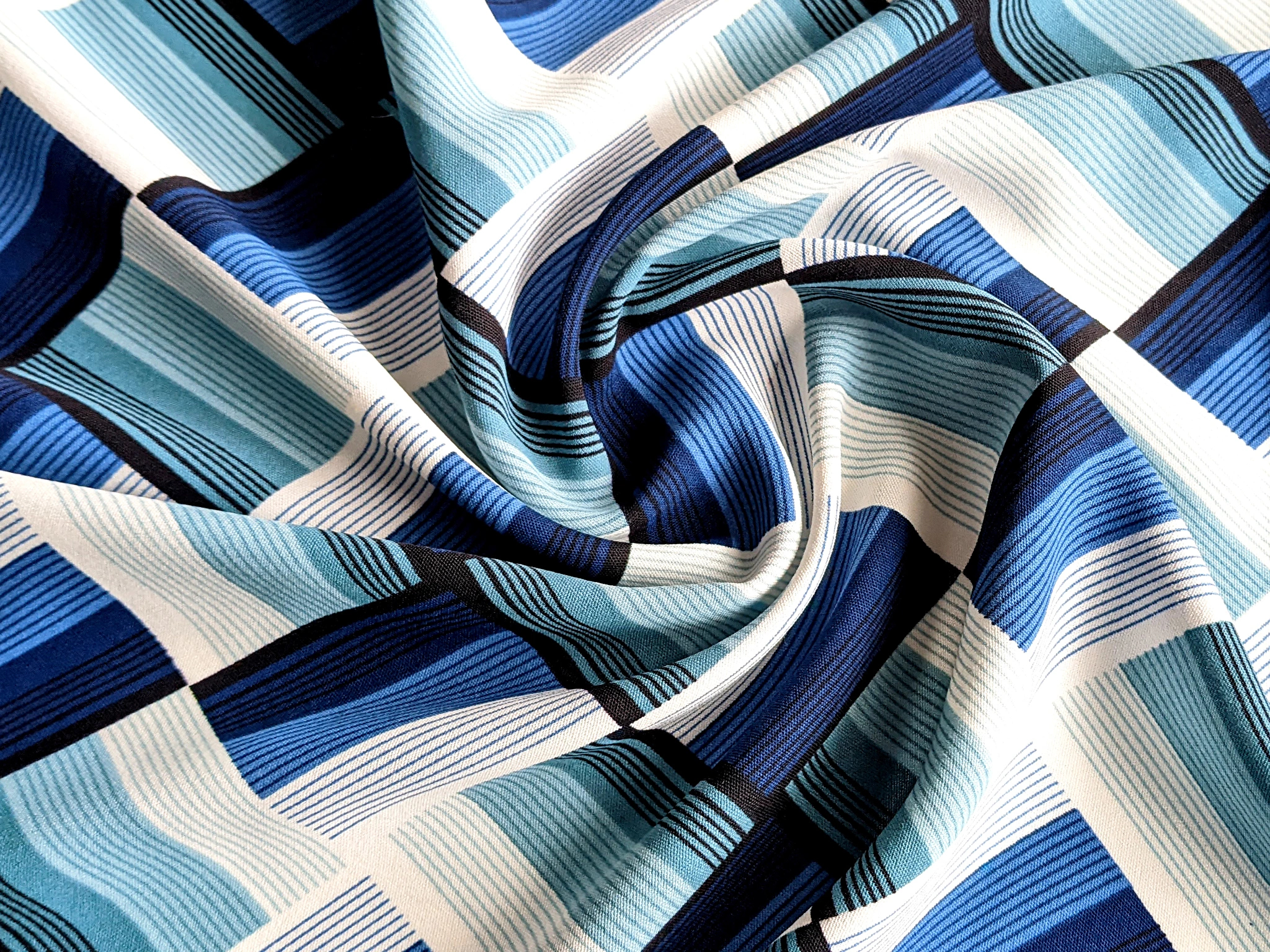 Американський креп малюнок ромби, синій на білому