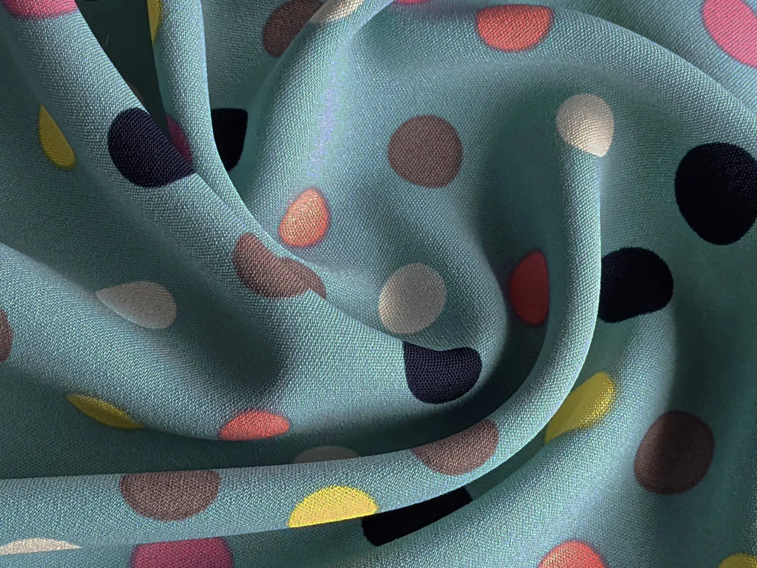 Американський креп малюнок різнокольорові горошки, полин (відріз 0,5 м)