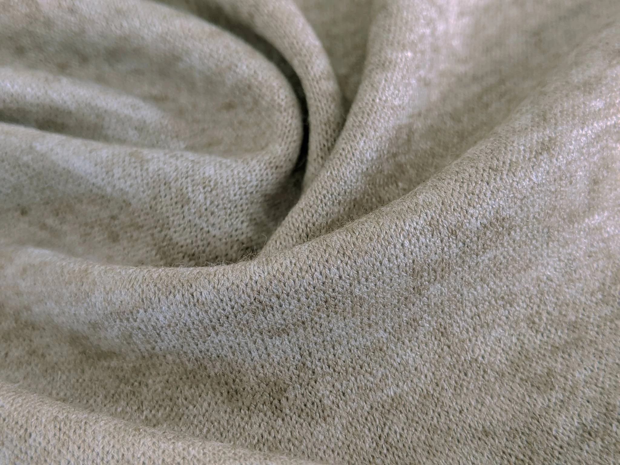 На відміну від ангори Арктики, трикотаж ангора Королівська має більш щільну структуру та дрібнішу в’язку. На дотик полотно дуже гладке, з ніжним коротеньким ворсом.
