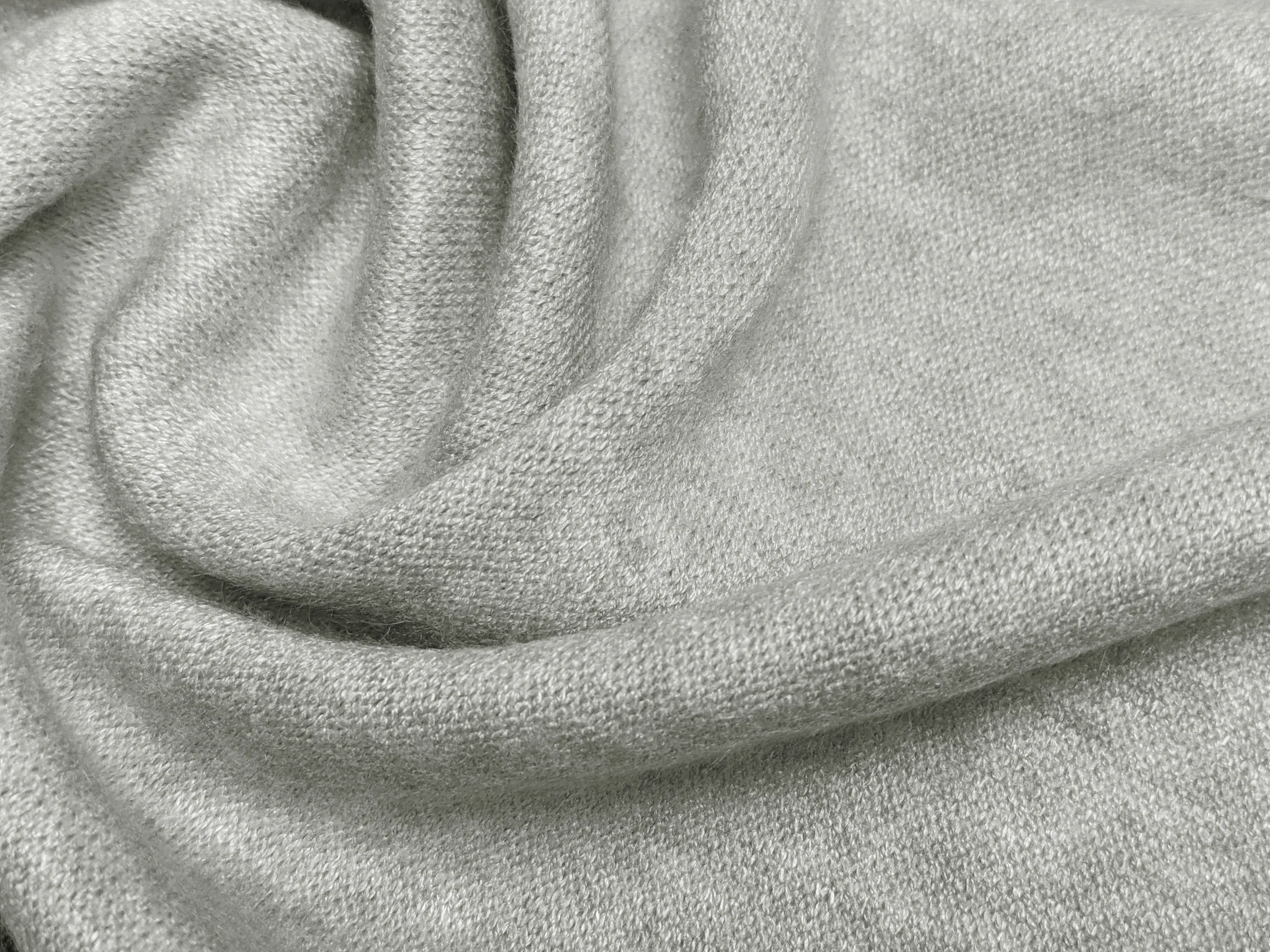 На відміну від ангори Арктики, трикотаж ангора Королівська має більш щільну структуру та дрібнішу в’язку. На дотик полотно дуже гладке, з ніжним коротеньким ворсом.