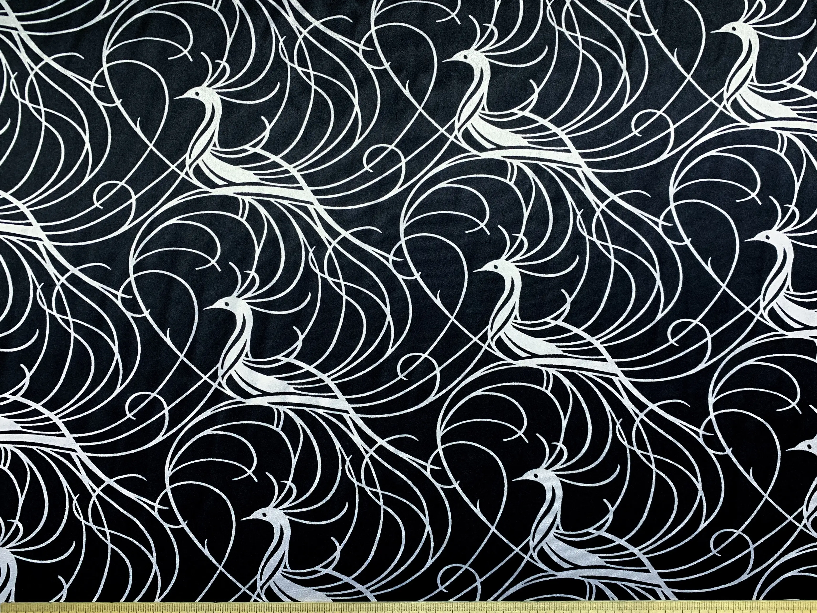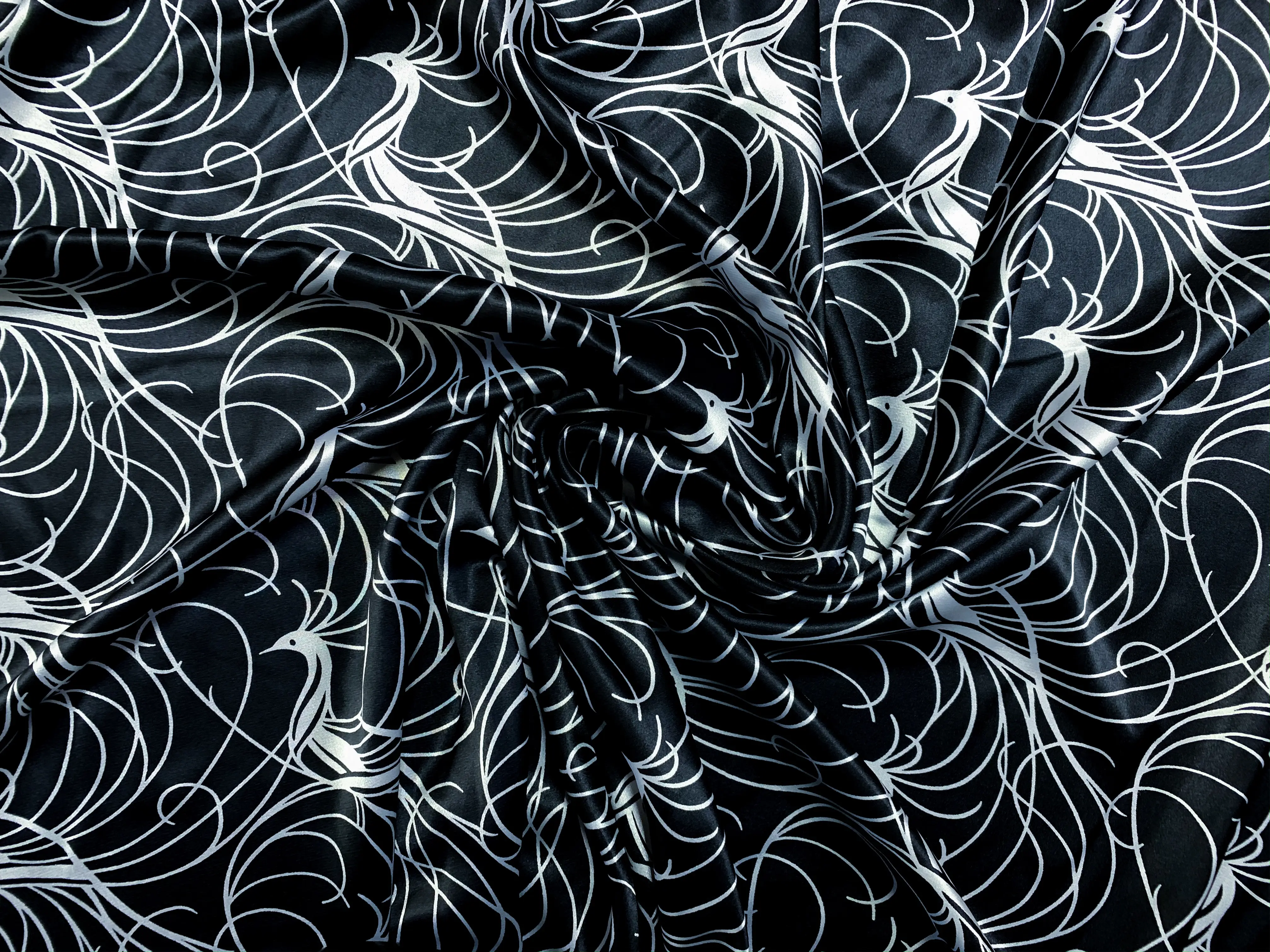 Атлас сатин жар-птиця, чорно-білий (відріз 2,5 м)