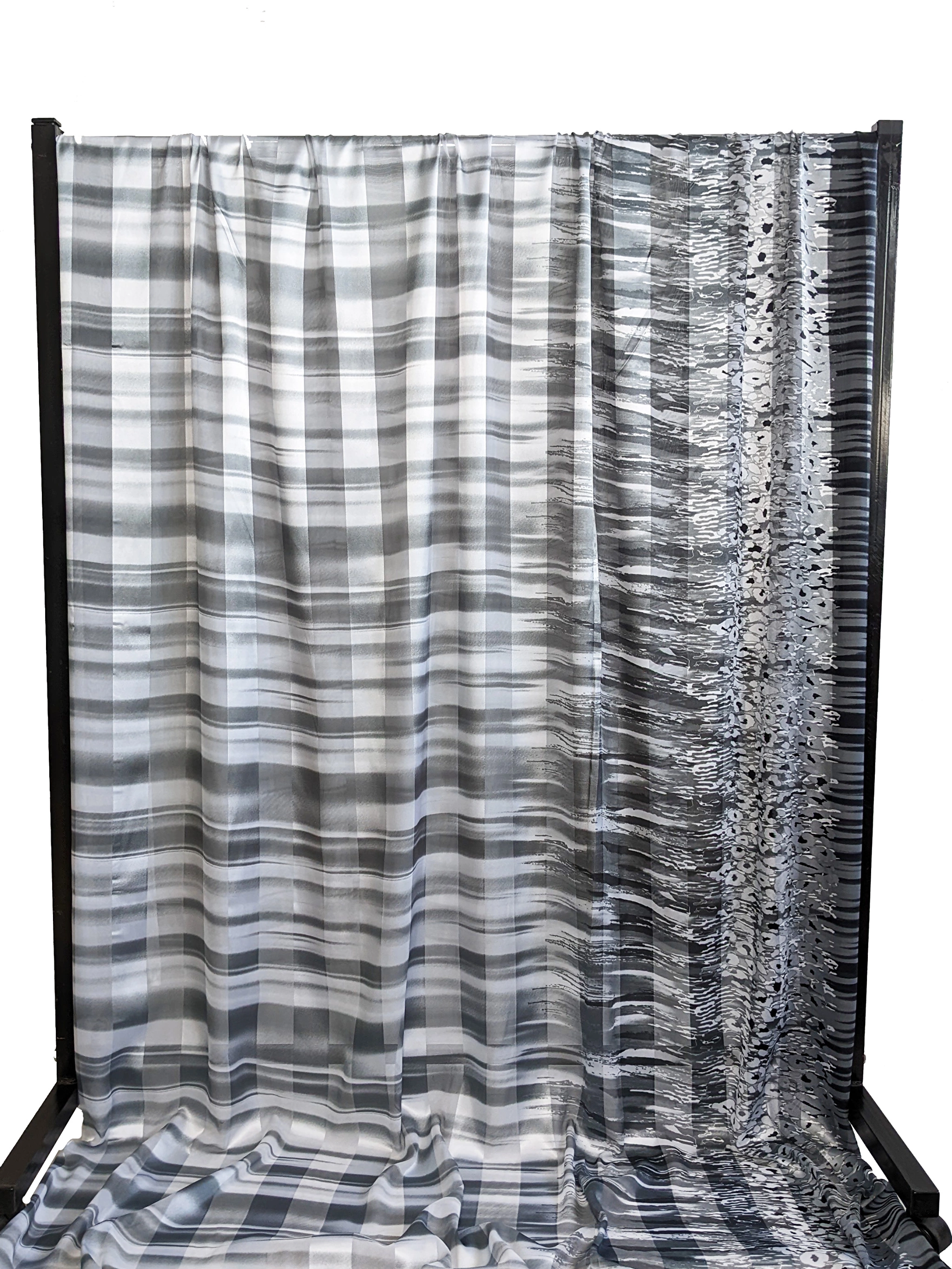 Атлас-шифон – це легка, повітряна, практично невагома тканина. На лицьовій стороні чергуються шифонова смуга з атласною. Тканина має гладку поверхню, не мнеться, не тягнеться, просвічує.
