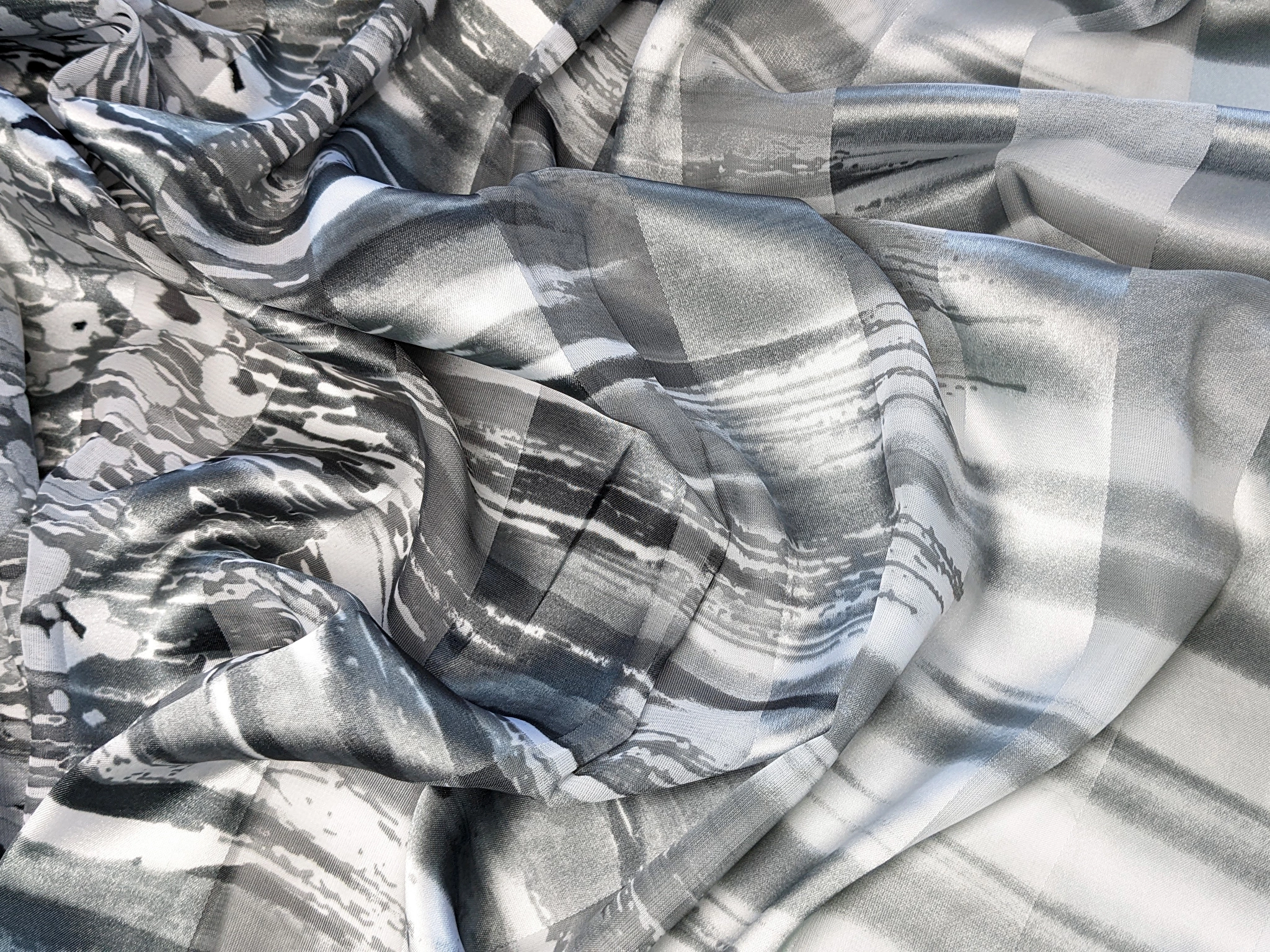 Атлас-шифон ідеально підходить для пошиття суконь, блуз, легких накидок та хусток.