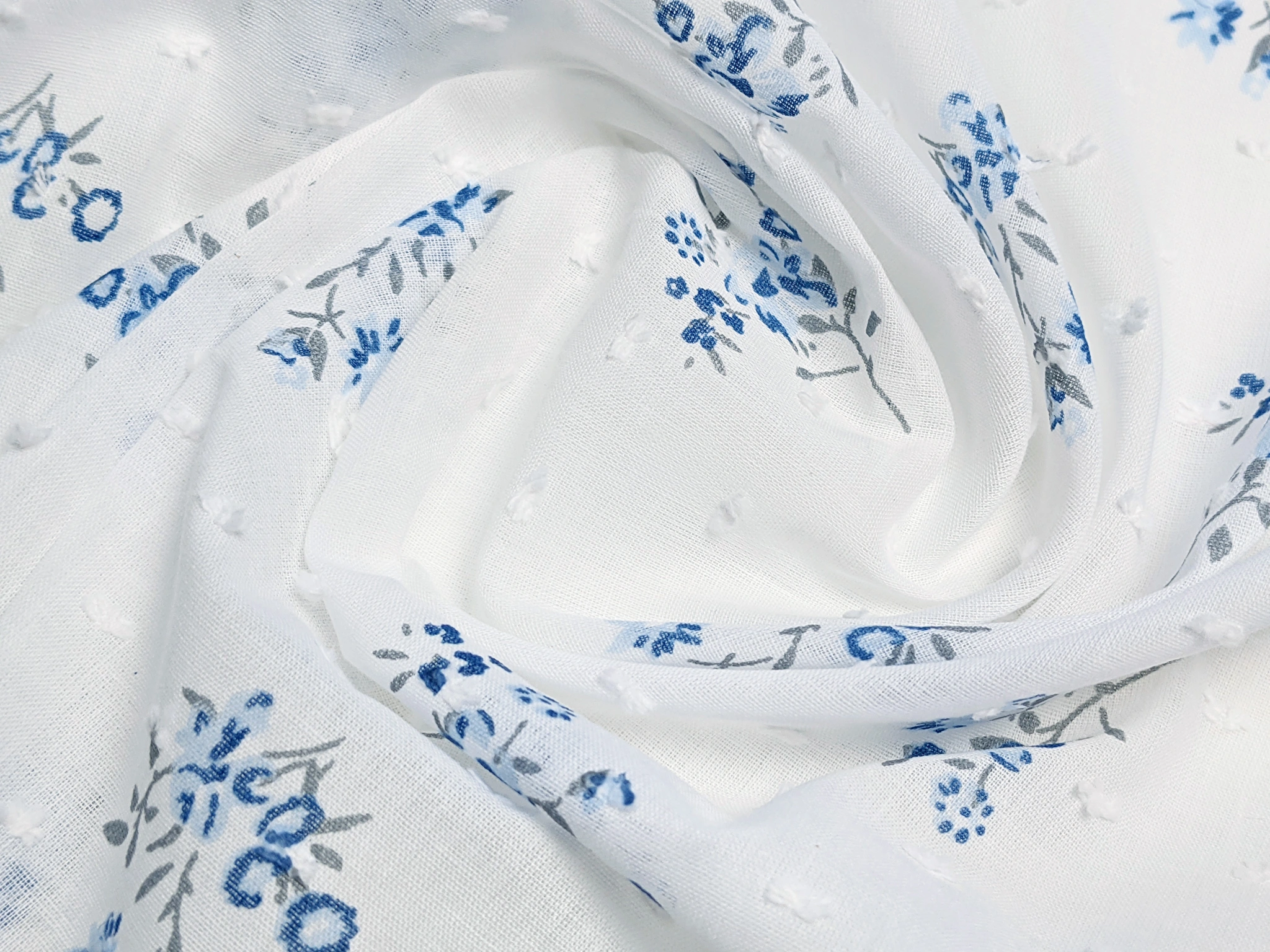 Батист крапка букет, сіра вода
